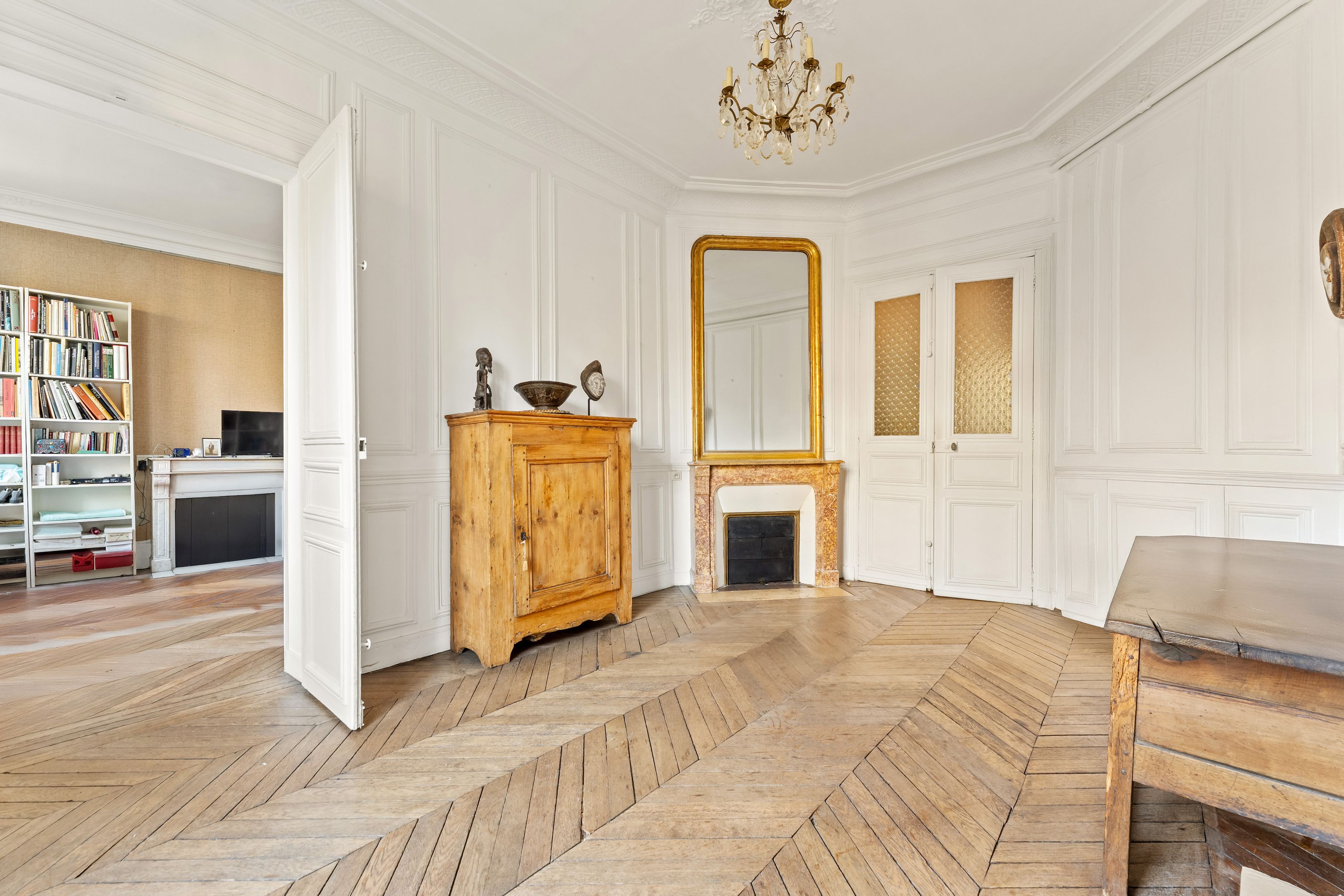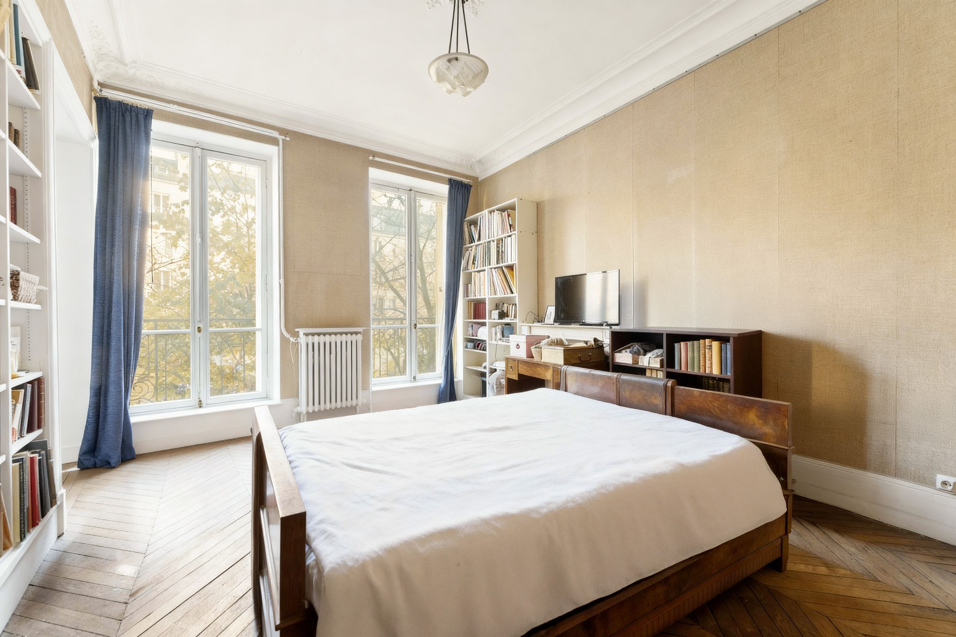 Place de la Sorbonne et à proximité immédiate du jardin du Luxembourg, immeuble haussmannien de bon standing sectorisé Henri IV. Au 2ème étage desservi par ascenseur, appartement de 104,55 m² entièrement à rénover, avec tout le charme de l'ancien (parquet, moulures, cheminées, 3,1 m HSP) et balcon filant. Entrée, vaste séjour, salle à manger, deux chambres (possibilité de troisième chambre), cuisine séparée, salle d'eau, dressing, toilettes séparées. Cave.