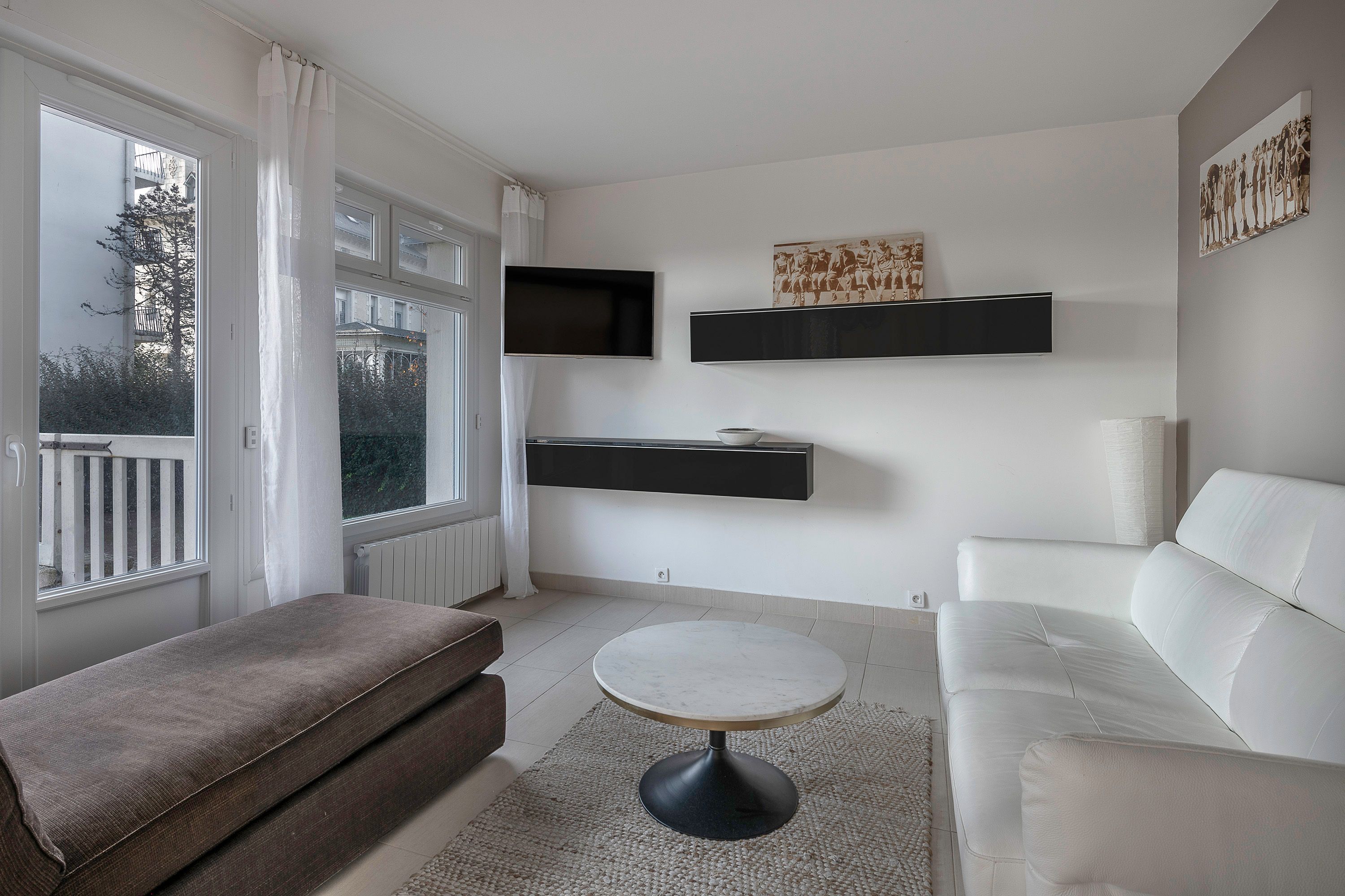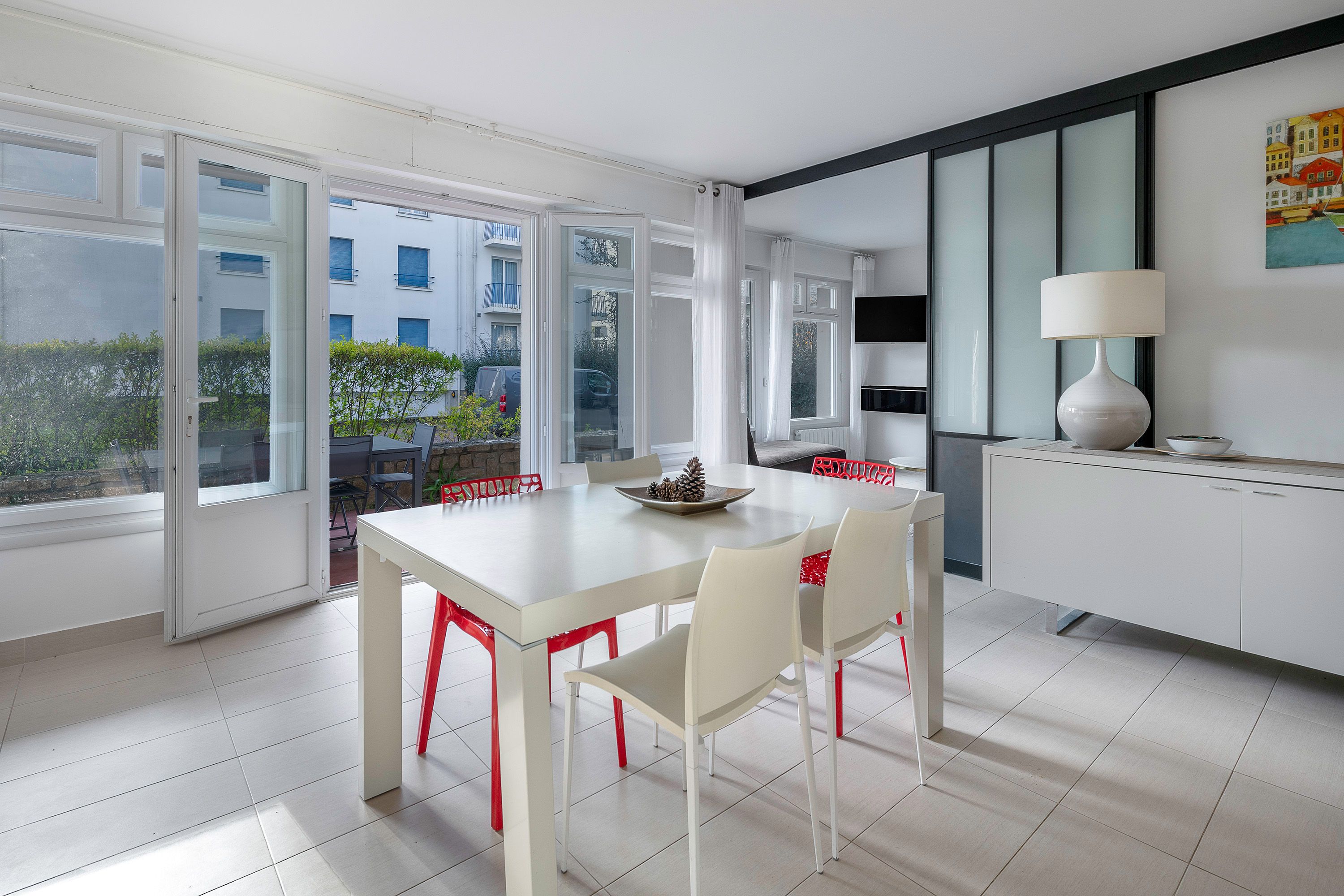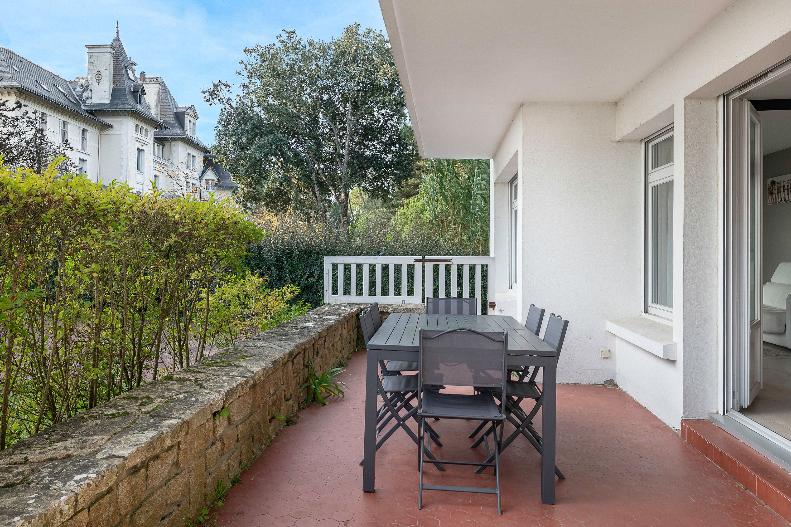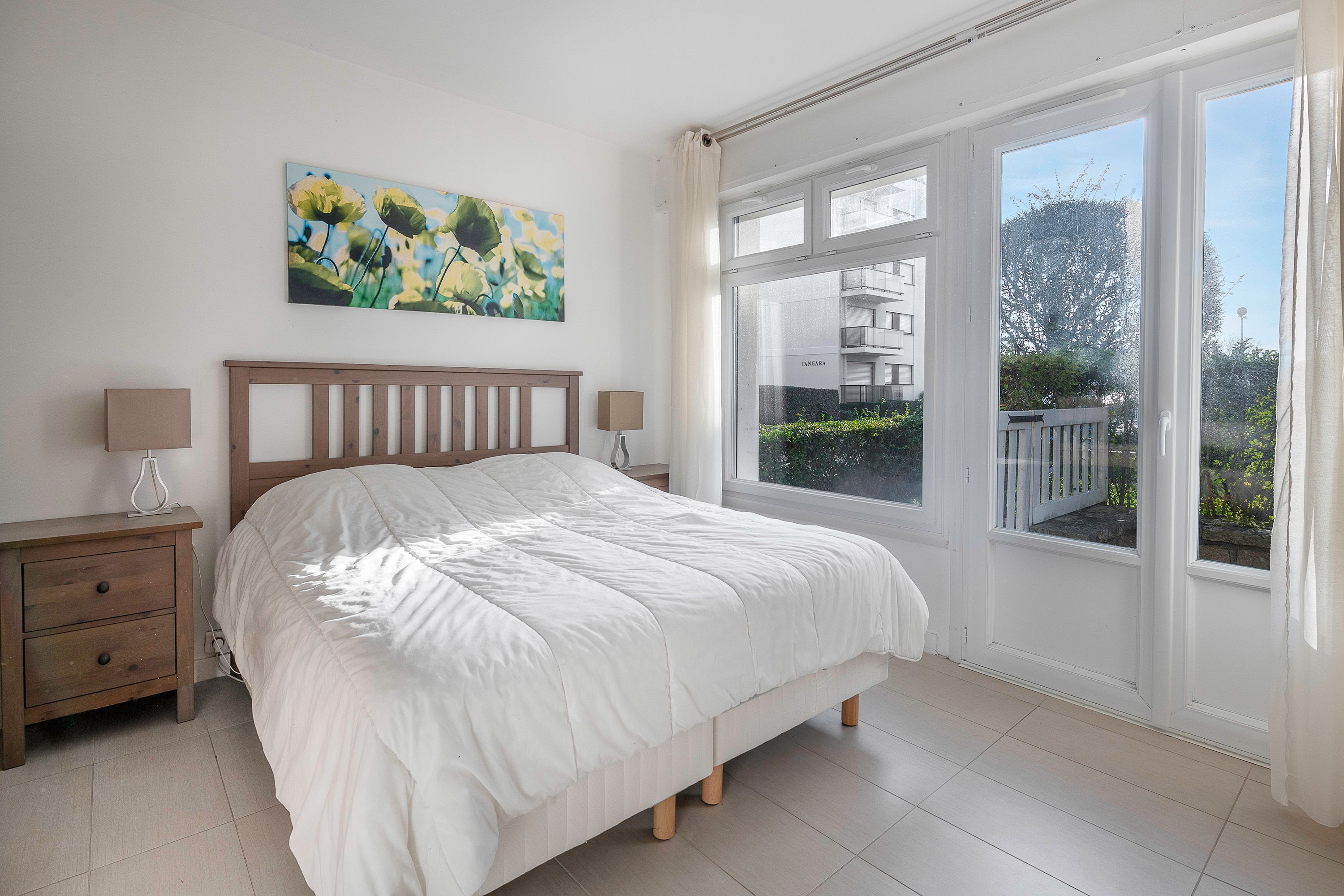 Au rez-de-chaussée d'une résidence sécurisée des années 60, appartement vue mer traversant de 81m². Entrée, vaste pièce de vie lumineuse ouverte sur une grande terrasse exposée sud-est, cuisine séparée, 2 chambres (possibilité d'en créer une troisième), salle d'eau, toilettes indépendantes. Place de parking extérieure, cave.