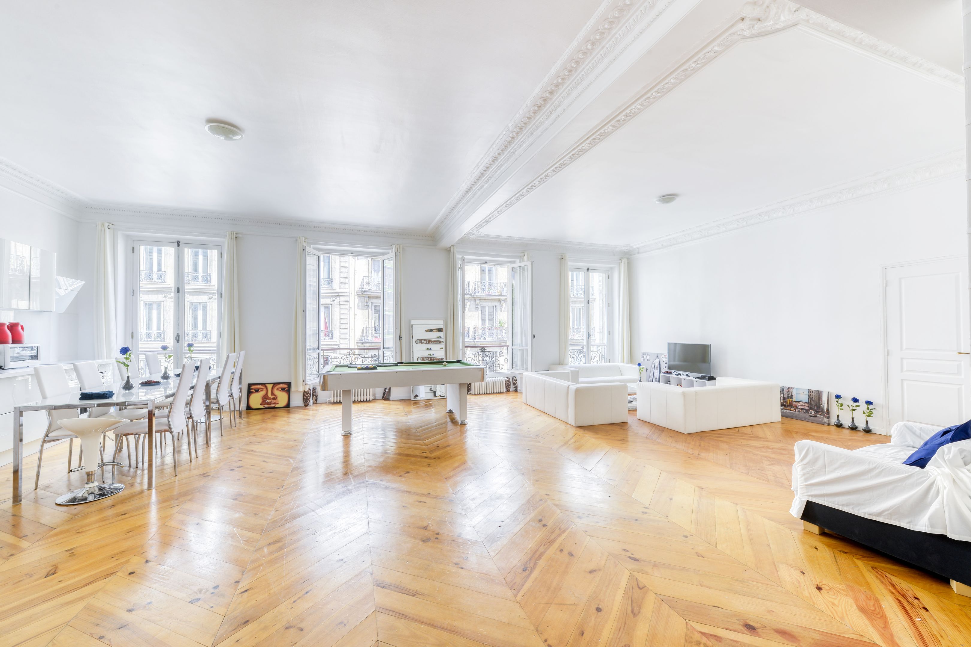 Au cœur du quartier Trévise, appartement de 125 m² situé au 3ème étage d'un immeuble haussmannien desservi par ascenseur. Il dispose d'une vaste pièce de réception dotée de 4 fenêtres avec une cuisine ouverte, de trois chambres, d'une salle de bains et d'une salle d'eau. Cave.