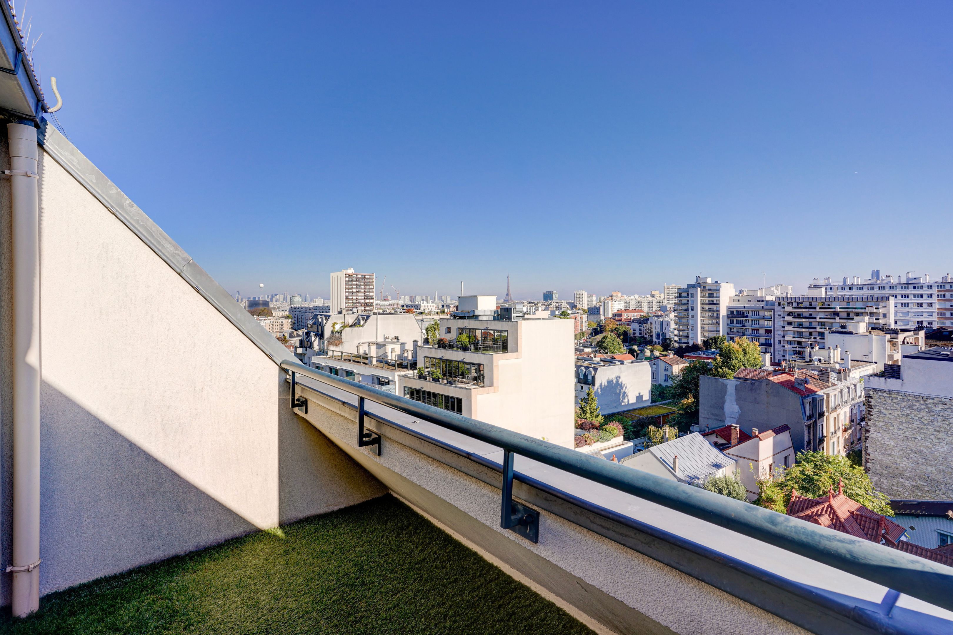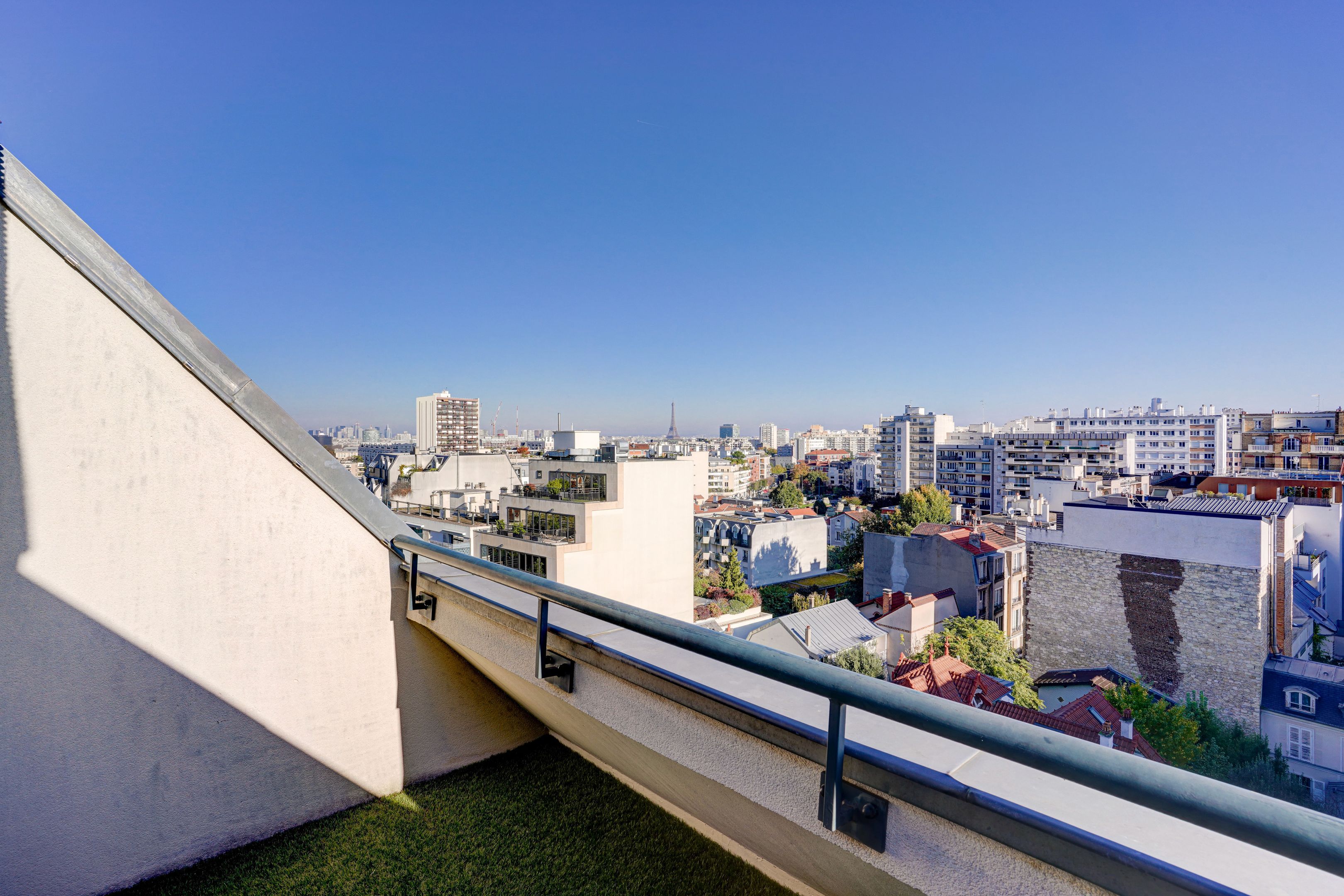 A proximité des transports et des commerces au sein d'une petite résidence de standing profitant d'une vue dégagée sur LA TOUR EIFFEL et La Défense, AU DERNIER ETAGE bel appartement familial lumineux et traversant de 84 m² loi Carrez plus 37 m² de terrasse et balcon, au 8ème étage avec ascenseur, occupant unique de l'étage.