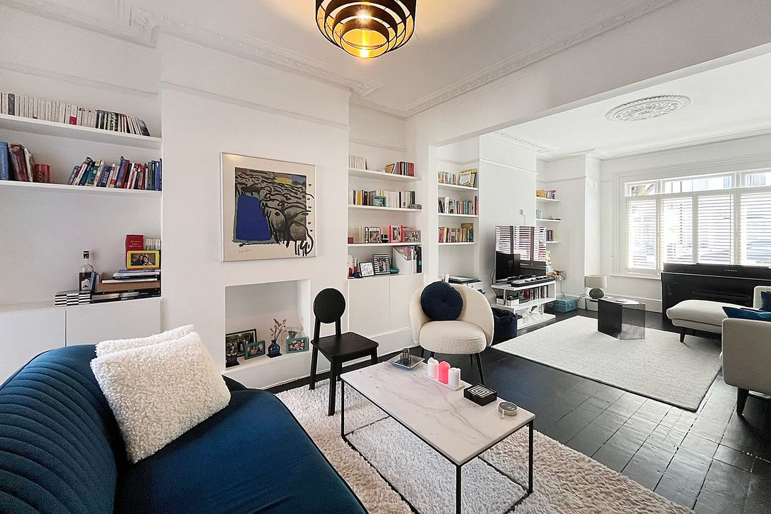 This property, located at the end of Narborough Street next to Settrington Road, enjoys a prime position. As an end-of-terrace house, it features bright rooms throughout. The ground floor offers a spacious front reception room with a large bay window, a ceiling rose, and wood flooring. This leads to a versatile room with ample storage, suitable as a second reception room or dining area. The rear hosts a modern kitchen with integrated Miele and Smeg appliances and dining space, along with a separate utility room. Bi-fold doors open to a south-facing garden with artificial grass, perfect for al fresco dining, with street access for bikes and scooters. The first floor has three double bedrooms, one en suite, all with fitted wardrobes, a family bathroom, and a study. The second floor comprises two more double bedrooms and another bathroom.