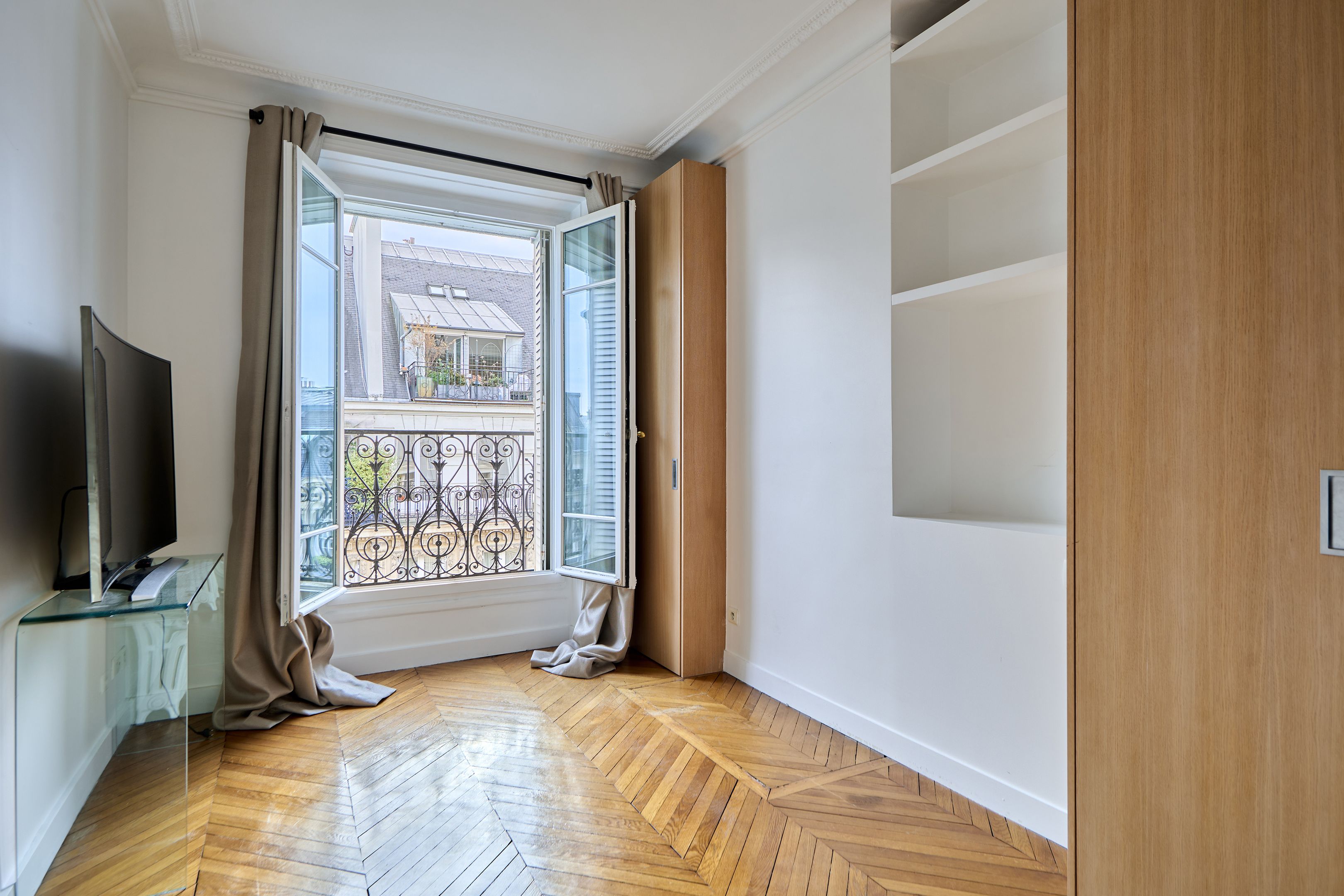 Immeuble ancien en pierre de taille, sécurisé (digicode et gardien), appartement meublé de 120 m², au 6ème étage desservi par ascenseur. Entrée, salon et salle à manger lumineux, cuisine séparée aménagée et équipée, trois chambres, deux salles d'eau, toilettes séparées.