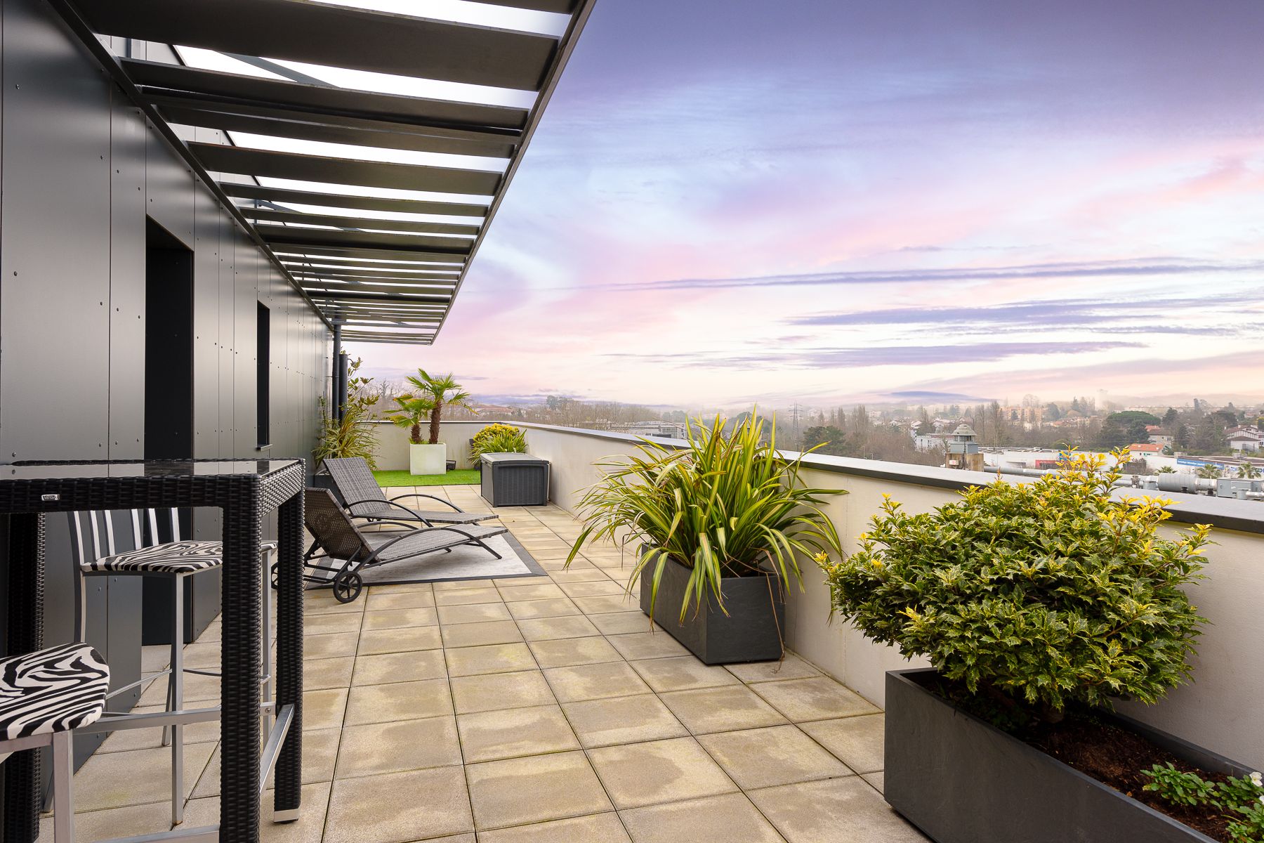 Quartier recherché des Arènes de Bayonne, dans une résidence récente de standing, superbe appartement en dernier étage de 132 m2, desservi par un ascenseur, et plus de 170m² de terrasses, dont une équipée d'une pergola bio climatique et offrant une jolie vue dégagée sur les Pyrénées.