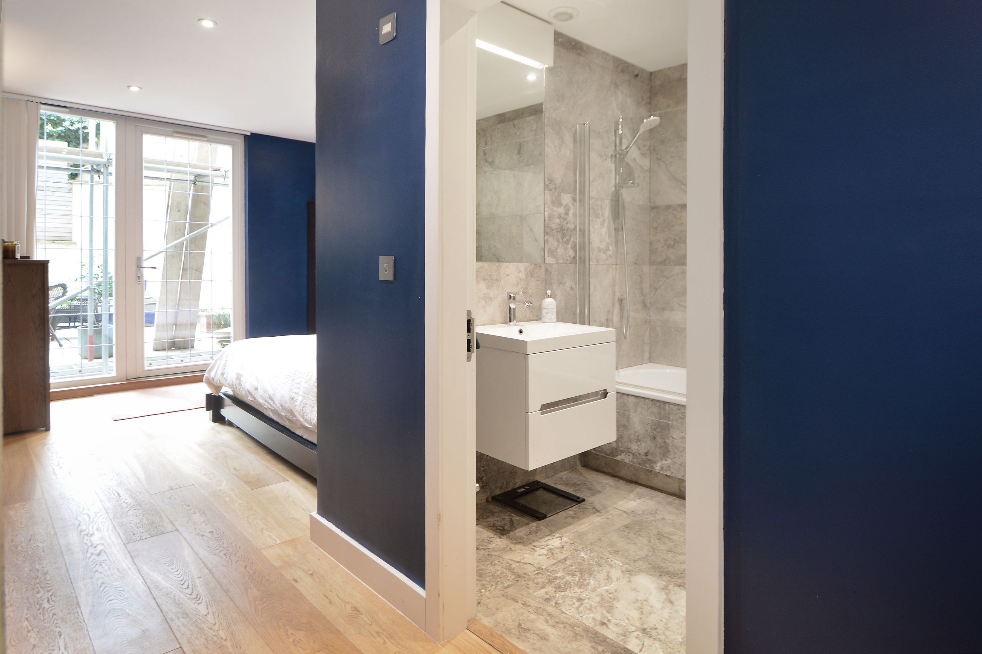 La chambre principale comprend une salle de bains attenante pour plus de confort et de luxe.