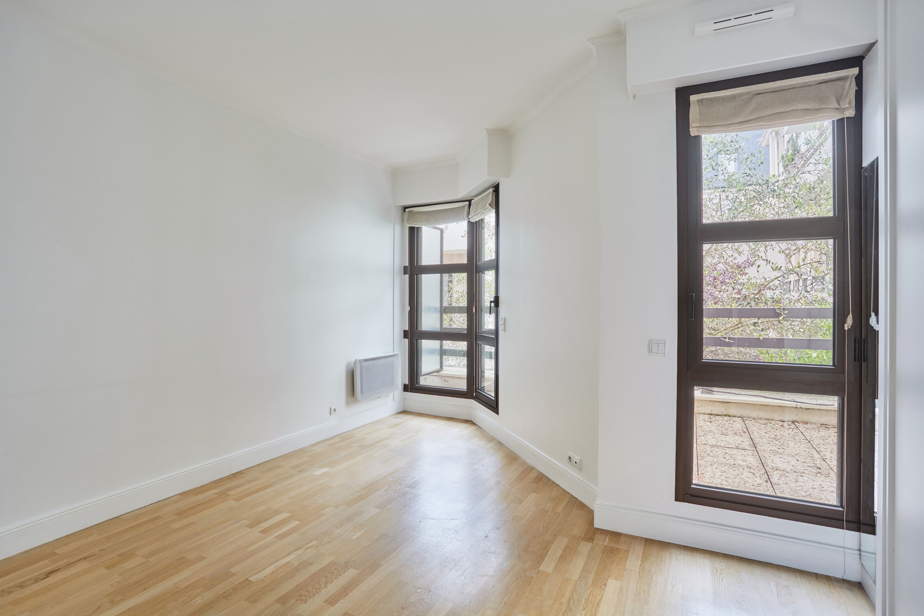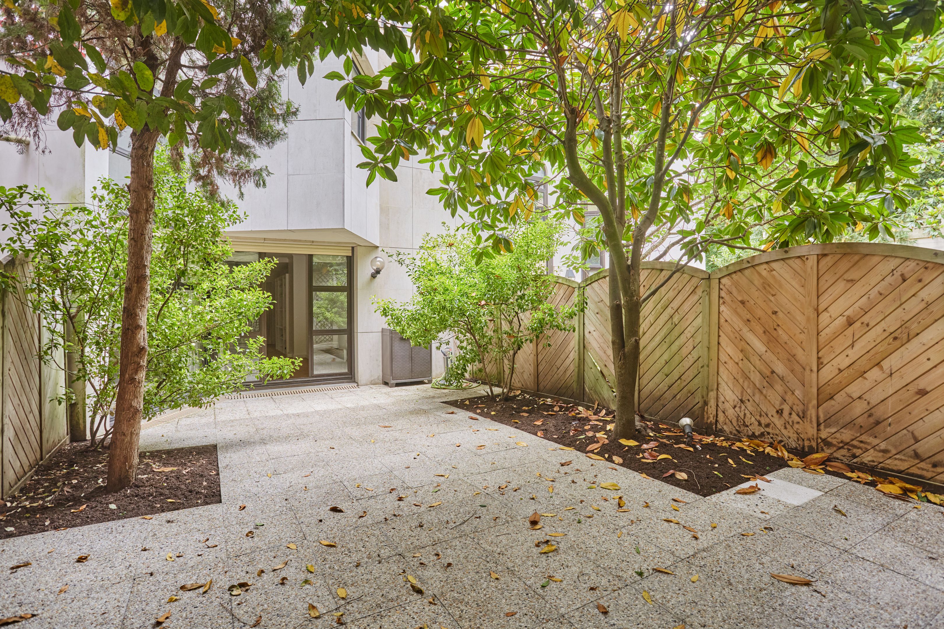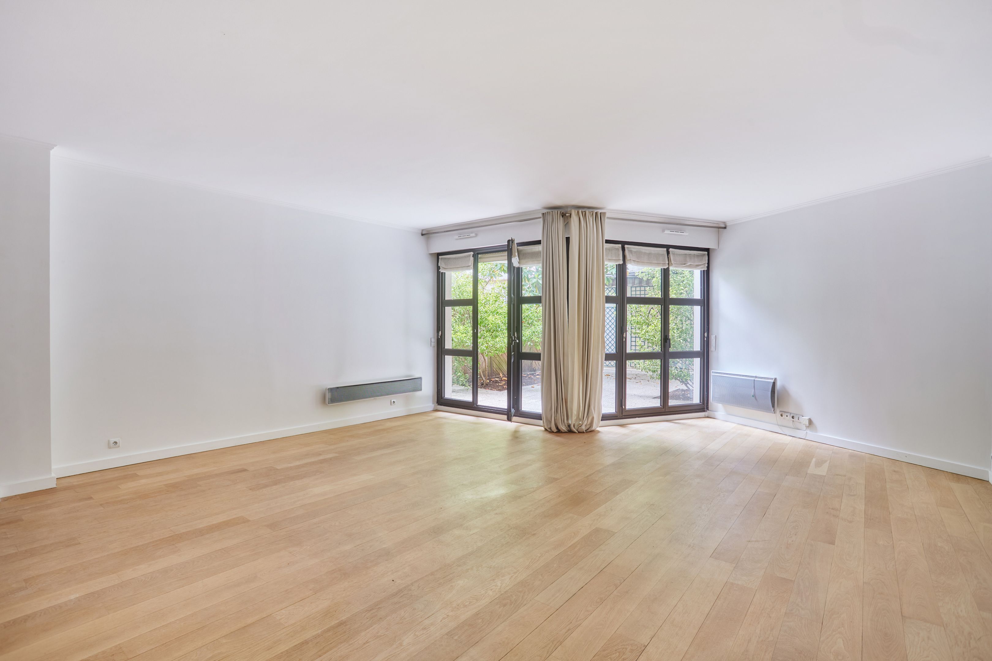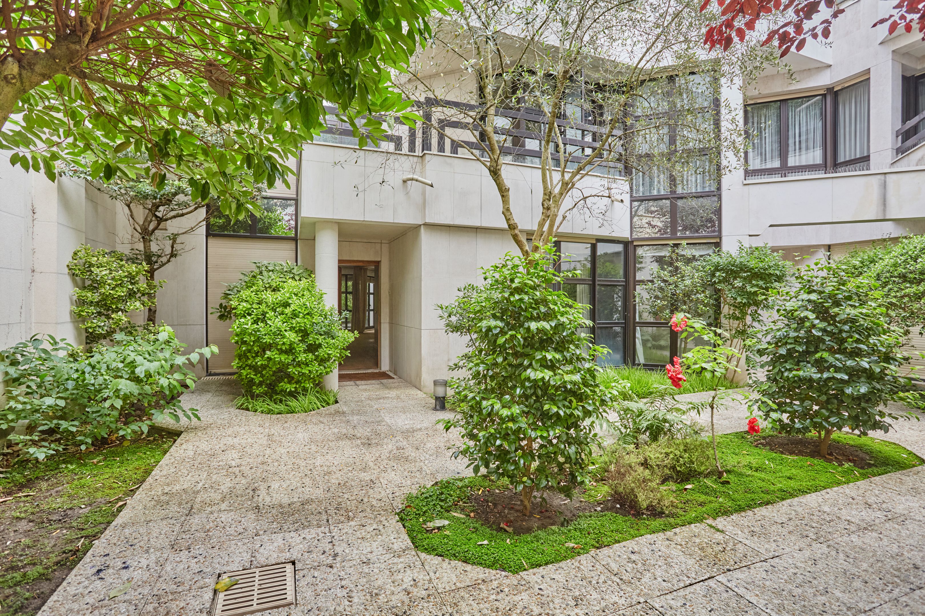 Immeuble sécurisé (digicodes, concierge, vidéosurveillance), à proximité immédiate du Bois de Boulogne, appartement non-meublé de 137,63 m² en rez-de-chaussée avec jardin privatif. Entrée, salon avec accès jardin privatif, salle à manger avec cuisine ouverte, aménagée au premier niveau. Toilettes séparées. À l'étage : trois chambres avec placards, salle de bains avec toilettes, salle de douche avec toilettes.