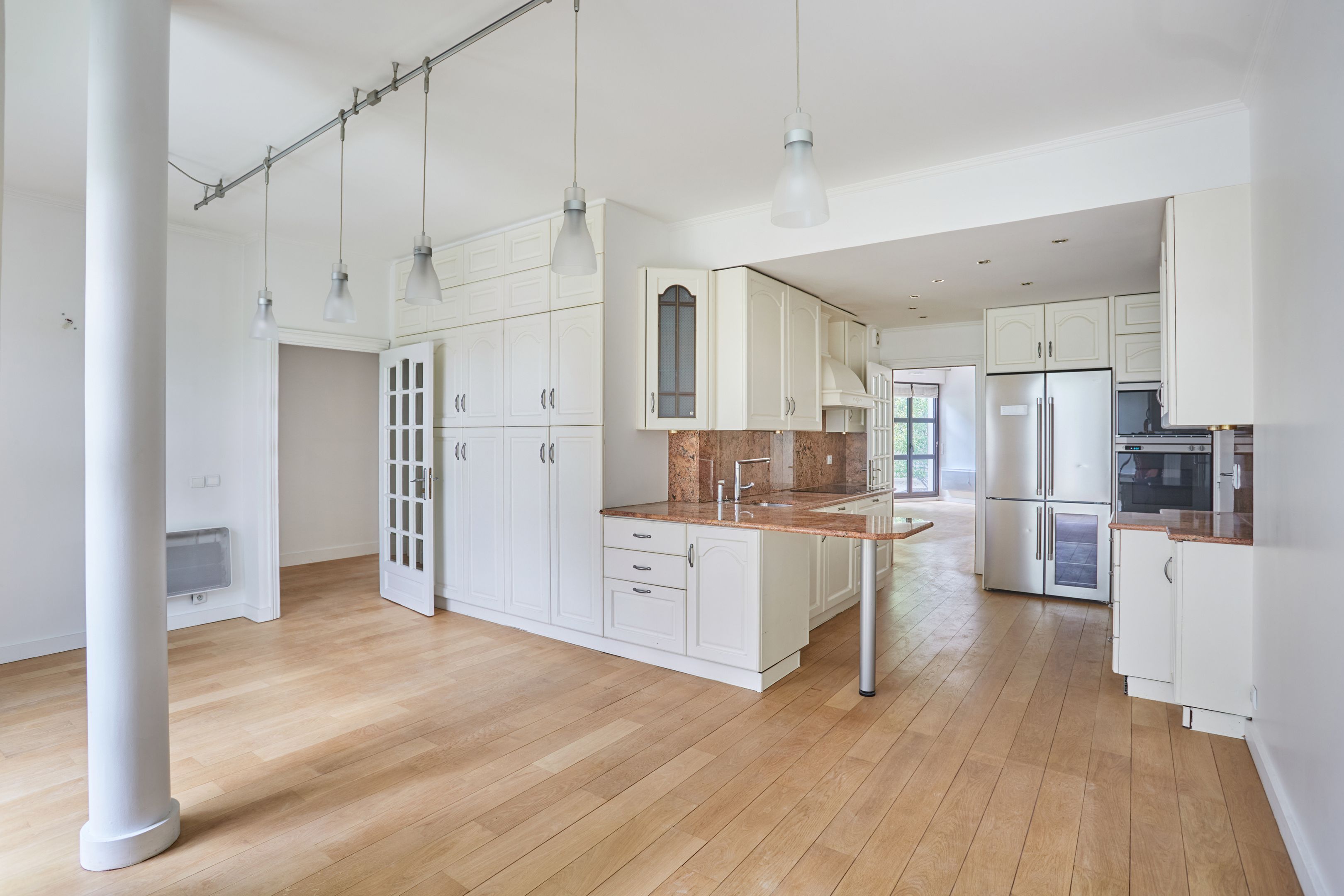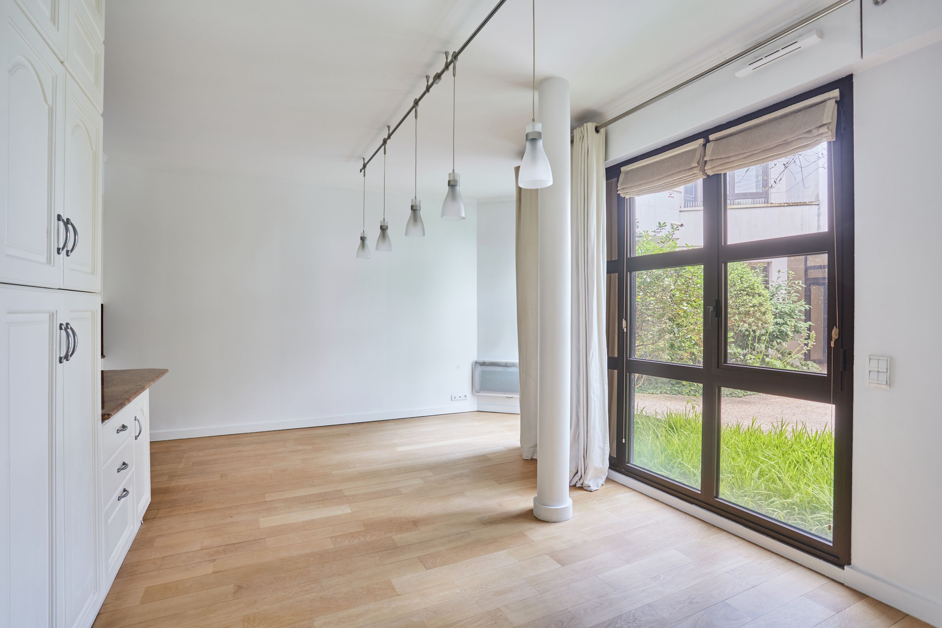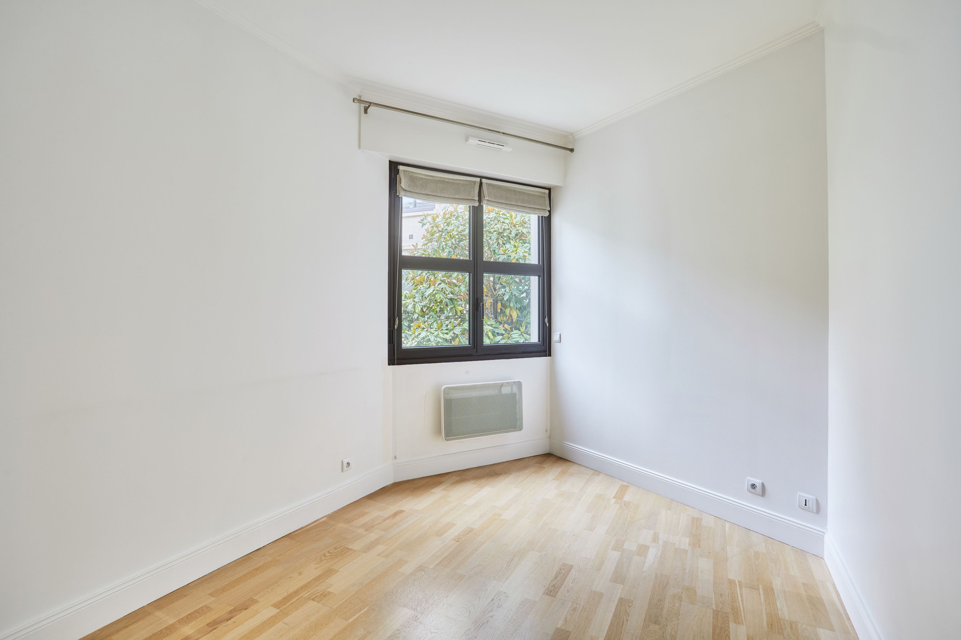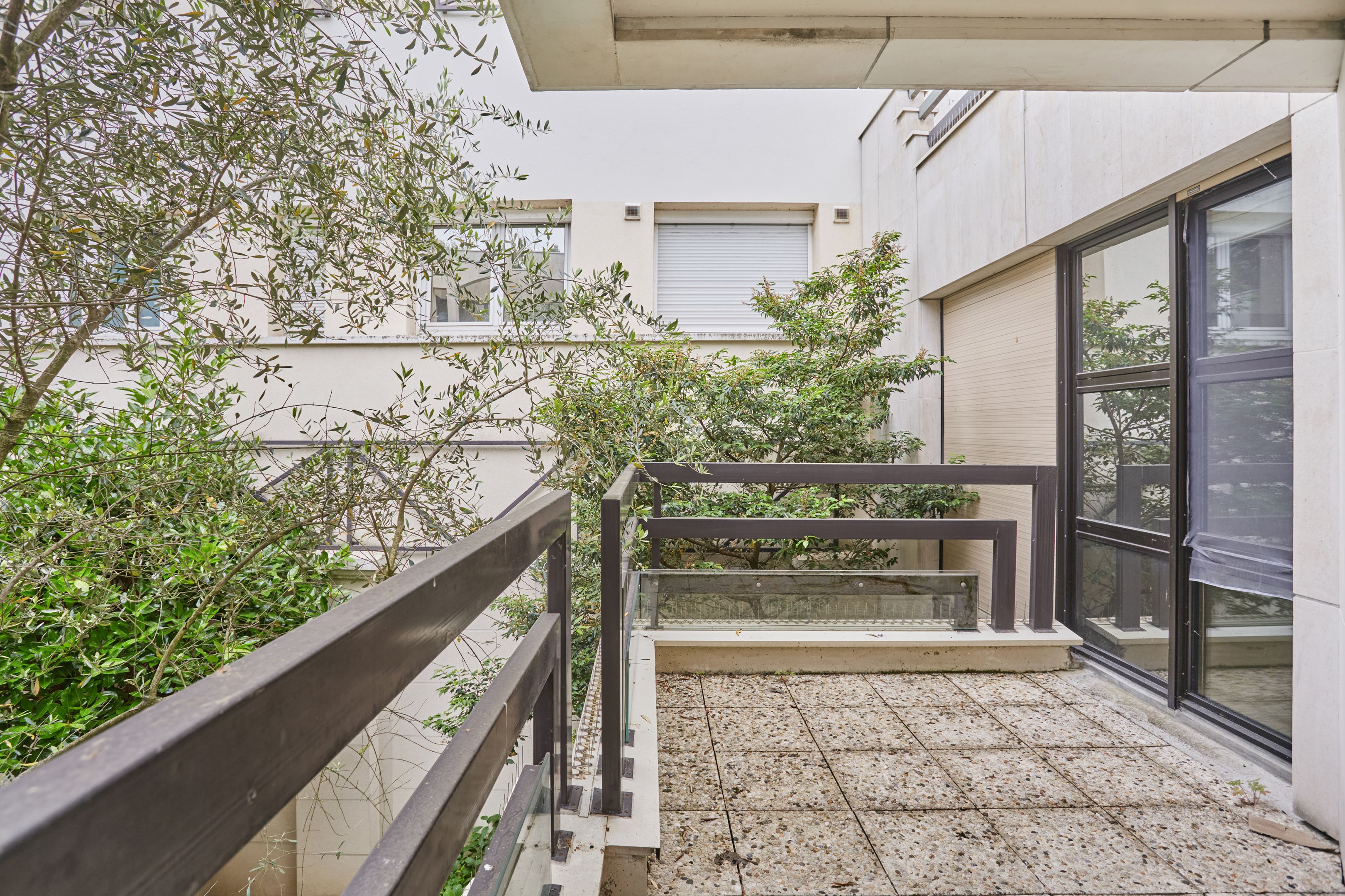 Immeuble sécurisé (digicodes, concierge, vidéosurveillance), à proximité immédiate du Bois de Boulogne, appartement non-meublé de 137,63 m² en rez-de-chaussée avec jardin privatif. Entrée, salon avec accès jardin privatif, salle à manger avec cuisine ouverte, aménagée au premier niveau. Toilettes séparées. À l'étage : trois chambres avec placards, salle de bains avec toilettes, salle de douche avec toilettes.
