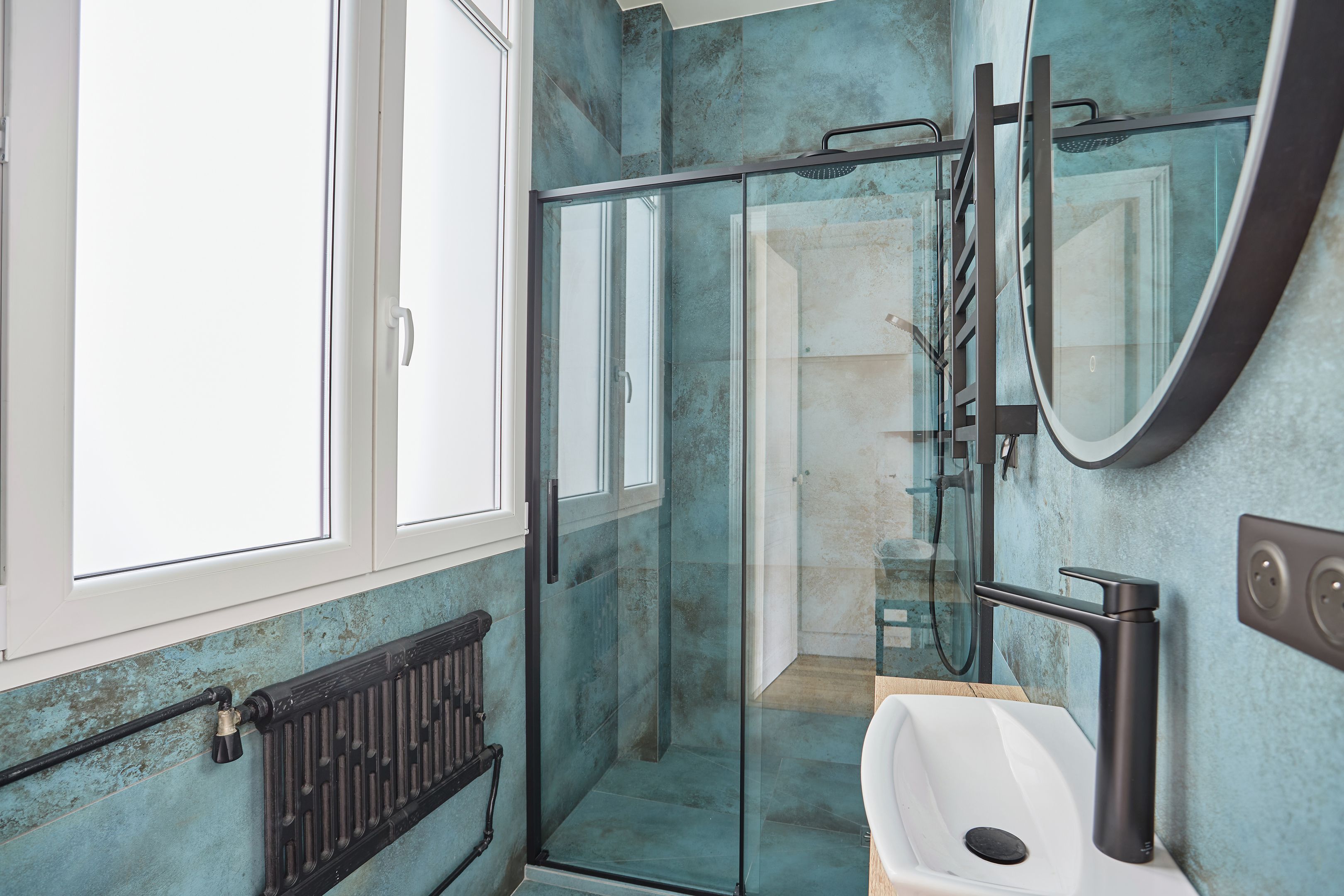 Il comprend : une grande entrée, un salon connecté avec la salle à manger donnant sur un jardin intérieur, une cuisine équipée, deux chambres, un bureau (ou troisième chambre), un dressing, une salle de douche, une salle de bains et des toilettes séparées. Les parties communes sont en très bon état. L’immeuble est doté de digicode, interphone, ascenseur et il bénéficie des services d’un gardien. Chauffage collectif.