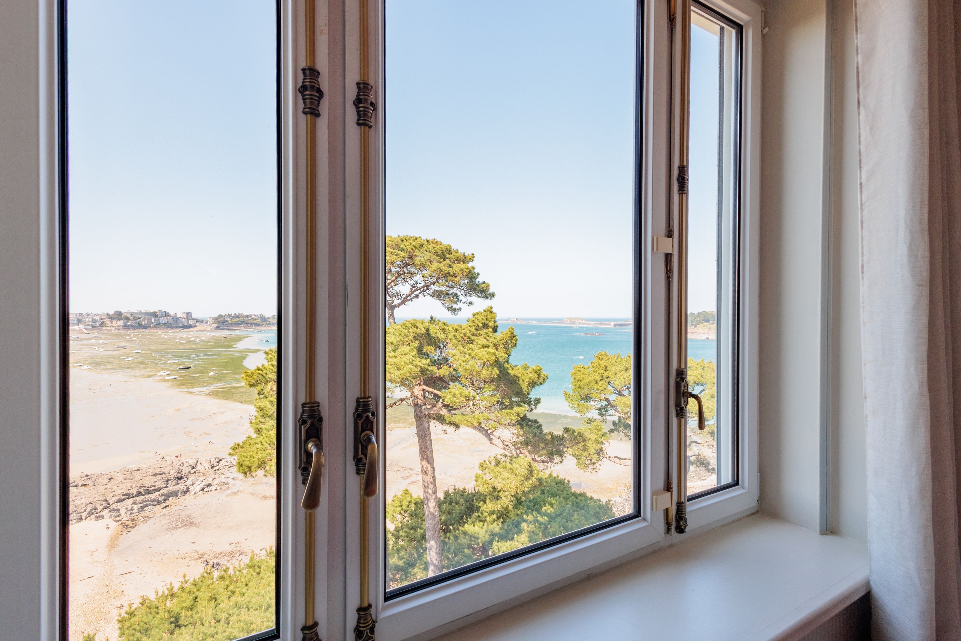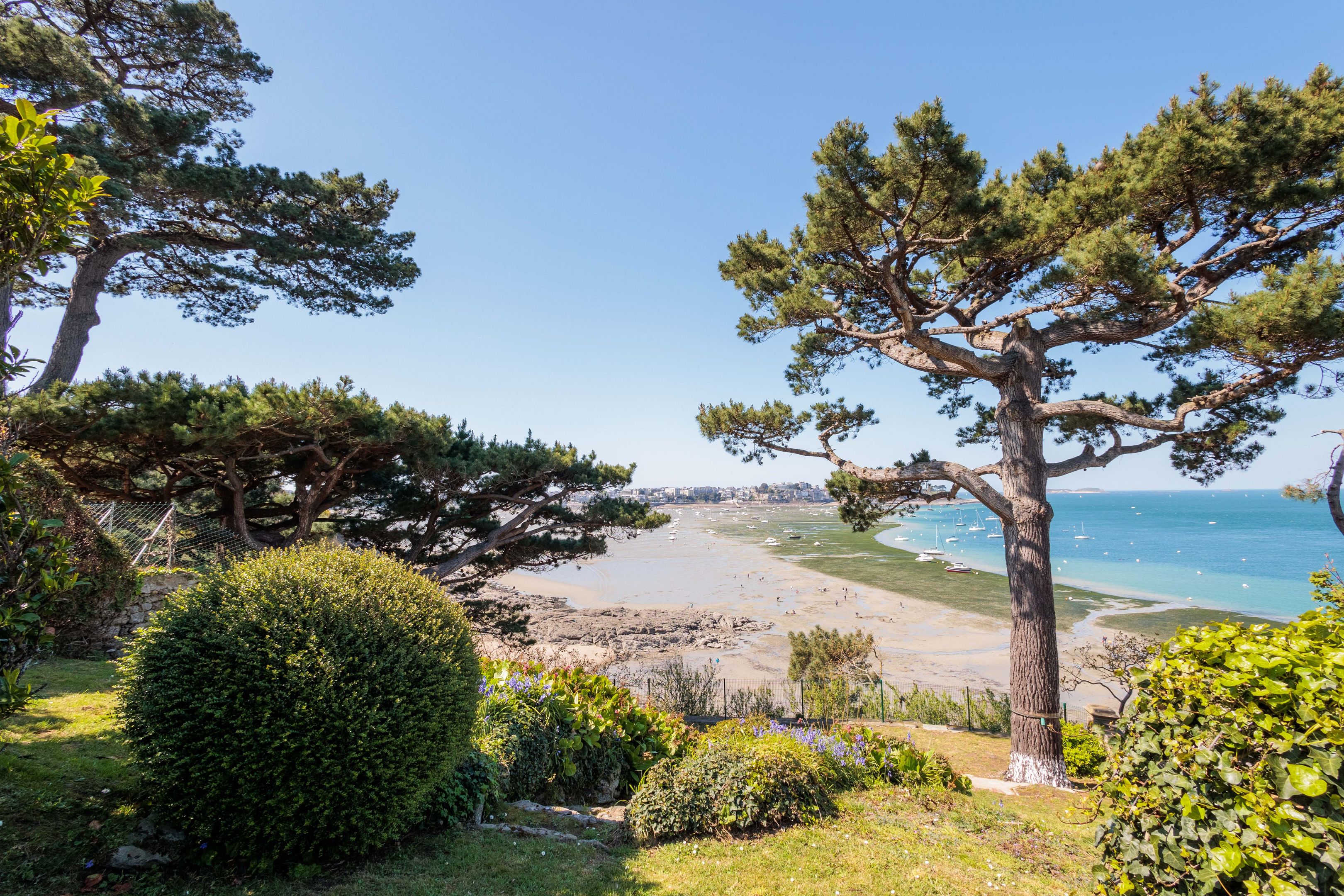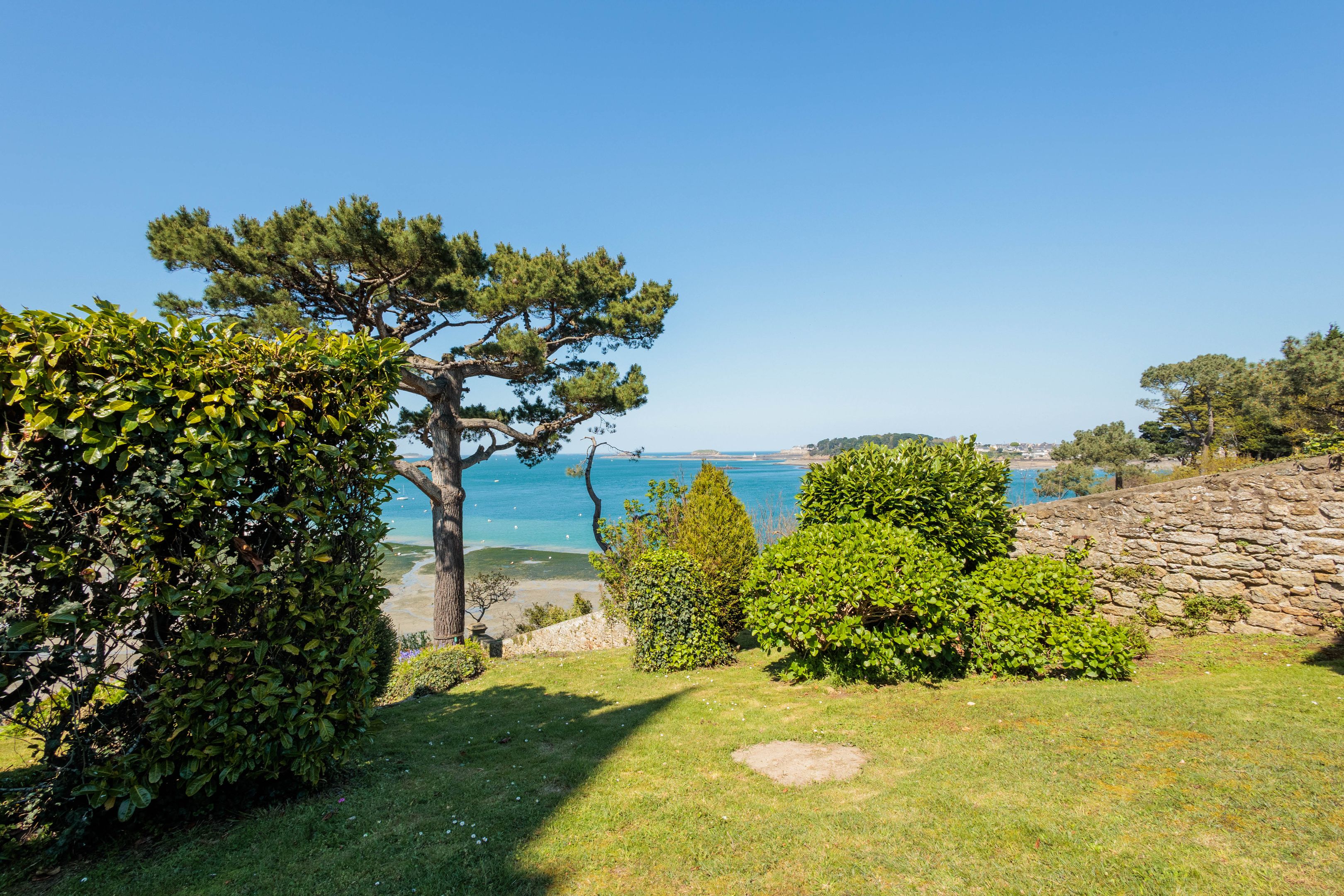 VENDU par Breteuil - Villa "Castel du Prieuré" - Dans un environnement résidentiel privilégié très arboré et extrêmement paisible. Au dernier étage d'une prestigieuse villa dinardaise surplombant la baie du Prieuré, appartement de grand standing de 151m² bénéficiant de fabuleuses vues mer, de beaux volumes et d’une grande quiétude. Galerie d’entrée accessible directement par ascenseur, séjour parquet-moulures-cheminée, salle à manger, cuisine dinatoire, 3 chambres de belle taille, 2 salles de bains douche-baignoire-toilettes, toilettes séparées. Espace buanderie et nombreux rangements. Cave, garage, 2 places de stationnements extérieur. Jardin à usage partagé avec accès direct au chemin des douaniers et à la plage.