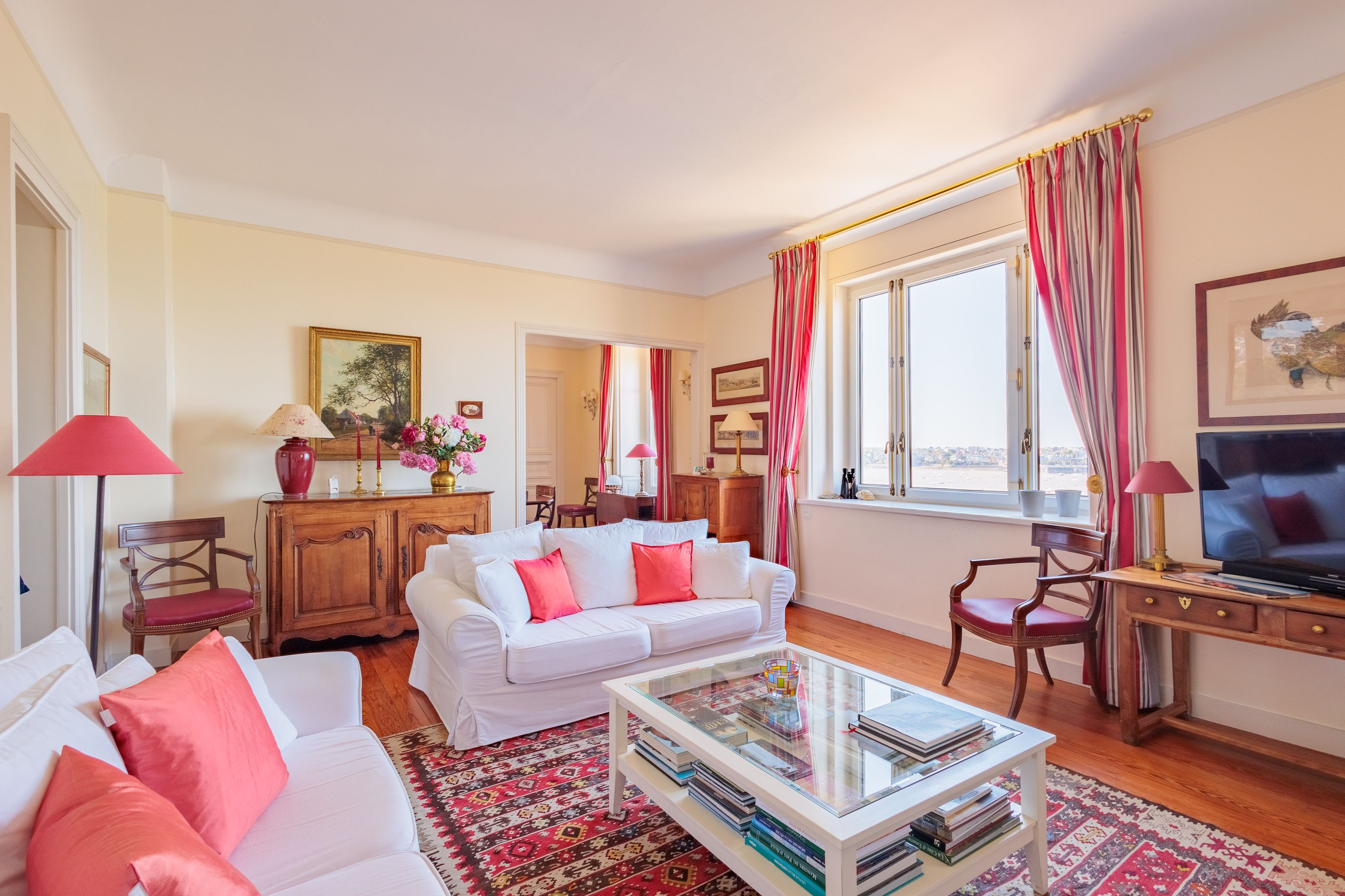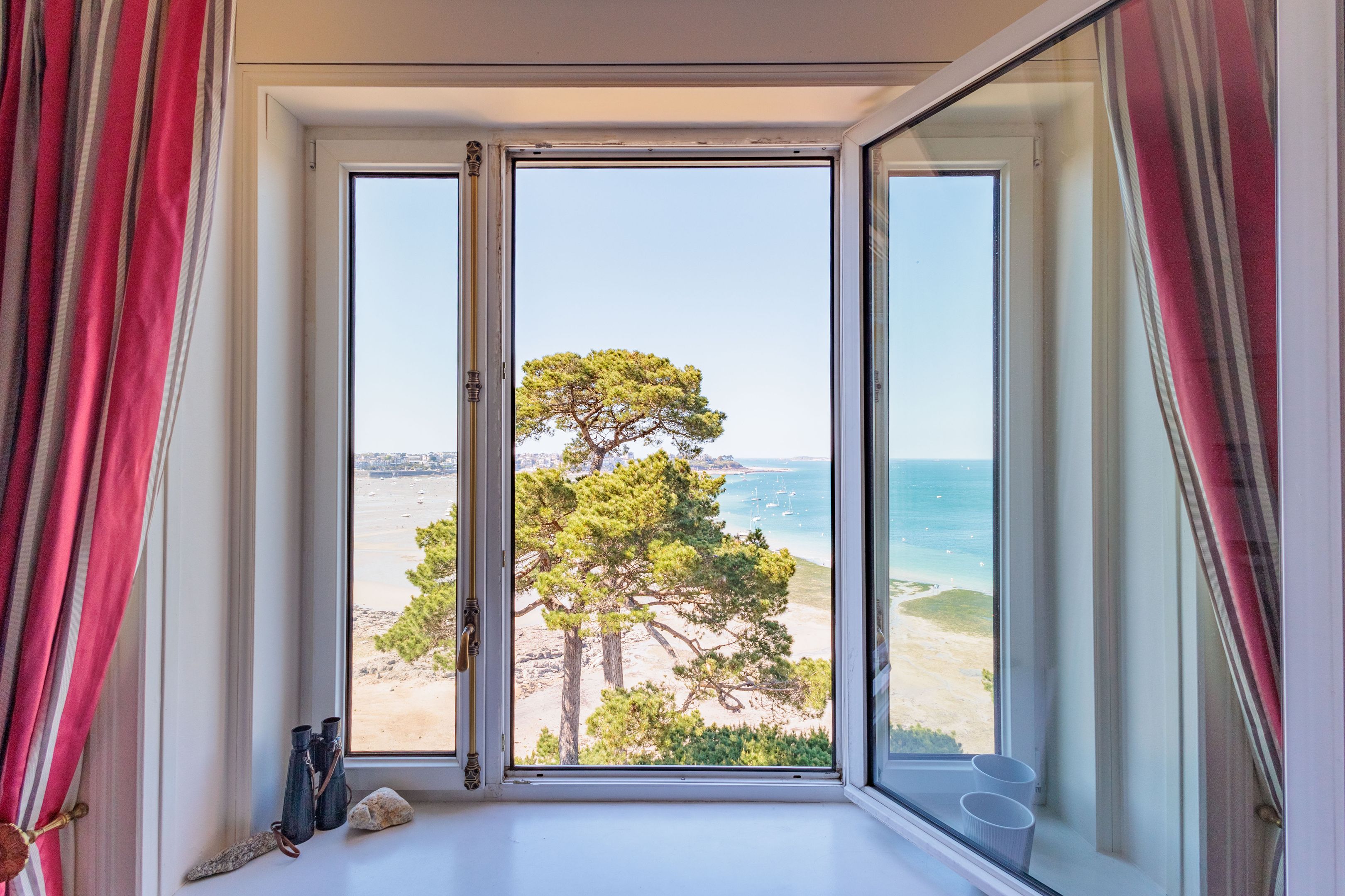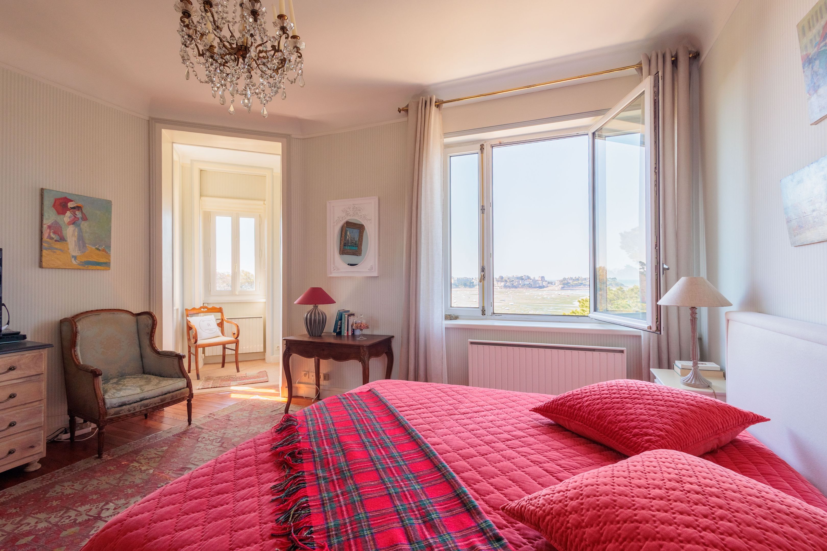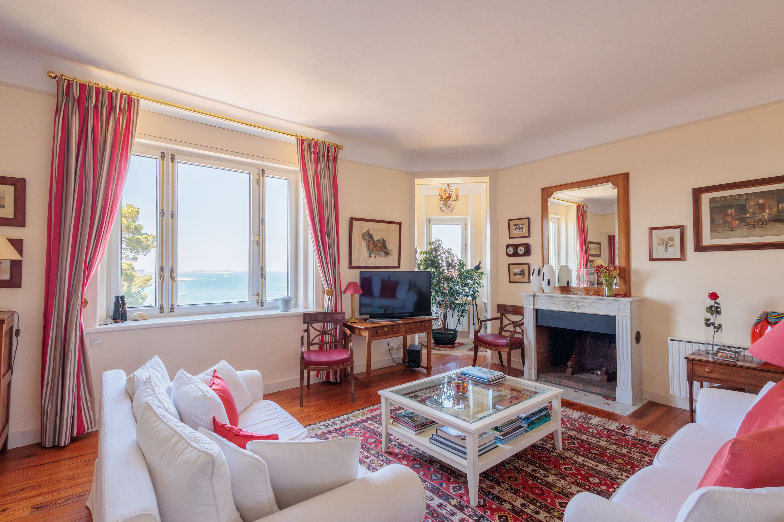 VENDU par Breteuil - Villa "Castel du Prieuré" - Dans un environnement résidentiel privilégié très arboré et extrêmement paisible. Au dernier étage d'une prestigieuse villa dinardaise surplombant la baie du Prieuré, appartement de grand standing de 151m² bénéficiant de fabuleuses vues mer, de beaux volumes et d’une grande quiétude. Galerie d’entrée accessible directement par ascenseur, séjour parquet-moulures-cheminée, salle à manger, cuisine dinatoire, 3 chambres de belle taille, 2 salles de bains douche-baignoire-toilettes, toilettes séparées. Espace buanderie et nombreux rangements. Cave, garage, 2 places de stationnements extérieur. Jardin à usage partagé avec accès direct au chemin des douaniers et à la plage.