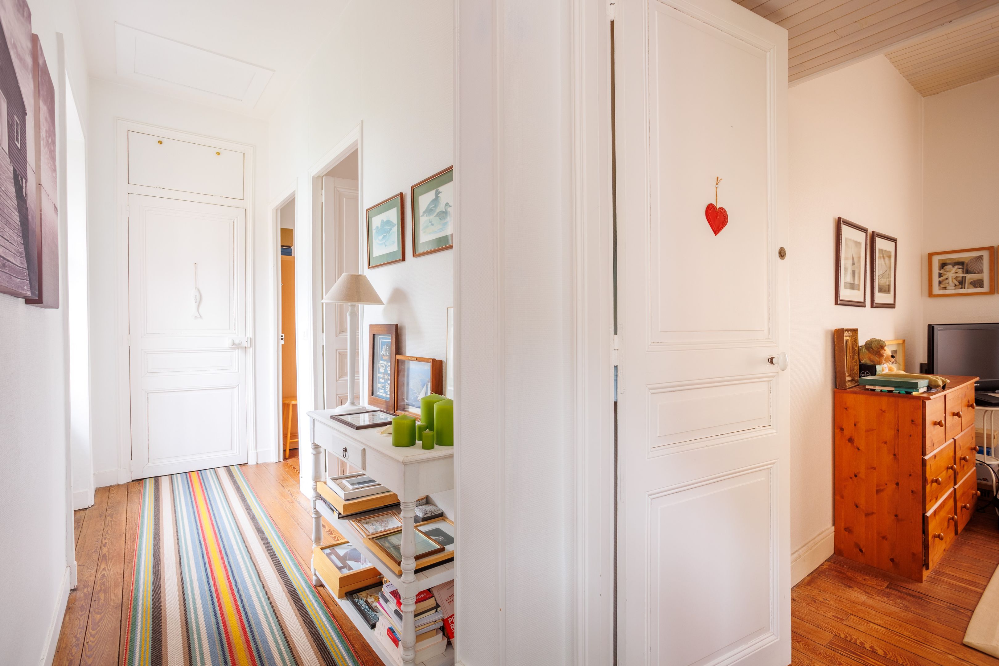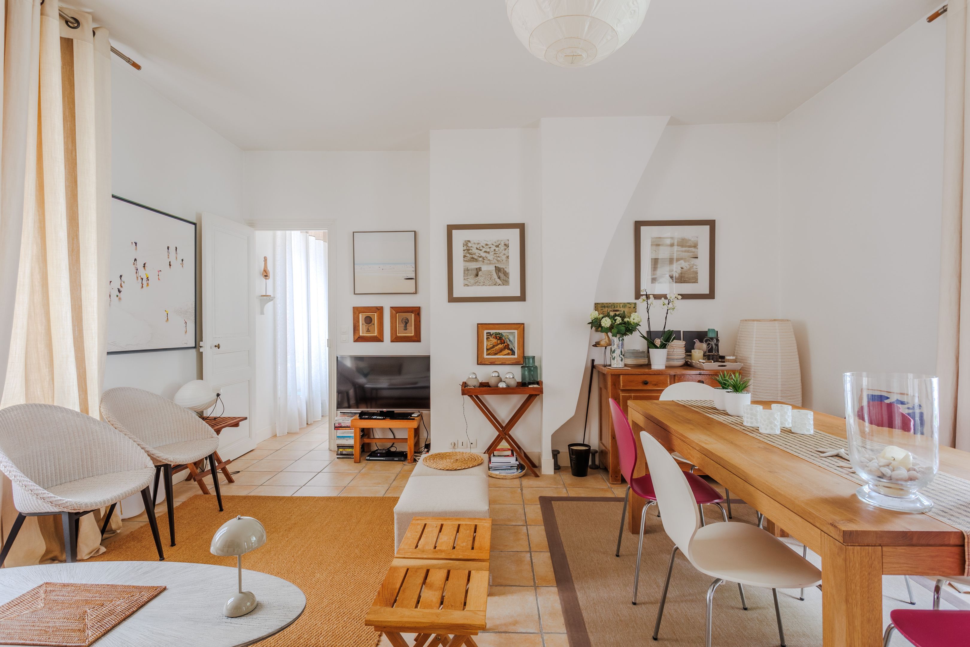 Entrée, vaste pièce de vie avec salon-salle à manger traversant et cuisine séparée ouvrant sur une terrasse en bois de belle taille. À l’étage trois chambres, salle de d’eau récemment rénovée et toilettes séparés. Nombreux rangements.