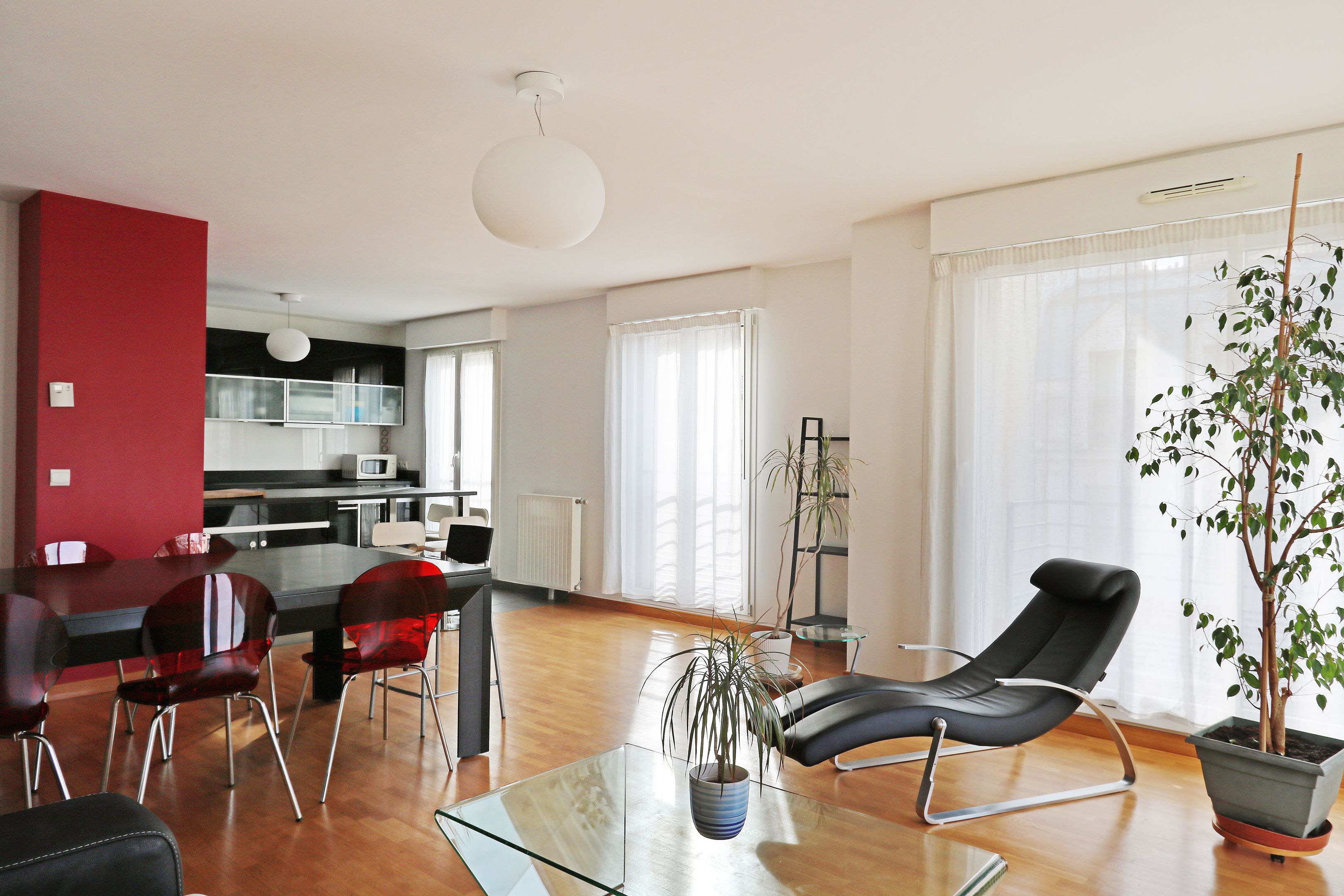 Immeuble récent de standing, 3ème étage desservi par ascenseur, appartement ensoleillé avec 2 grands balcons, loué meublé.