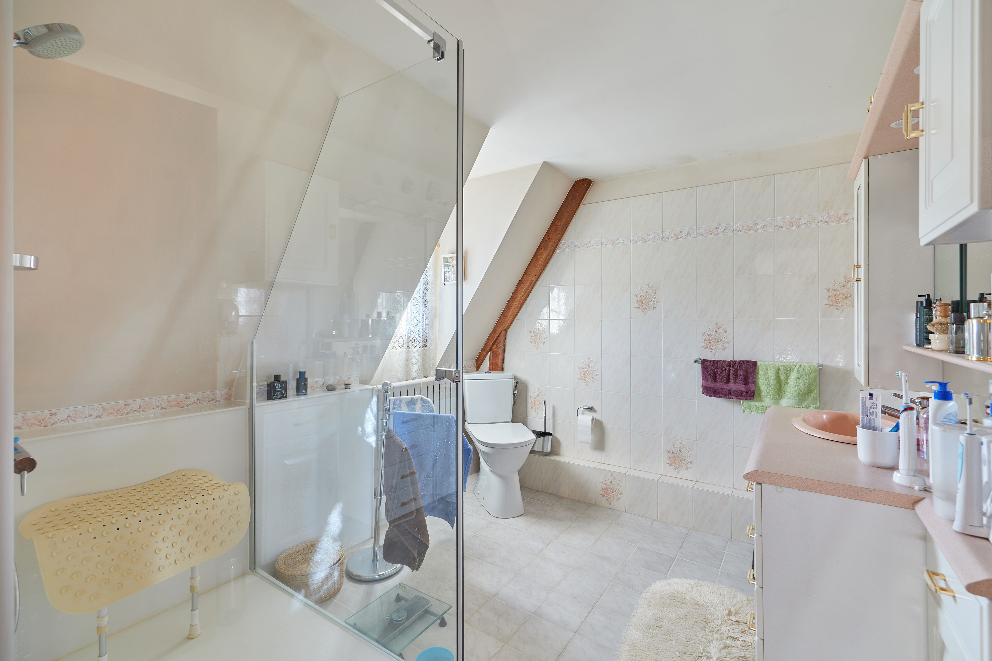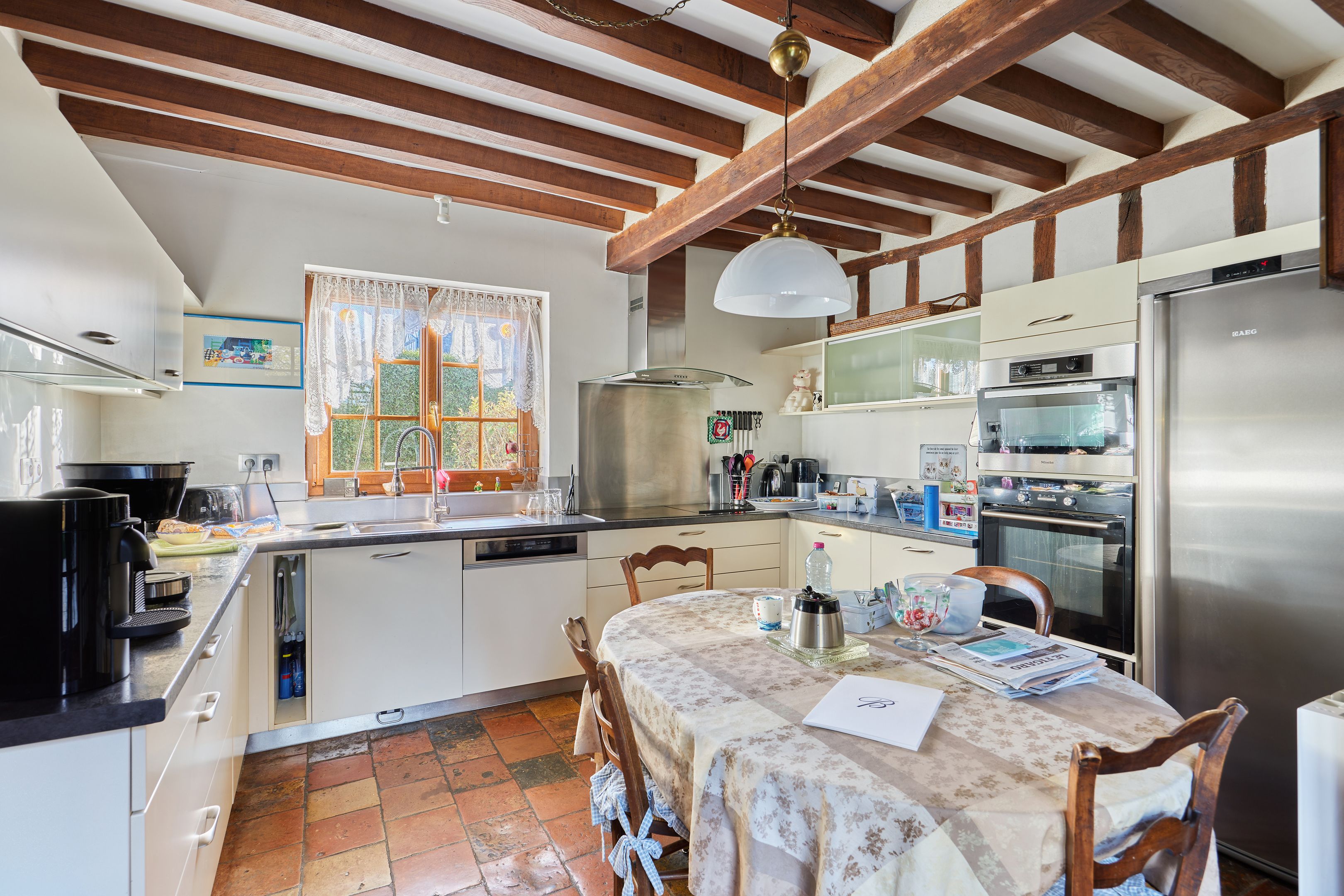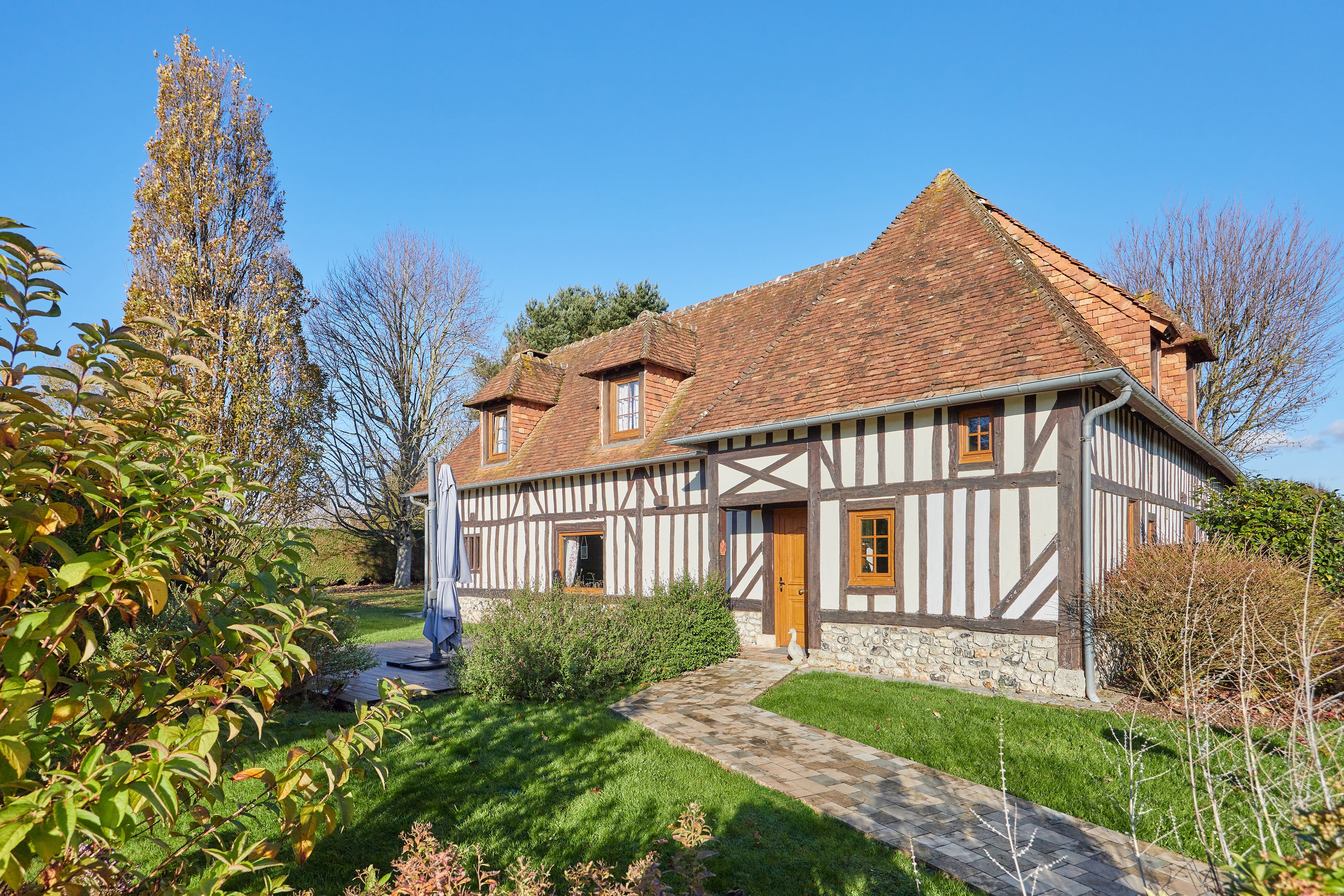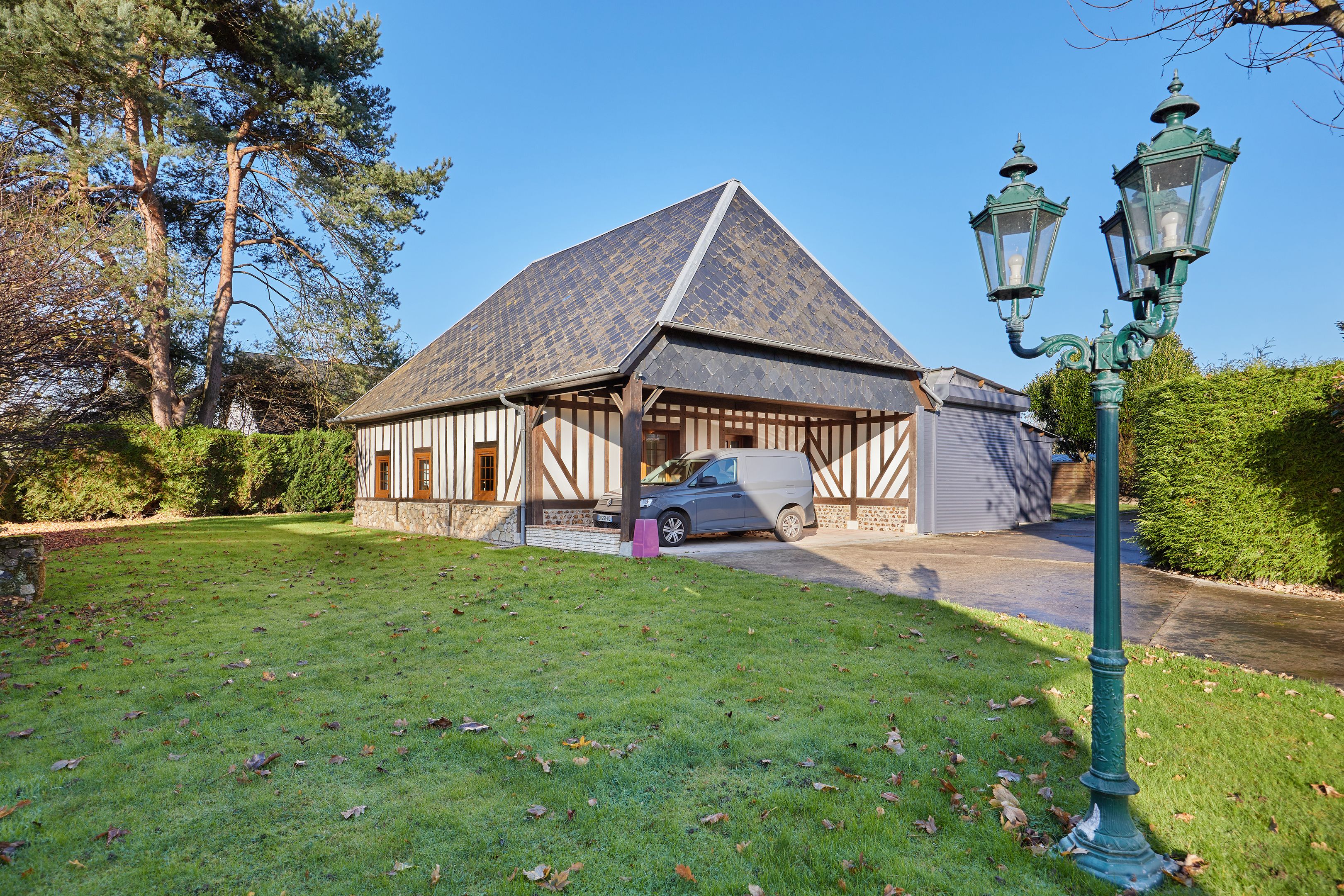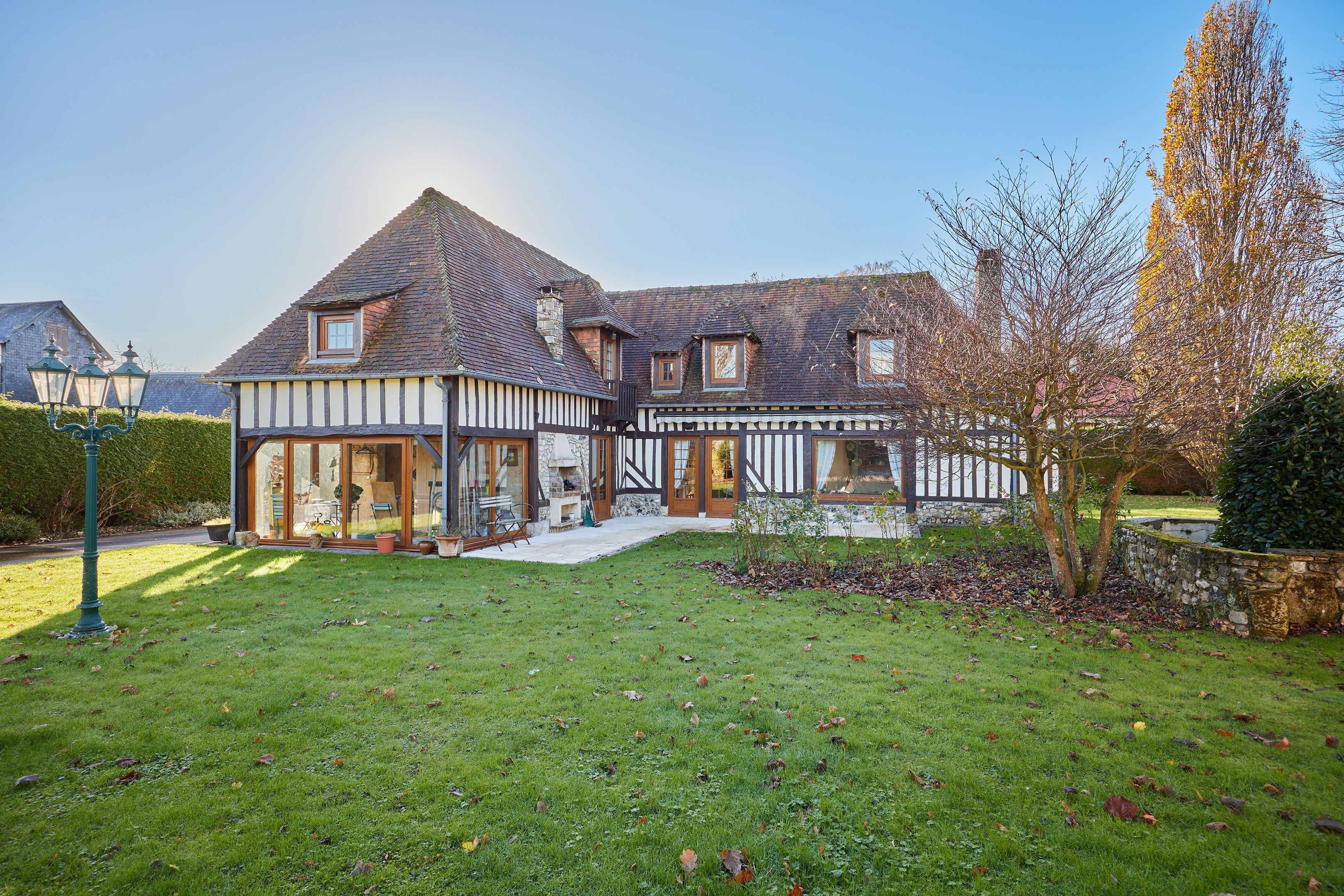 À 5 min de Honfleur, au calme, bel ensemble édifié sur un terrain clos de 2478 m². Au rez-de-chaussée de la maison principale (155 m² habitables) : entrée, spacieuse pièce à vivre traversante avec cheminée, cuisine indépendante, arrière-cuisine, jardin d'hiver, toilettes invités. À l'étage : deux chambres dont une avec sa salle de bains et ses toilettes, salle d'eau avec toilettes, bureau, dressing. Cave en sous-sol. En dépendance : maison d'amis de 59 m² comprenant séjour, cuisine, chambre, salle d'eau et toilettes indépendantes. Garage couvert accolé. Réserve et abri bois.