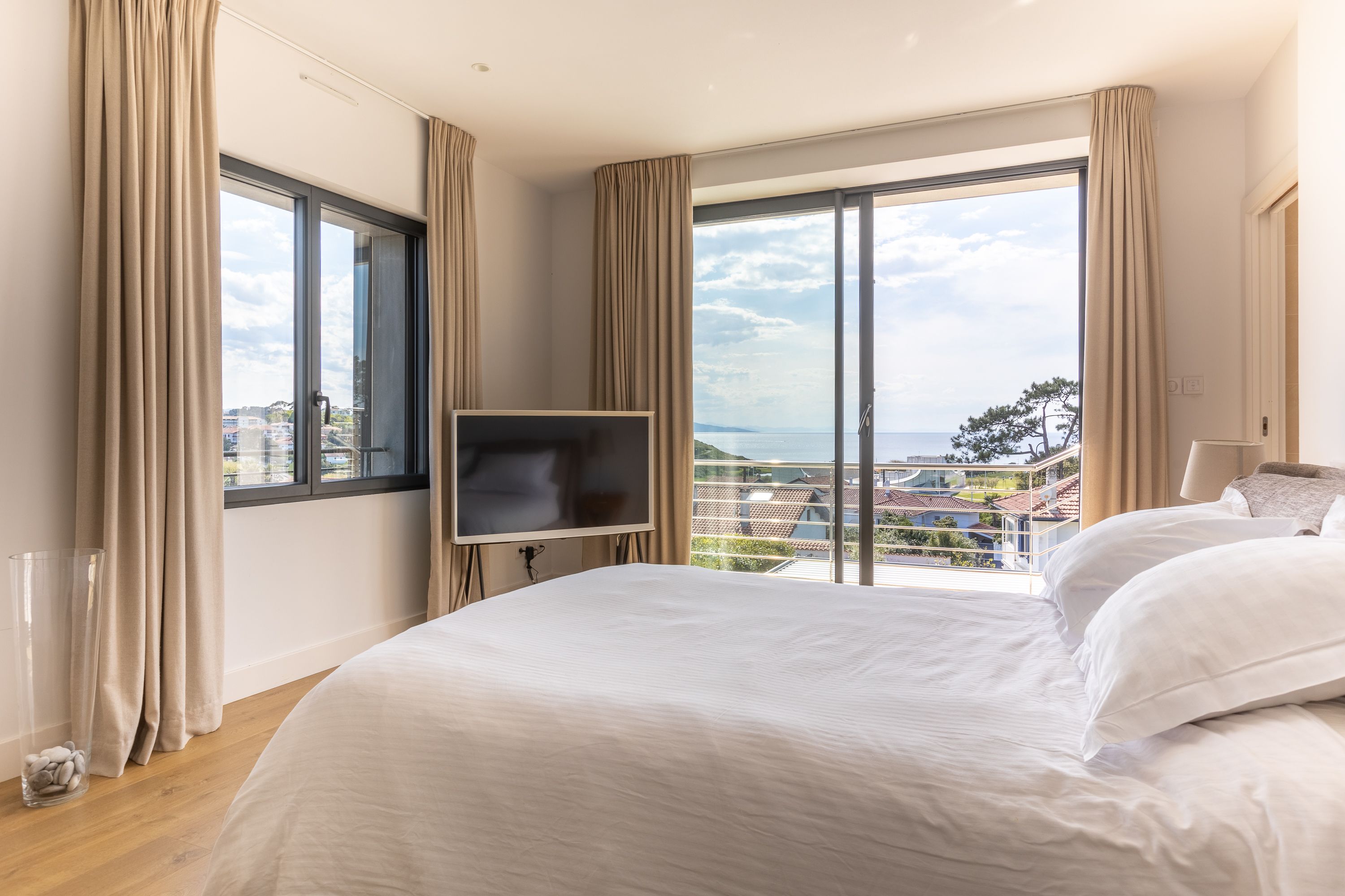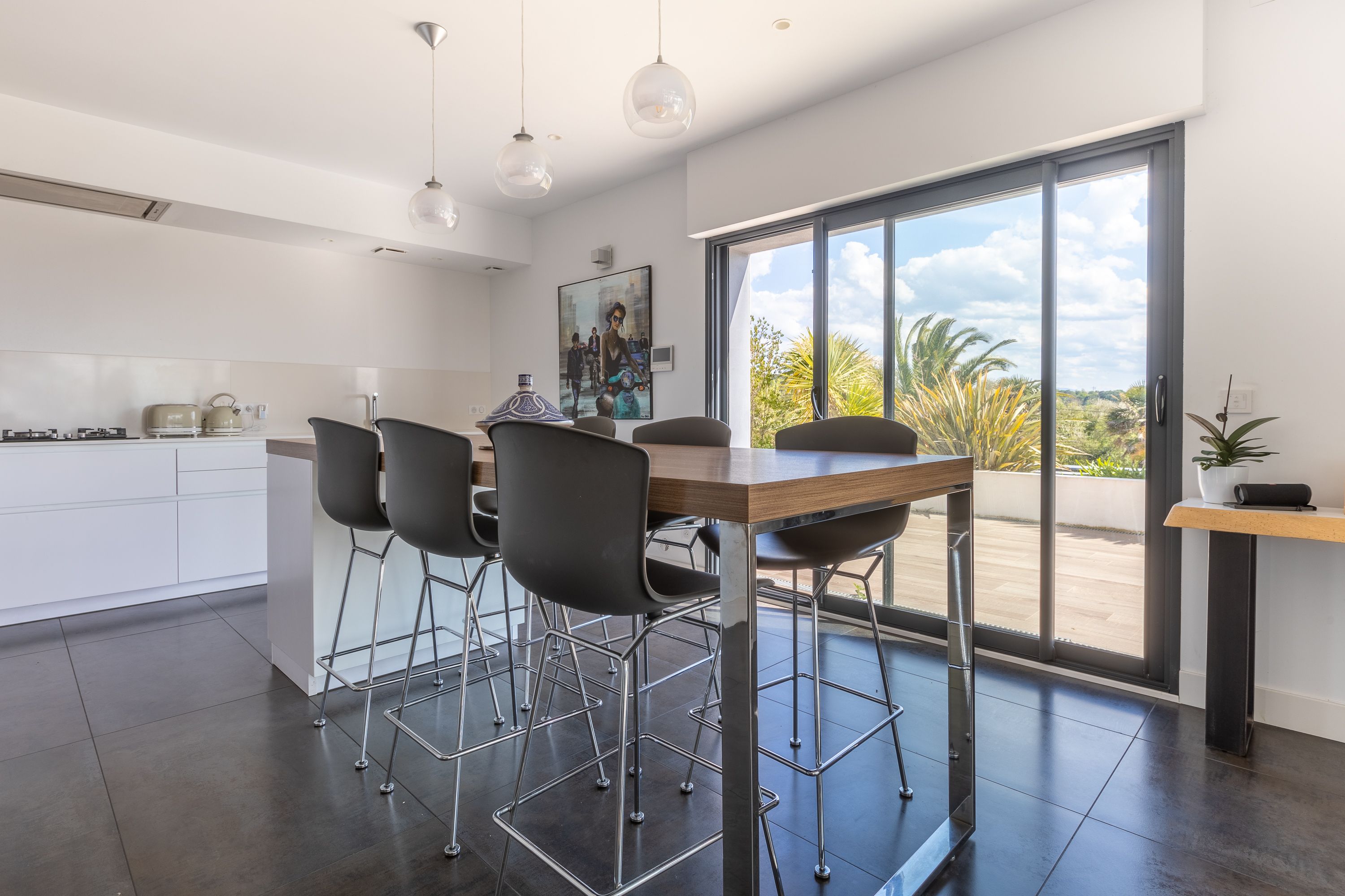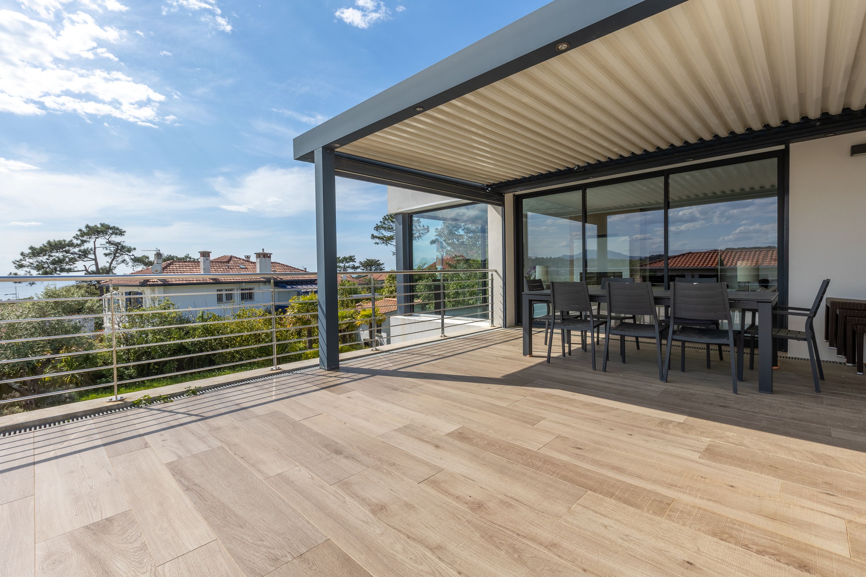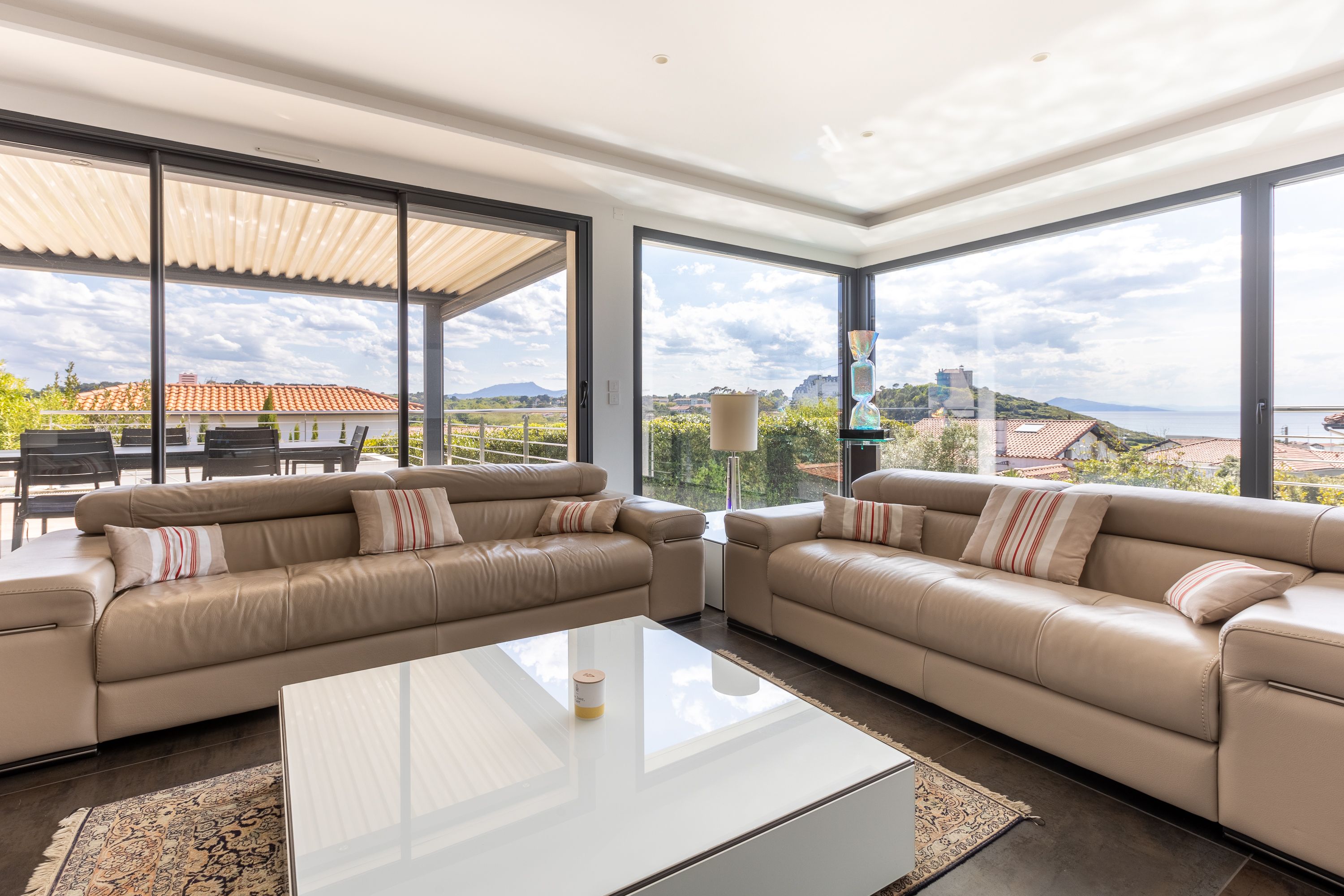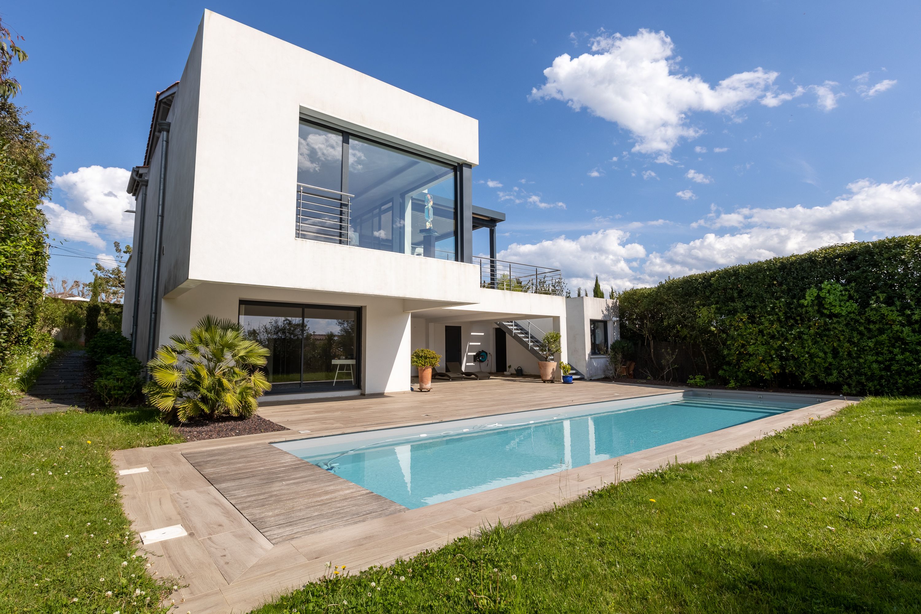 Située au quartier de la milady, superbe villa contemporaine de 270m2 avec vue mer et montagnes.