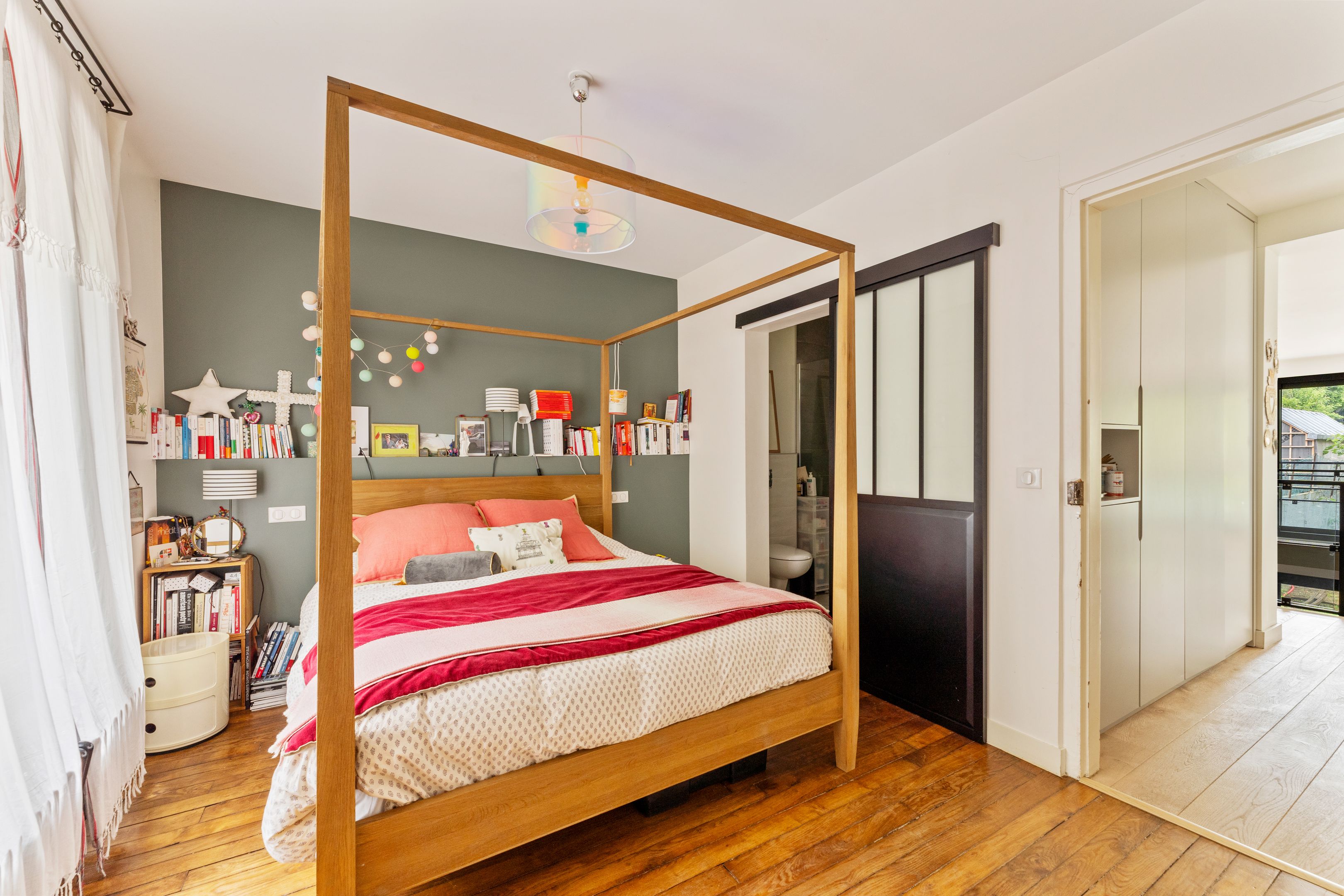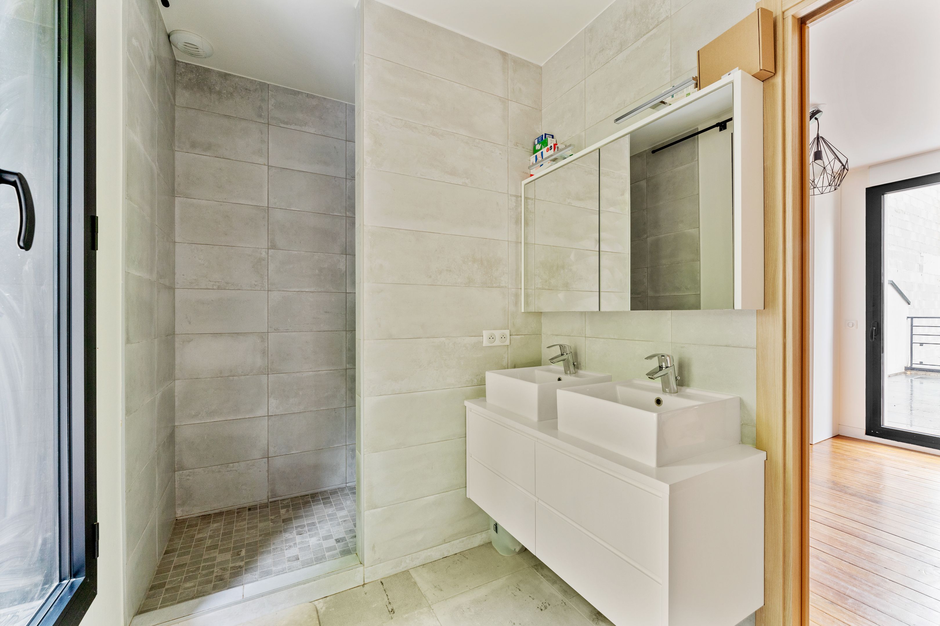 Au 2ème étage : deux chambres avec rangements et accès à une grande terrasse de 45m2 sans vis-à-vis ; salle de douche partagée avec toilettes et double vasque.