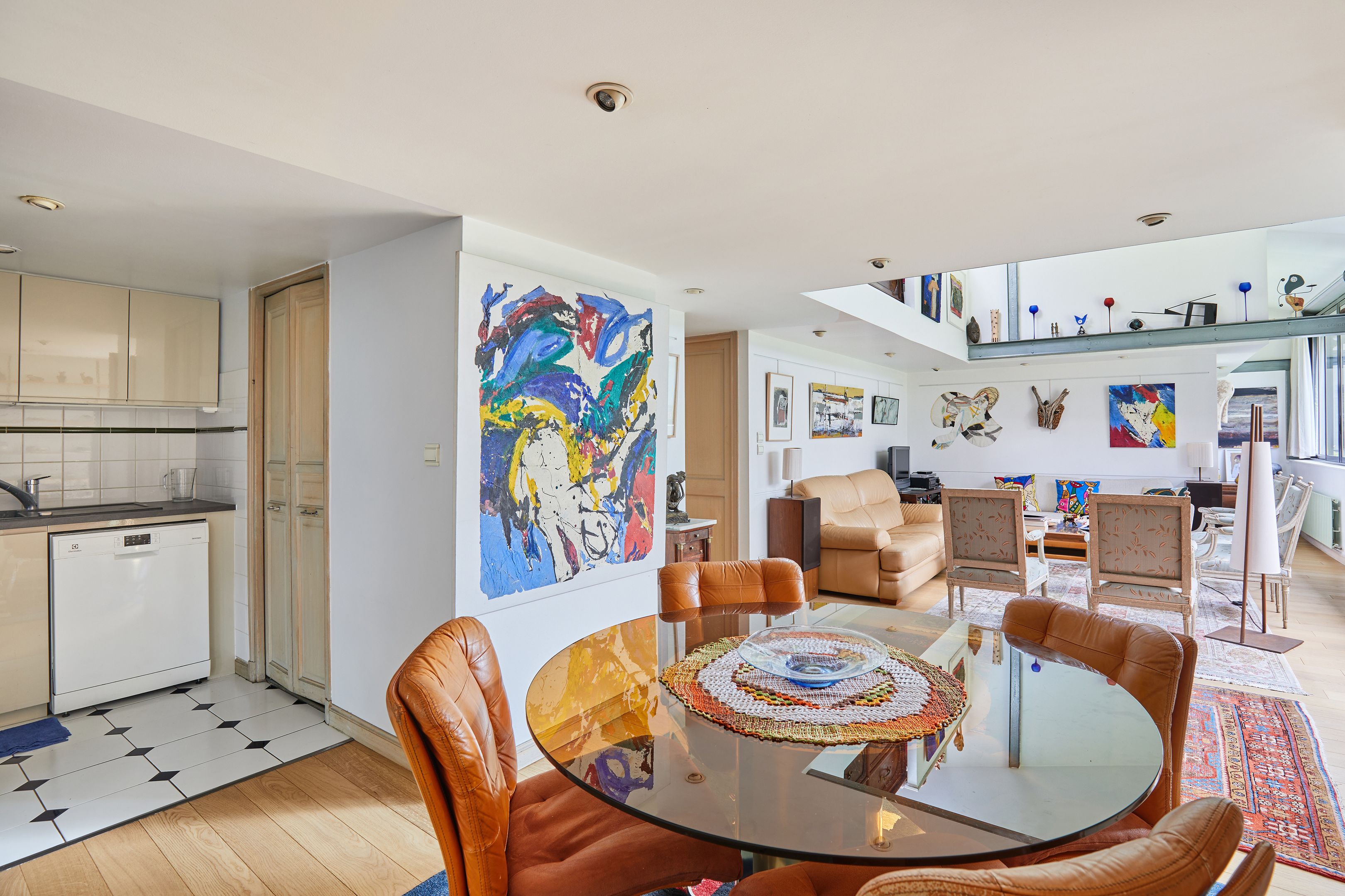 À proximité de la place Voltaire, des commerces et transports, bâtiment de type industriel bénéficiant des services d'un gardien, appartement en duplex de 99m² loi Carrez et 130m² au sol entièrement réhabilité en 1996, situé au 2ème et dernier étage desservi par escalier. 1er niveau : entrée, séjour, salle à manger, cuisine ouverte, chambre, bureau, salle de bains, toilettes séparées. En mezzanine : bureau, chambre pourvue d'un toit escamotable transformable en terrasse tropézienne (toiture amovible électrique).