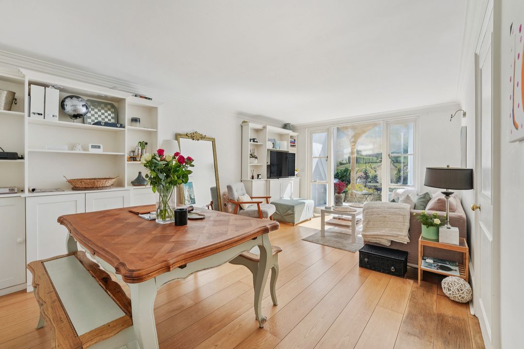 Magnifique appartement "parquet, moulures, cheminée" de cinq pièces et 150 m2 environ, avec 3,30 m de hauteur sous plafonds. Fraîchement repeint, il propose : trois pièces sur rue, en enfilade (salon, salle à manger, bureau ou chambre), une vaste cuisine dînatoire, aménagée et équipée, deux chambres sur cour, une salle de bains complète (baignoire, douche, toilettes), une salle d'eau et des toilettes séparés. Appartement familial, proche de Janson de Sailly. Cave en sous-sol.