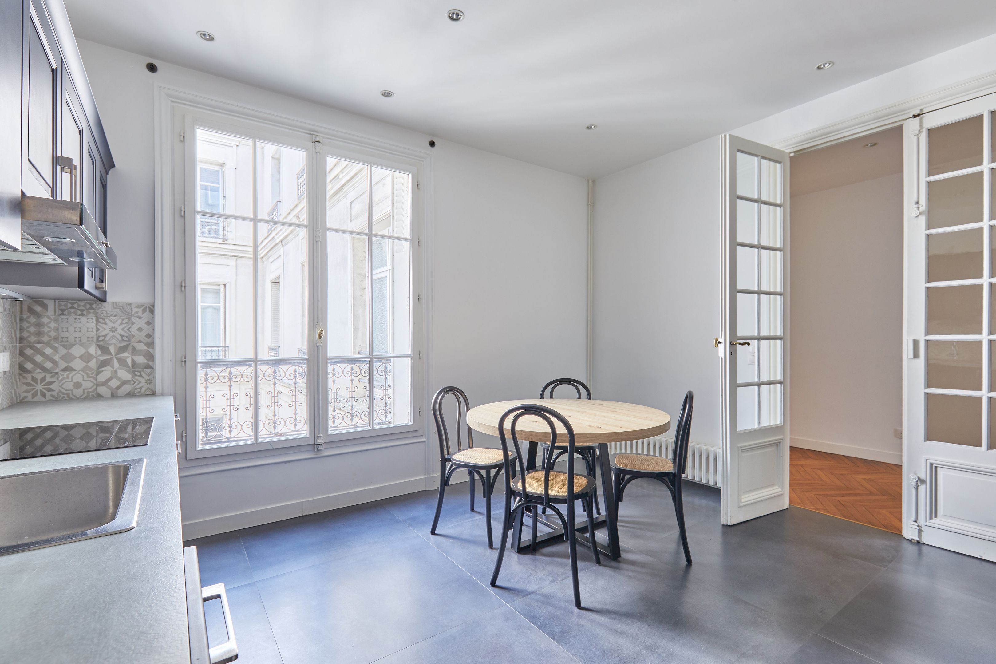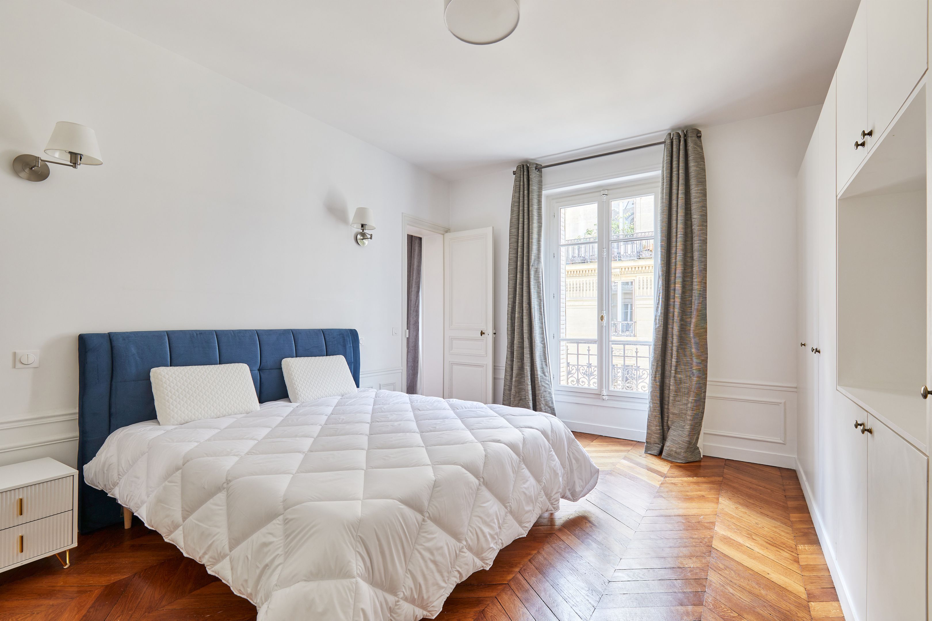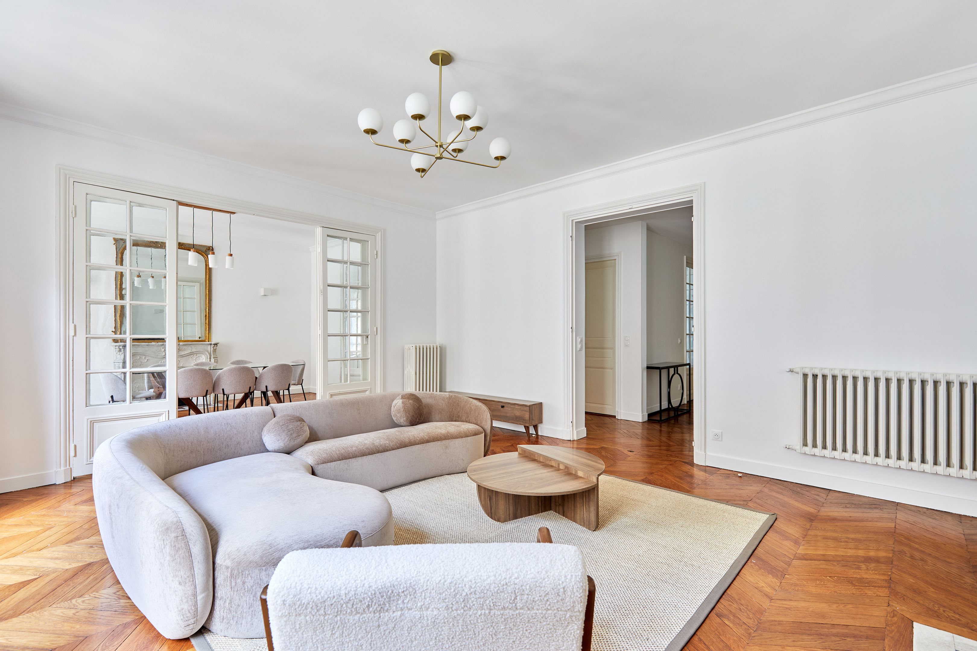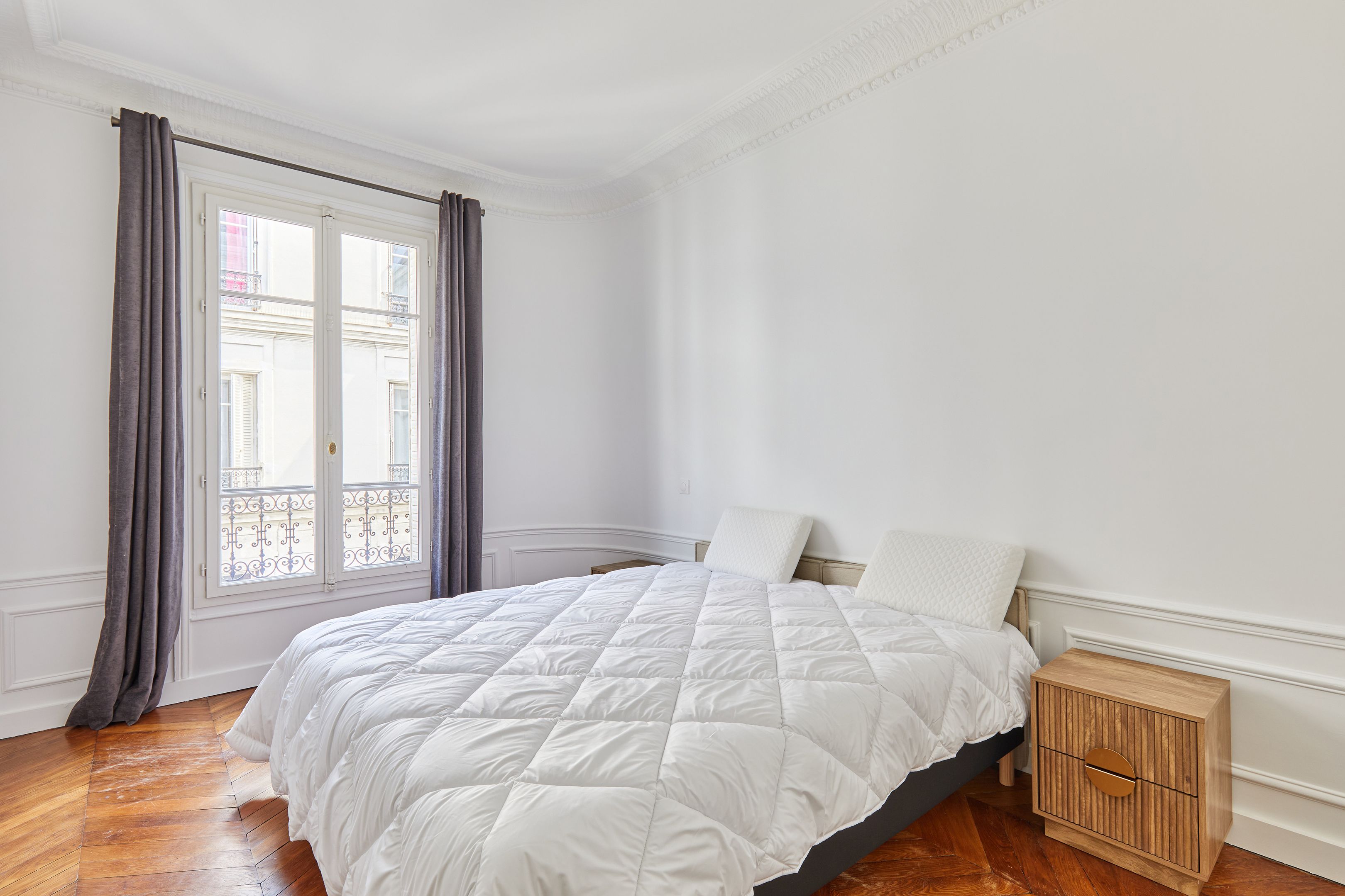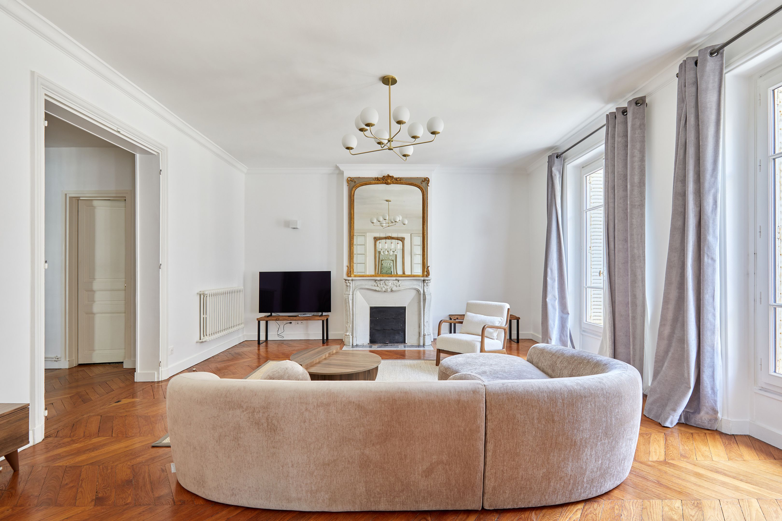 Dans un immeuble ancien parfaitement entretenu, au quatrième étage desservi par ascenseur, appartement meublé de 157,94 m², en très bon état et au mobilier neuf. Entrée, salon et salle à manger sur rue, cuisine dînatoire aménagée et équipée avec espace buanderie séparé, suite parentale (chambre avec placard et salle de bain complète : baignoire, douche, toilettes), deux chambres sur cour avec placards, salle de bains et deux toilettes séparées.