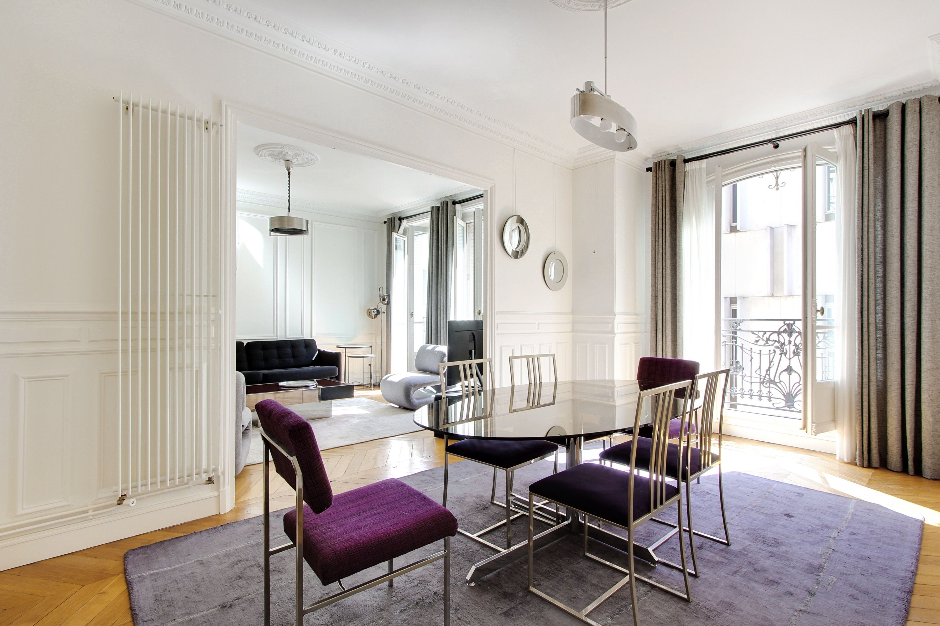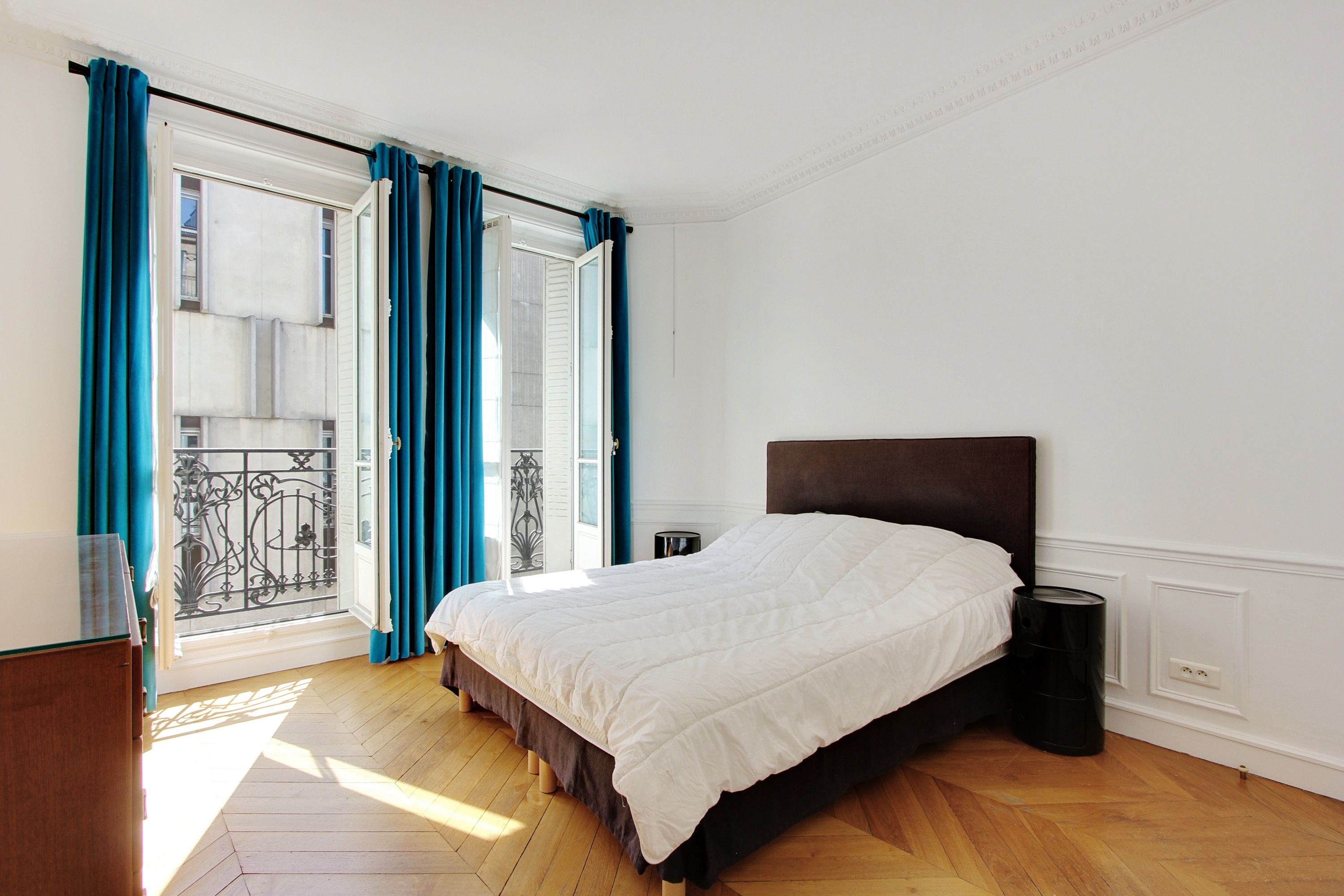 Immeuble haussmannien en pierre de taille, sécurisé avec digicode et concierge, appartement meublé de 119 m² au 4ème étage desservi par ascenseur. Double séjour lumineux, cuisine équipée, chambre principale avec rangements et salle de douche, deux chambres avec placards, salle de bains, toilettes séparées. Nombreux rangements.