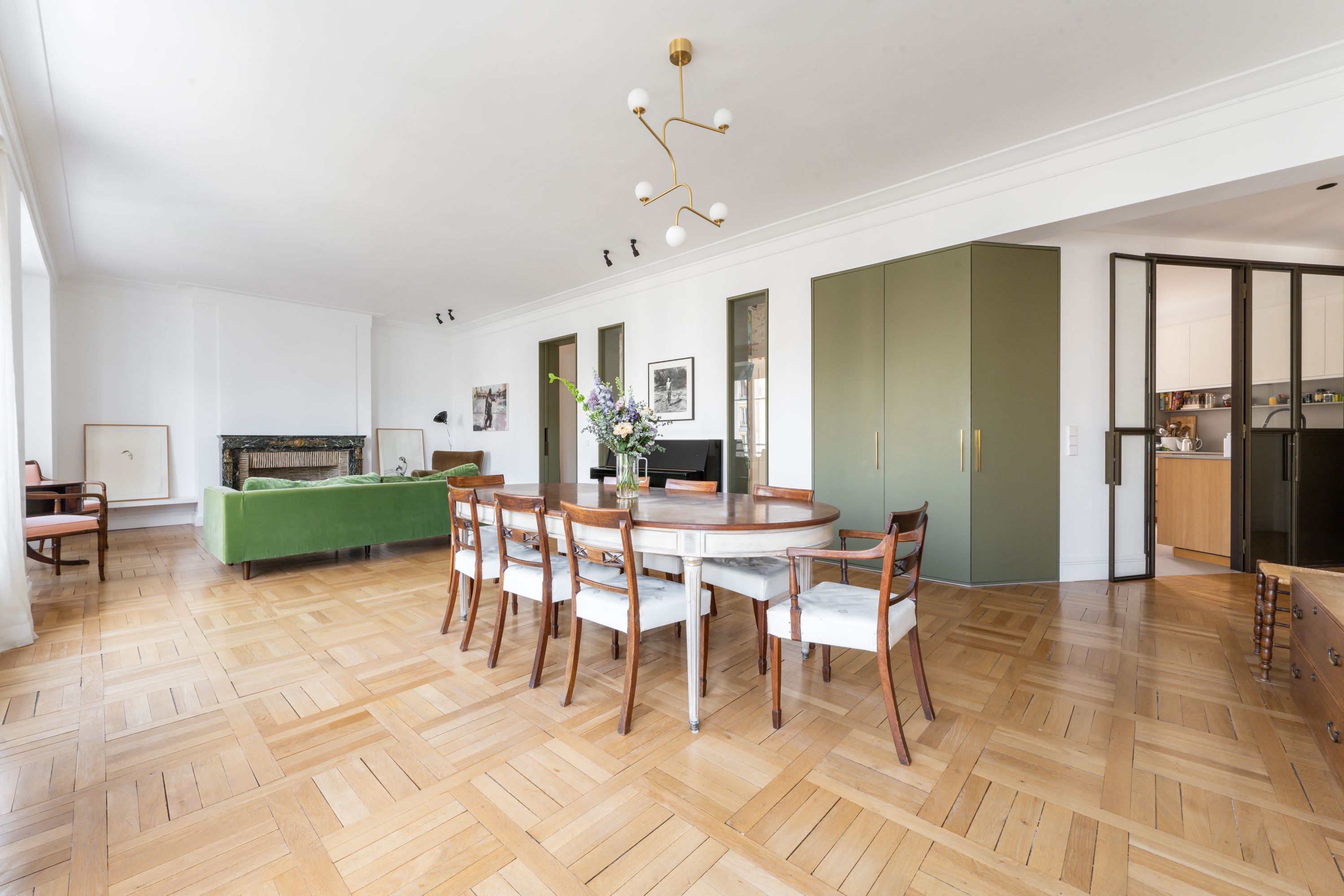 Au 3ème étage desservi par ascenseur, appartement familial/de réception doté de belles prestations, loué meublé et bénéficiant en annexe sur le même palier d'une studette meublée et équipée avec kitchenette, douche et toilettes.