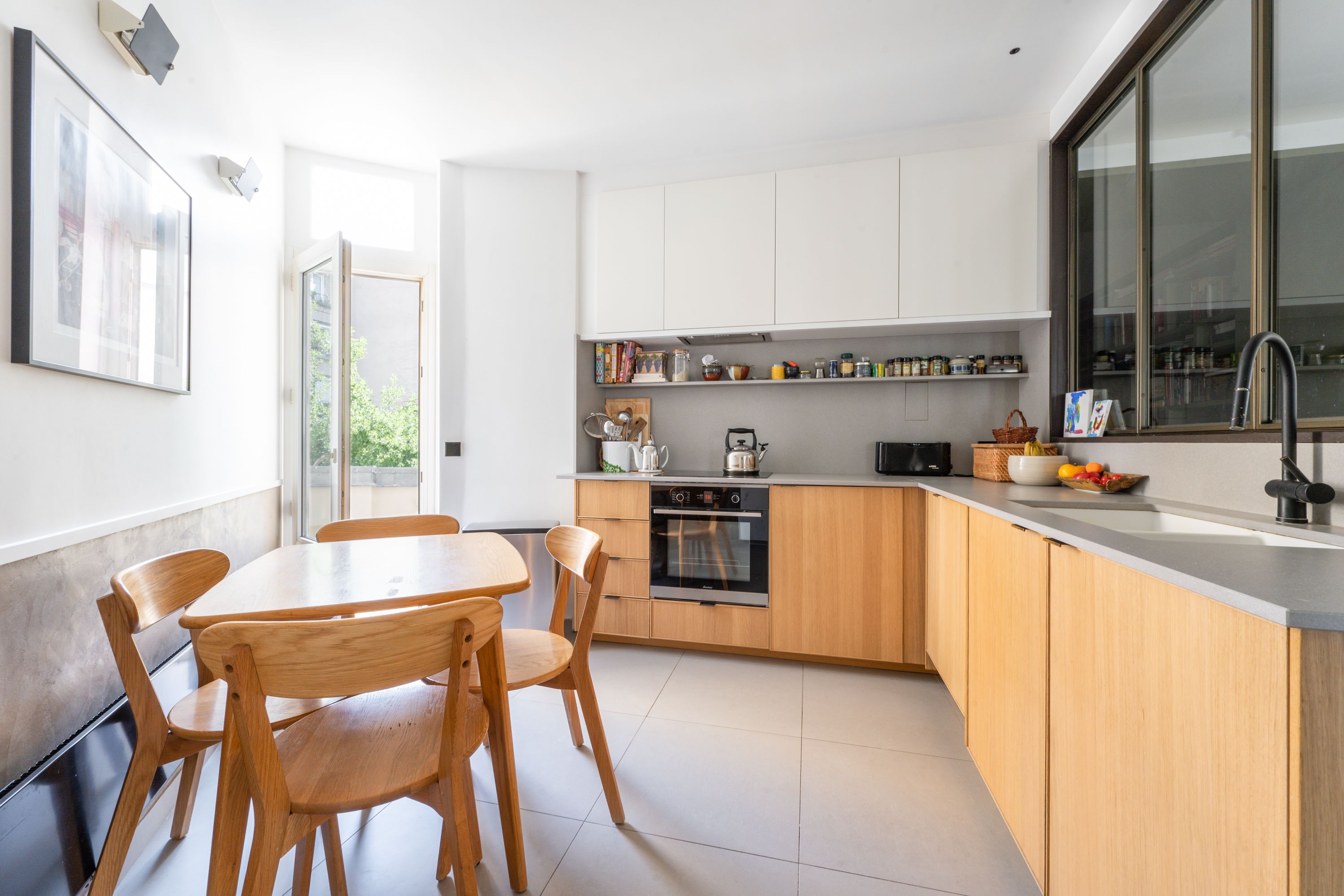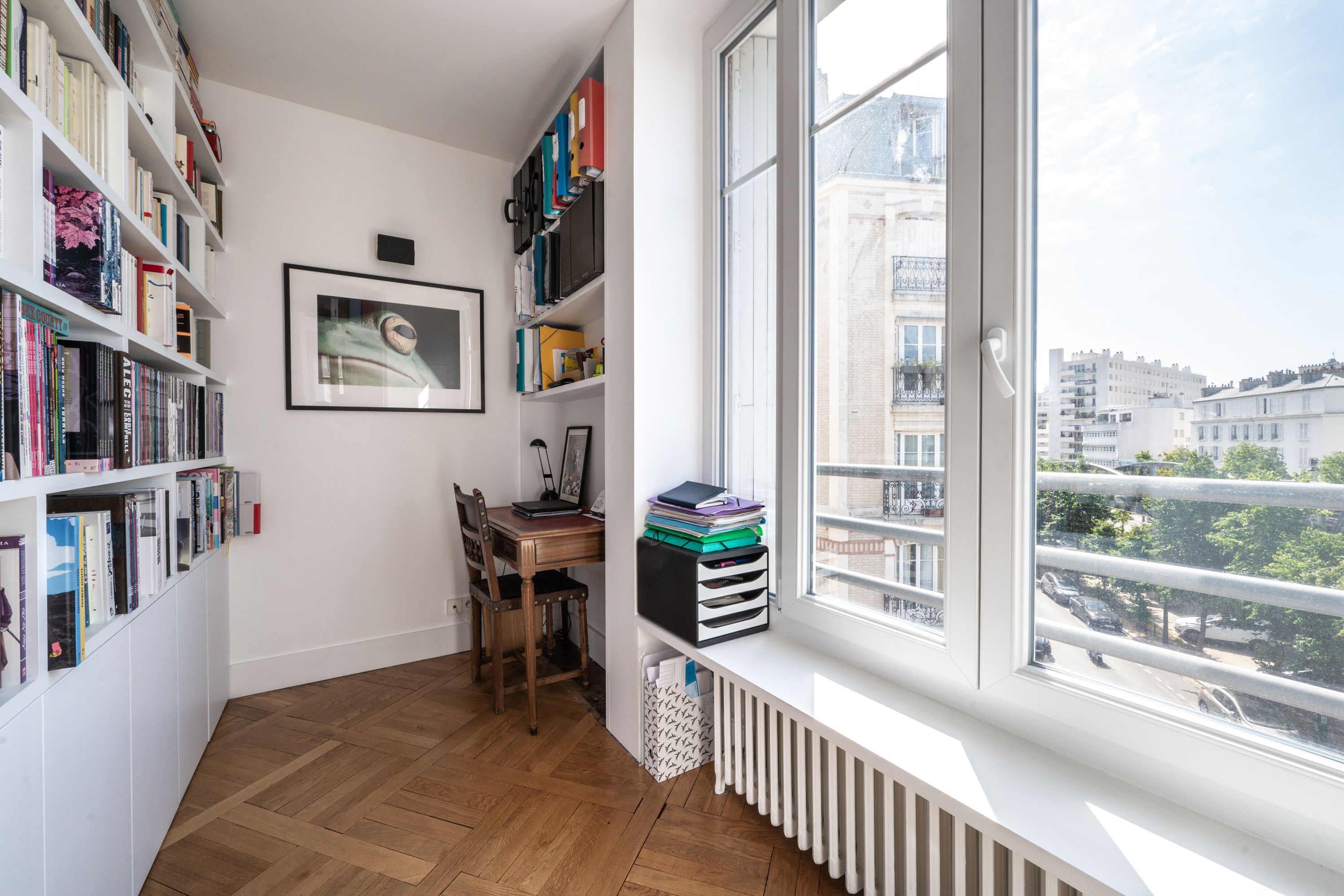 Entrée avec bibliothèque intégrée, vaste séjour et salle à manger, cuisine indépendante aménagée et équipée, quatre chambres (dont une suite parentale avec salle de douche, toilettes et bureau/dressing), salle de bains avec toilettes, buanderie, toilettes séparées, nombreux rangements, terrasse de 10m². Chauffage collectif.