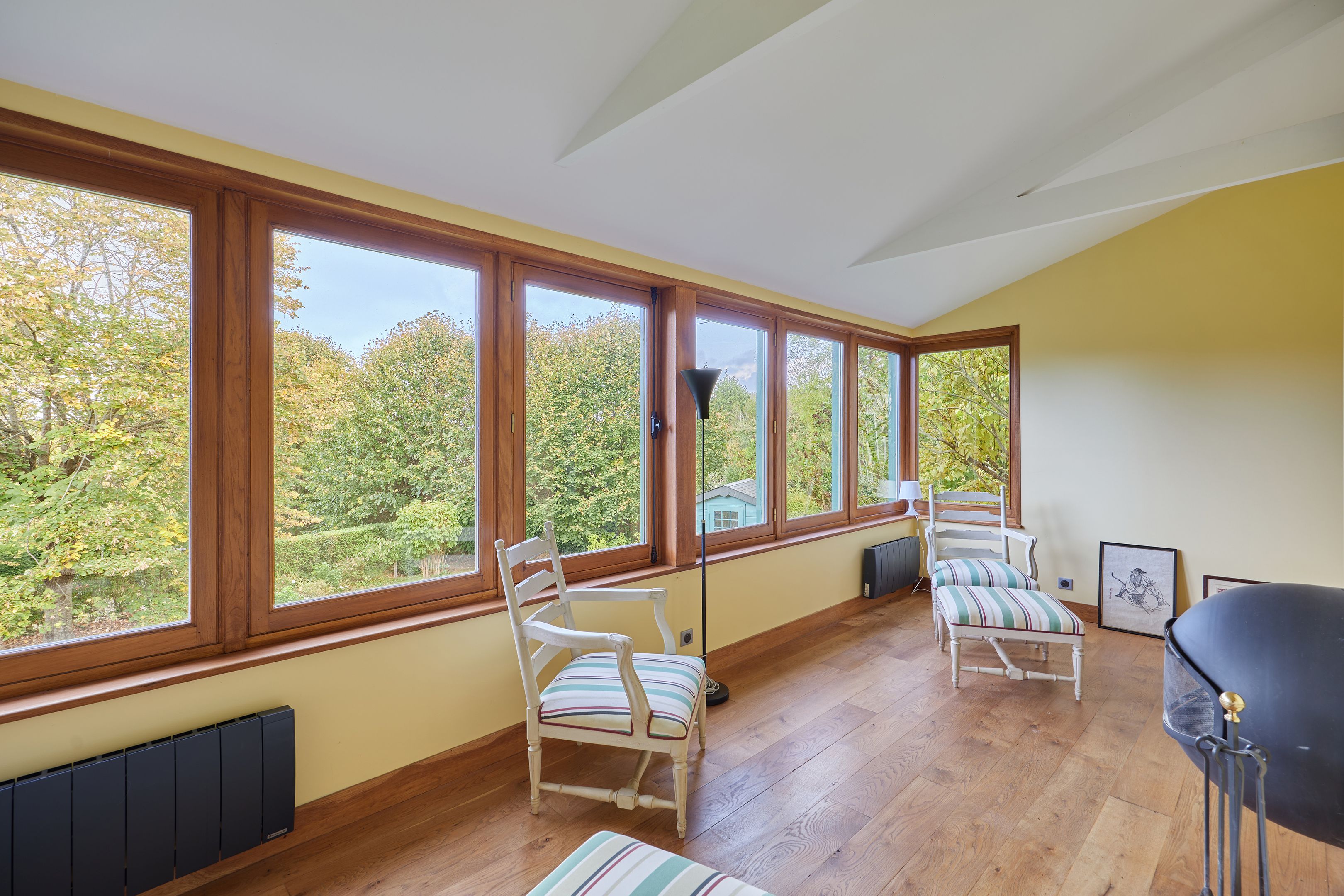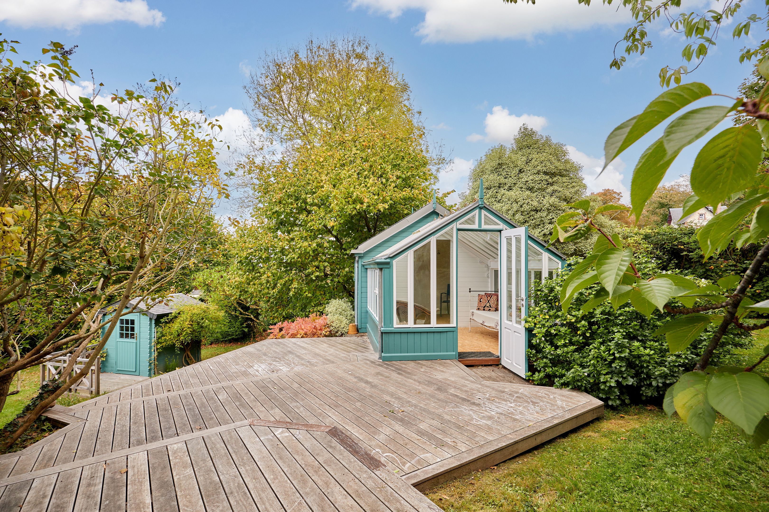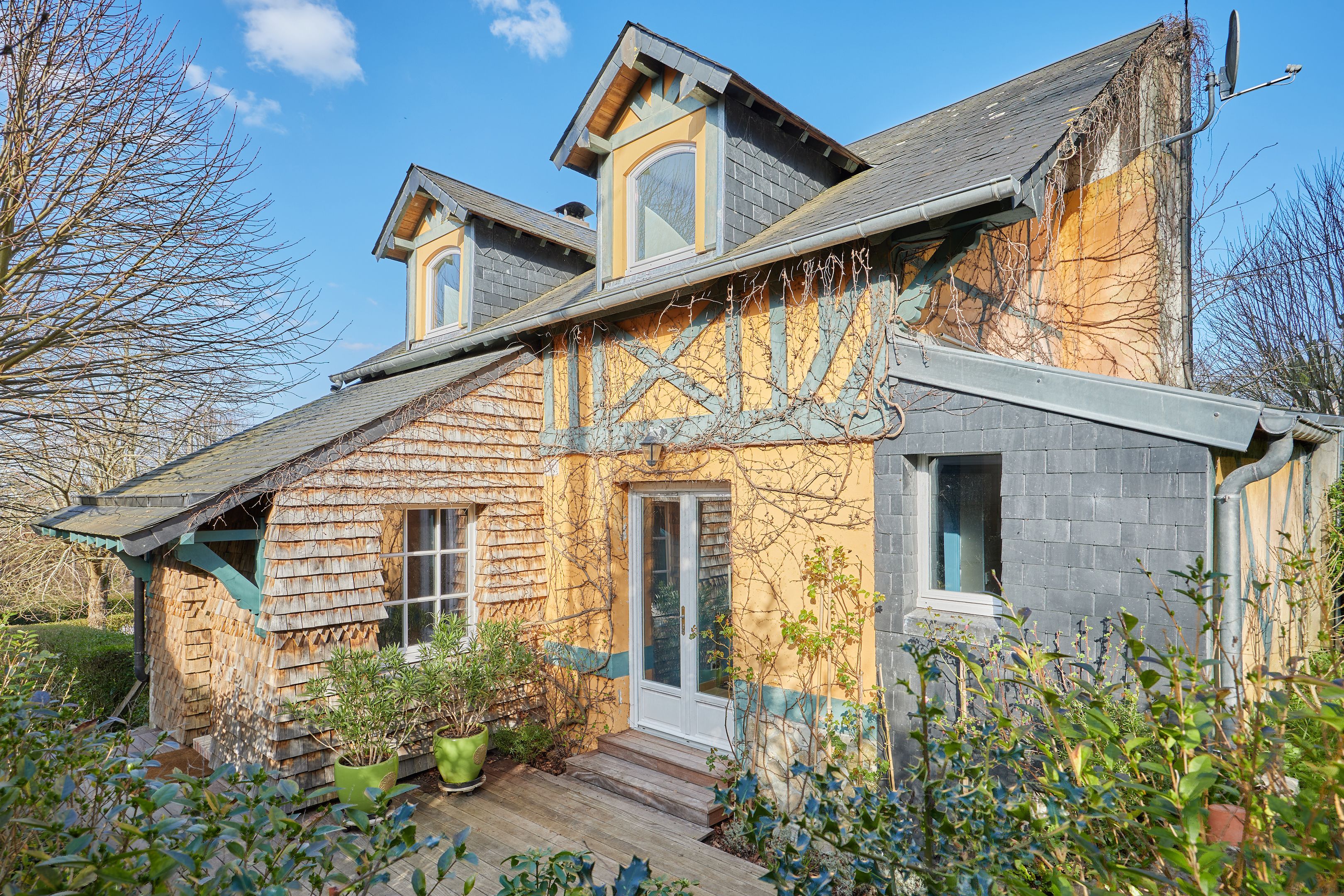 Sur les hauteurs de Trouville-sur-Mer, charmante maison entièrement rénovée de 79m2 Carrez (88 au sol) édifiée sur un terrain de 1202m2. Au rez-de-chaussée : entrée, salon avec cheminée, salle-à-manger ouverte sur la terrasse, petit salon, cuisine indépendante aménagée et équipée, buanderie, salle d'eau, toilettes indépendants. À l'étage : palier mezzanine, chambre. Jardin avec serre de 12m2 et abri de jardin.