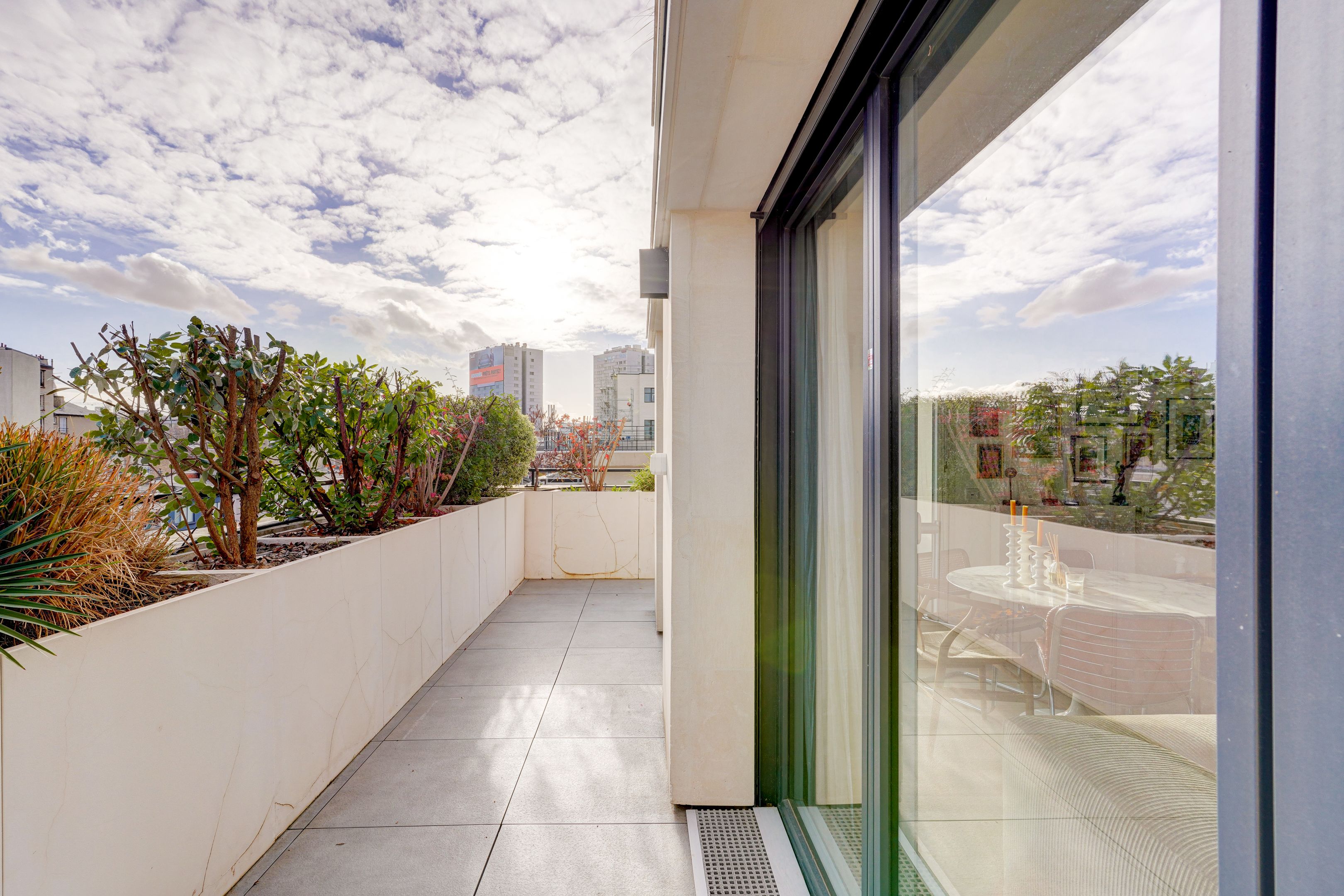 Village des Rosiers, au 4ème étage d'une résidence contemporaine dont les parties communes ont été décorées par Sarah Lavoine, cet appartement ensoleillé de 96 m², entièrement refait à neuf, offre un cadre de vie à la fois moderne et chaleureux. Entrée, séjour exposé au sud ouvrant sur une terrasse de 12 m² avec vue dégagée sur le Sacré-Cœur, cuisine ouverte entièrement aménagée et équipée, trois chambres de belle taille, dressing, deux salles de bains attenantes (douche et baignoire) au design soigné. Cave et parking sécurisé dans l'immeuble. Exclusivité Breteuil.
