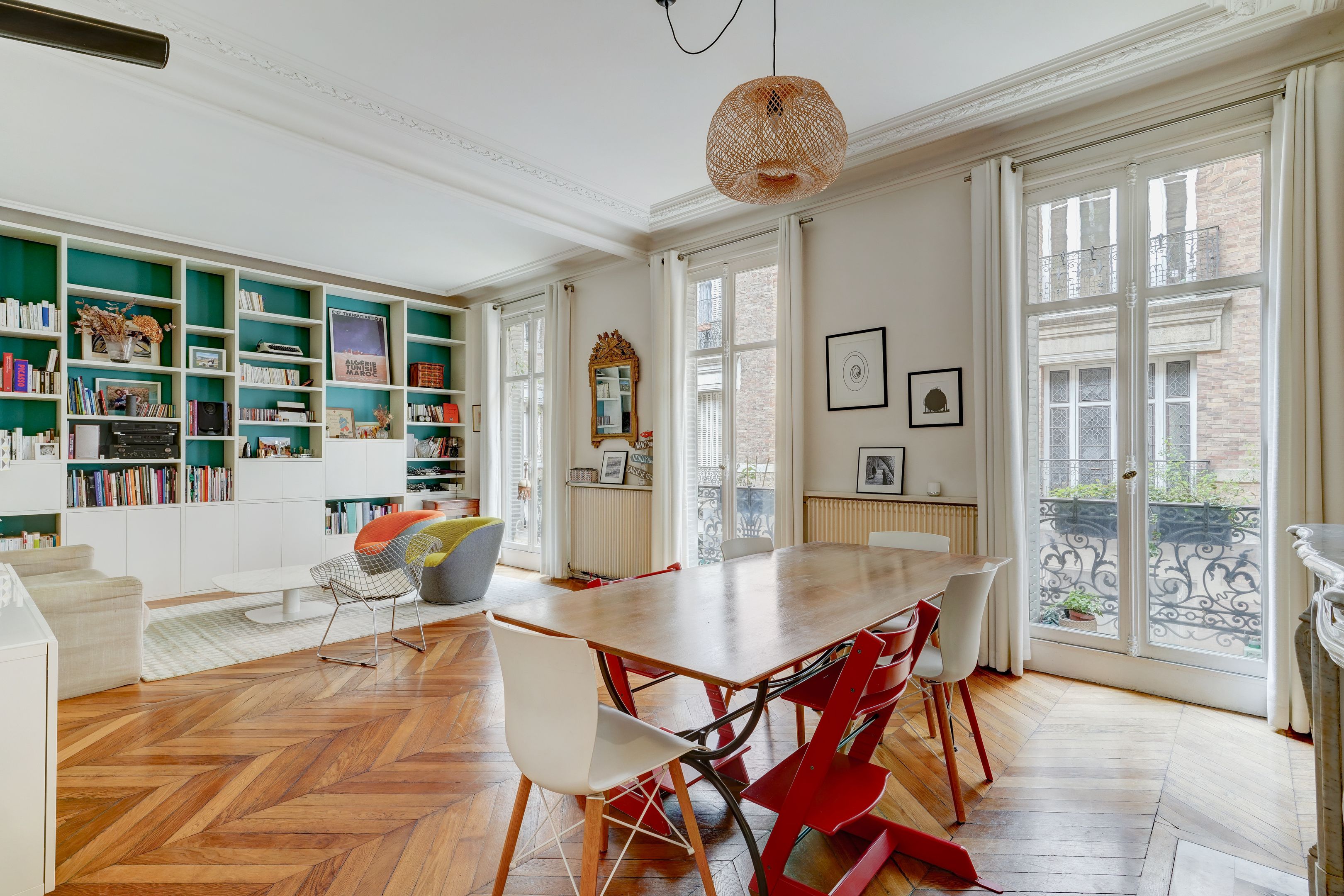 Bel immeuble en pierre de taille bénéficiant des services d'un gardien à demeure, idéalement situé à proximité immédiate du métro Villiers, du marché Lévis, des écoles de renom et du parc Monceau. Appartement au 2ème étage sur cour, d’une superficie de 103 m² Loi Carrez, de style « parquets, moulures et cheminées », bénéficiant d’une belle hauteur sous plafond et d’un plan sans perte d’espace. Entrée, double séjour, cuisine en vis-à-vis, 3 chambres, 2 espaces bains, toilettes. Cave. Exclusivité Breteuil.