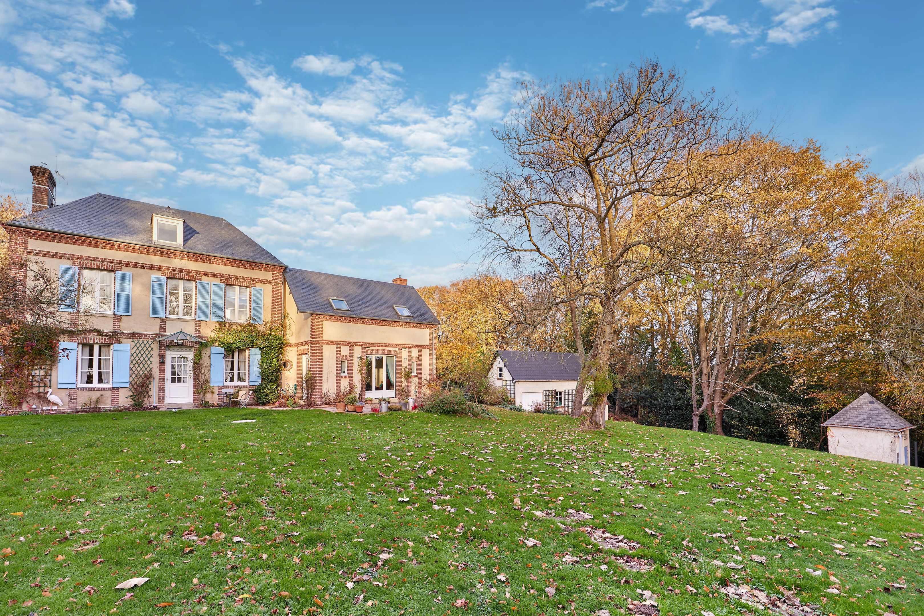 À 5 min de Honfleur, jolie maison de maître de 152 m² édifiée sur un terrain clos de 11 302 m² dont 5 000 m² de bois. Entrée, cuisine dinatoire entièrement équipée, salon avec insert à granulés ouvert sur la terrasse exposée sud-ouest, suite parentale avec salle d'eau, toilettes indépendantes. Au 1er étage : deux chambres, dressing, salle de bains, toilettes. Au 2ème étage : deux chambres. Espace de stockage accolé à la maison. En dépendance : atelier sur deux niveaux de 45 m² chacun avec cave en sous-sol et pigeonnier. Environ 2 000 m² de terrain constructible pouvant faire l'objet d'une division parcellaire pour deux lots.