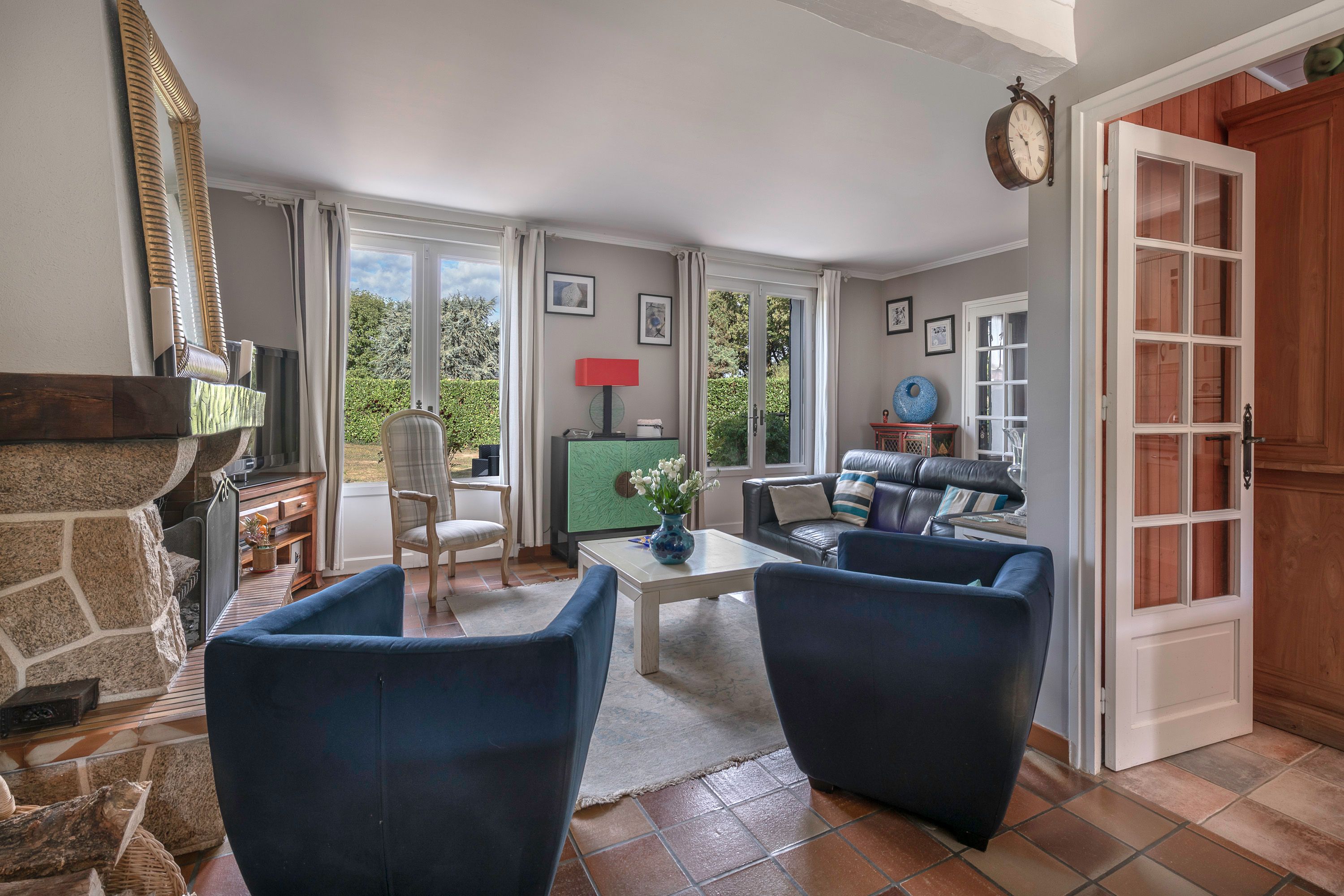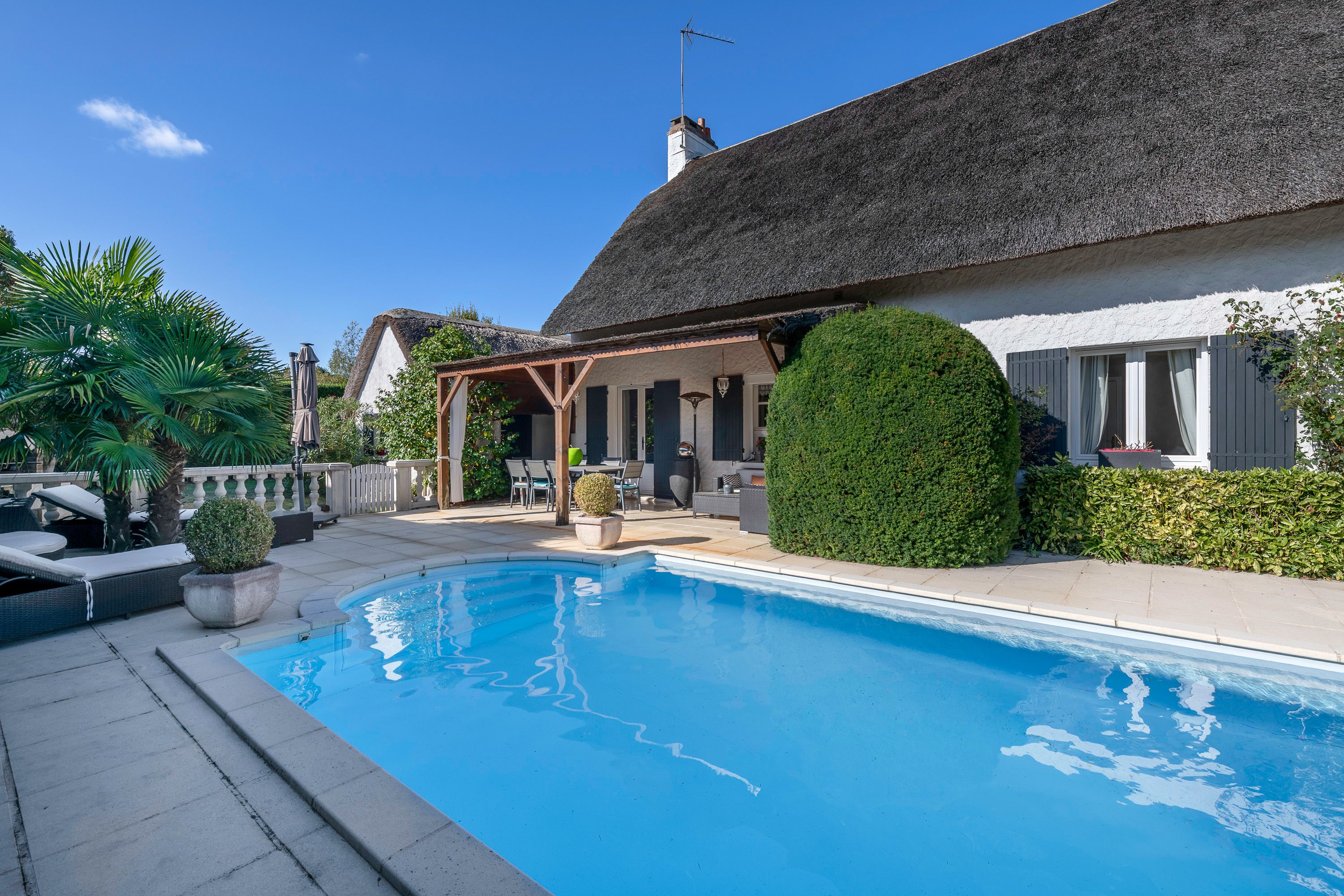 Située à 10minutes de La Baule (proche de La Madeleine), charmante chaumière d’environ 175m² au calme, sans vis-à-vis, édifiée sur une parcelle arborée d’environ 1 300 m² avec piscine 9x4m chauffée. Entrée, belle pièce de vie lumineuse (cheminée) s'ouvrant sur une grande terrasse couverte exposée ouest, cuisine indépendante aménagée et équipée, chambre parentale dotée de sa salle de bains (plus douche) et ses toilettes, seconde chambre (placards), salle de bains, toilettes séparées, buanderie. A l’étage : vaste mezzanine (bureau), 3 chambres dont une disposant de sa salle d'eau privative, dressing, salle d’eau et ses toilettes. Petite dépendance attenante à la maison.