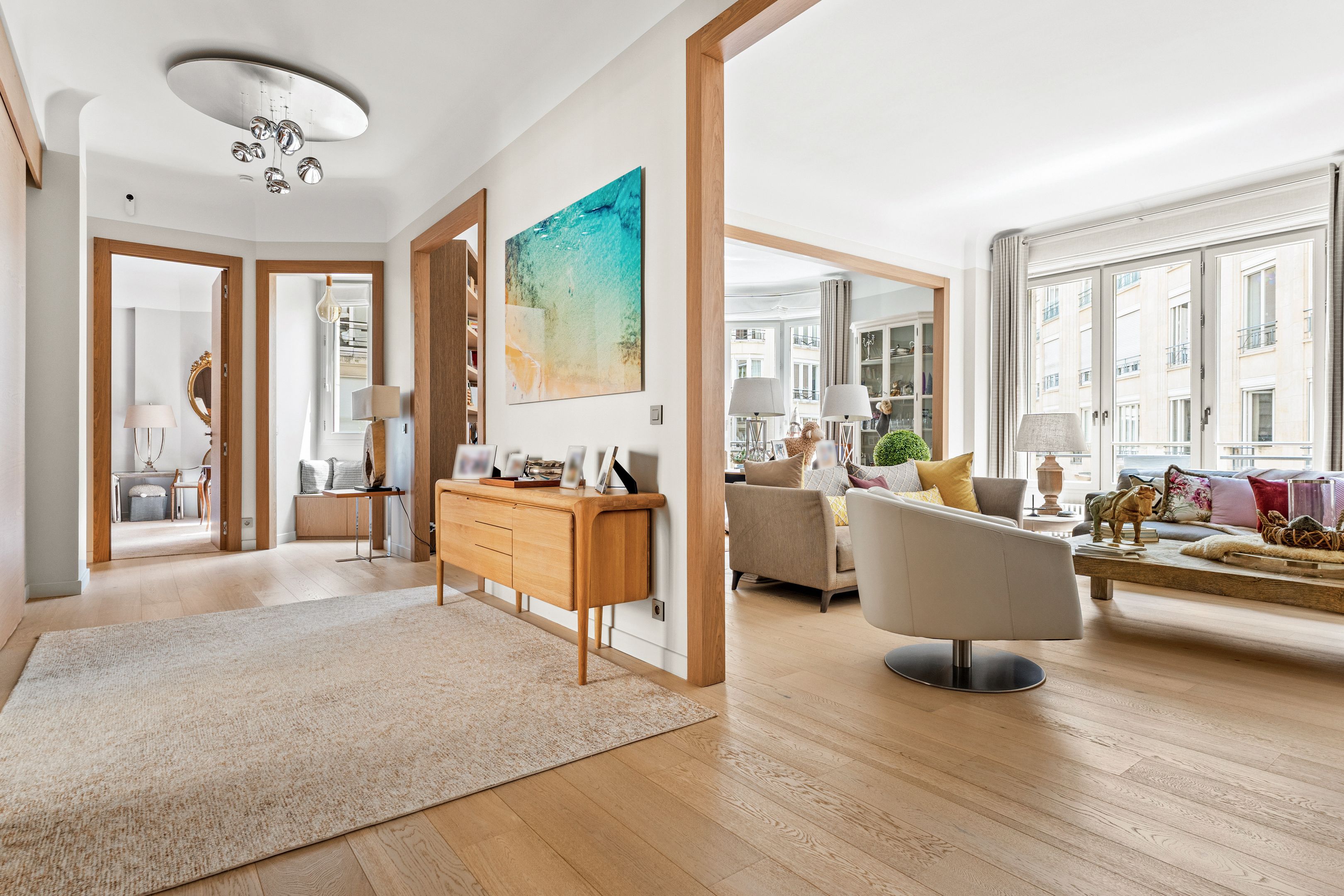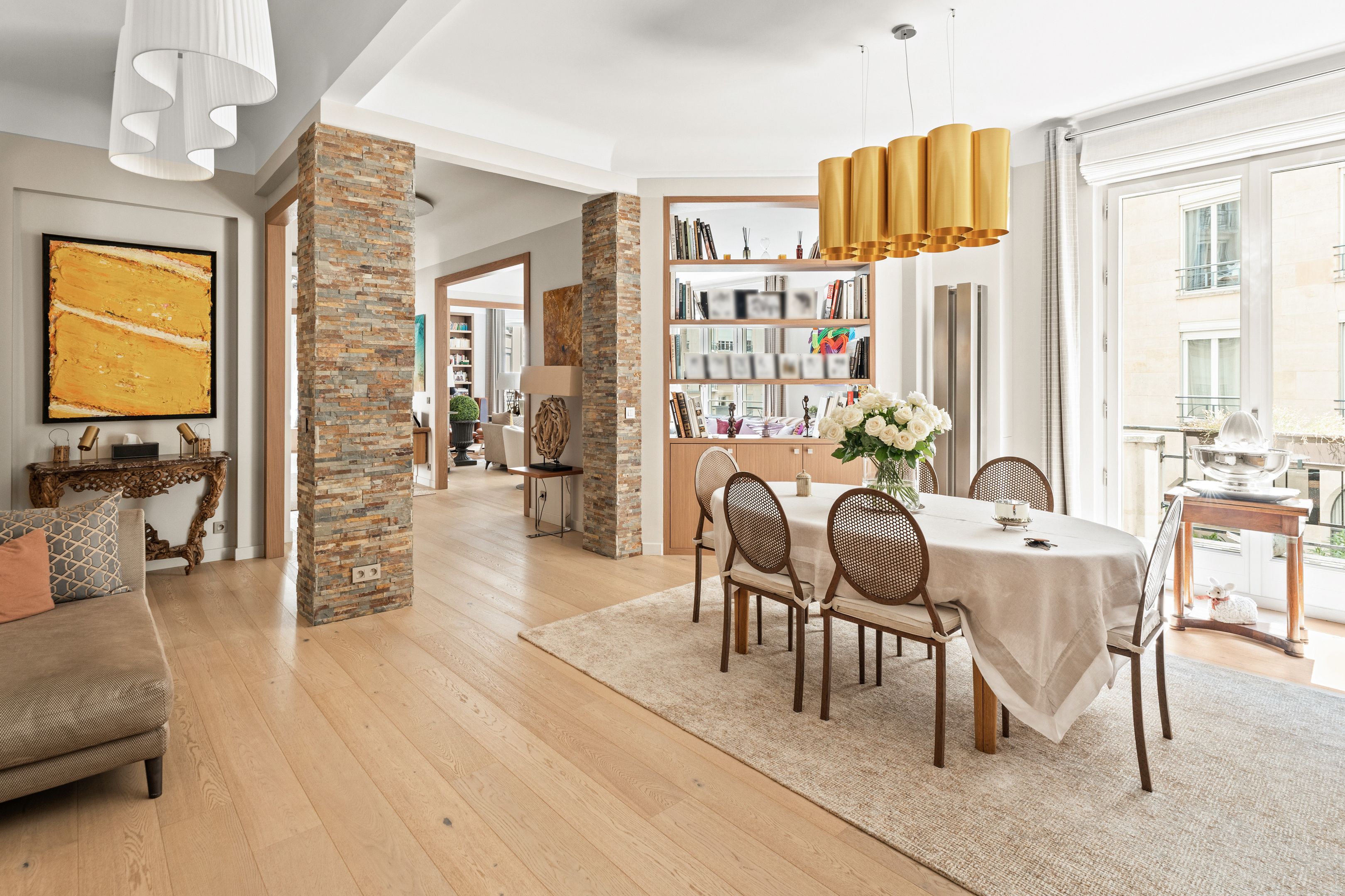Idéalement situé dans une voie privée à deux pas de la mairie du XVIème arrondissement, des commerces de la rue de la Pompe, des transports et des écoles de renom, immeuble pierre de taille des années 30 de grand standing, belles parties communes, au premier étage équivalant à un deuxième, appartement de 250m² entièrement rénové avec des matériaux de qualité, joliment décoré, doté de beaux volumes et d'une belle luminosité. Galerie d'entrée, triple réception orientée au sud-ouest, salle à manger, salon télé-bureau, cuisine entièrement aménagée et équipée avec espace dinatoire, suite parentale complète (dressing et salle de bains), deux chambres de belle taille, salle de bains, salle de douches avec toilettes, deux toilettes invités. Cave. Droit de stationnement dans la voie privée. Possibilité d'acquérir un emplacement de parking (70 000 €) . Exclusivité Breteuil.
