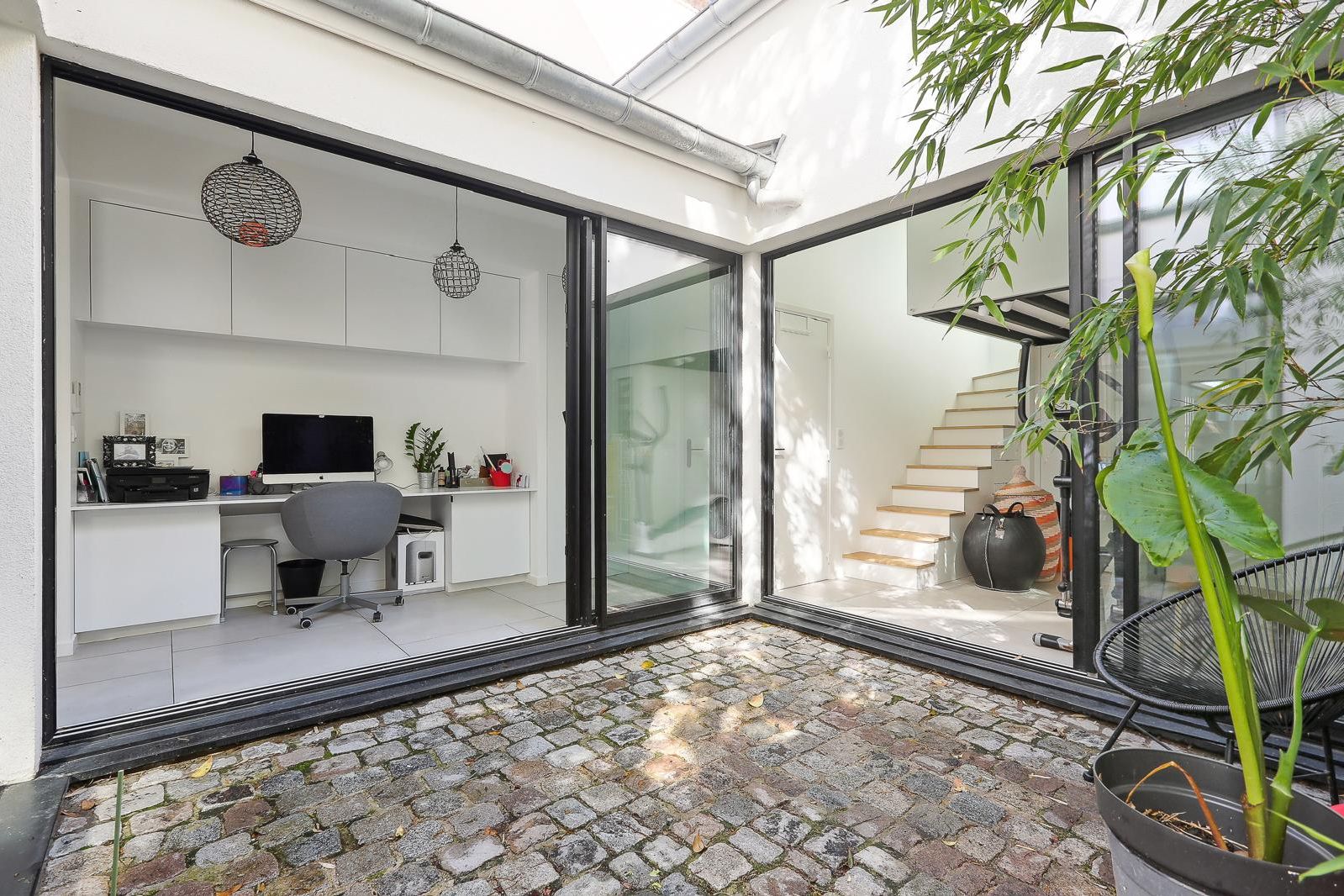 Inclus un duplex mitoyen d'environ 23m² pouvant être relié à la maison. Entrée, séjour, cuisine ouverte, salle d'eau, toilettes, chambre à l'étage.