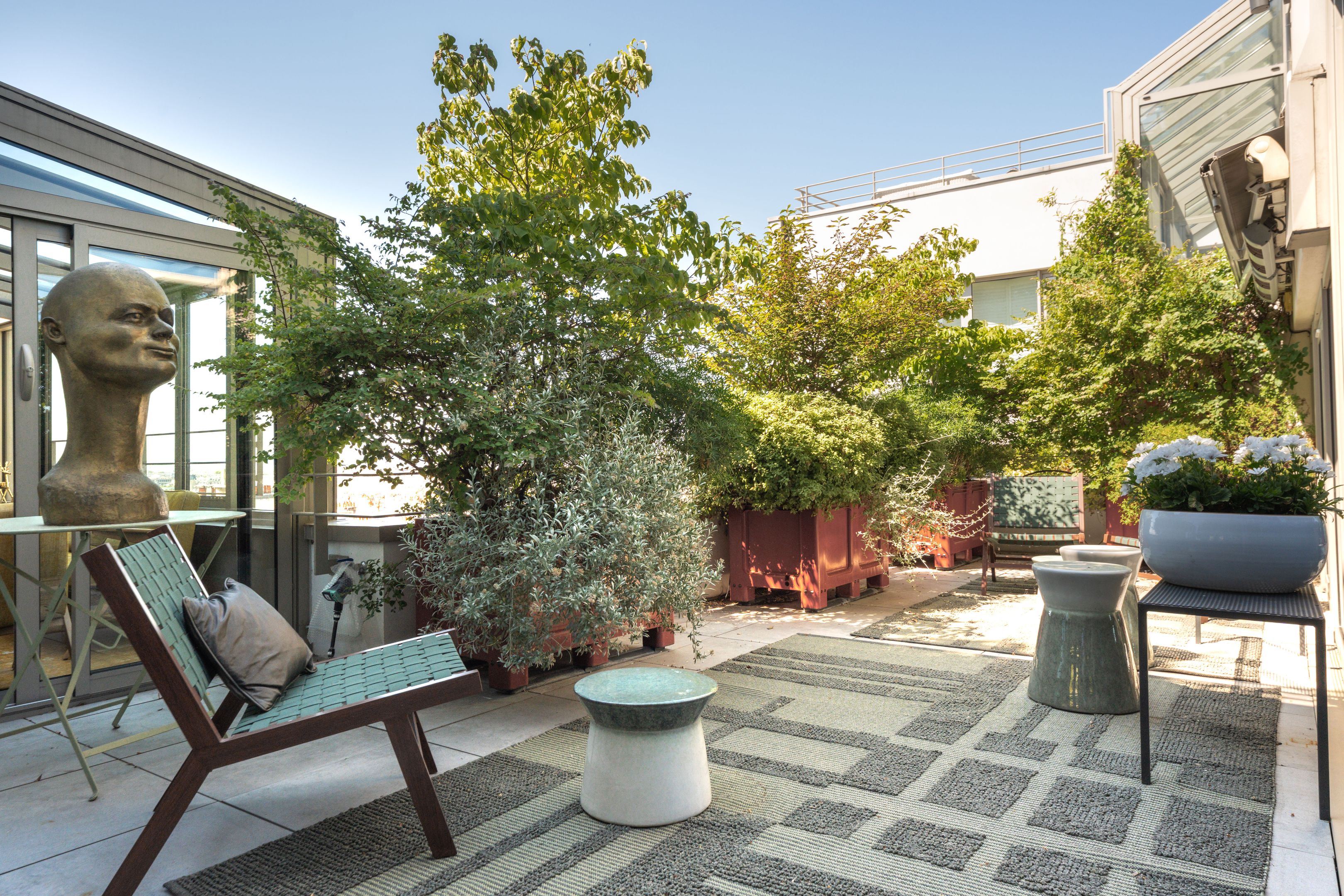 À l’étage, deux suites raffinées dont une master de 29 m² avec salle de bains, dressing et accès direct à un patio paysagé. Un escalier mène au toit-terrasse privatif : véritable jardin suspendu, idéal pour recevoir, se détendre ou simplement admirer Paris sous tous ses angles.