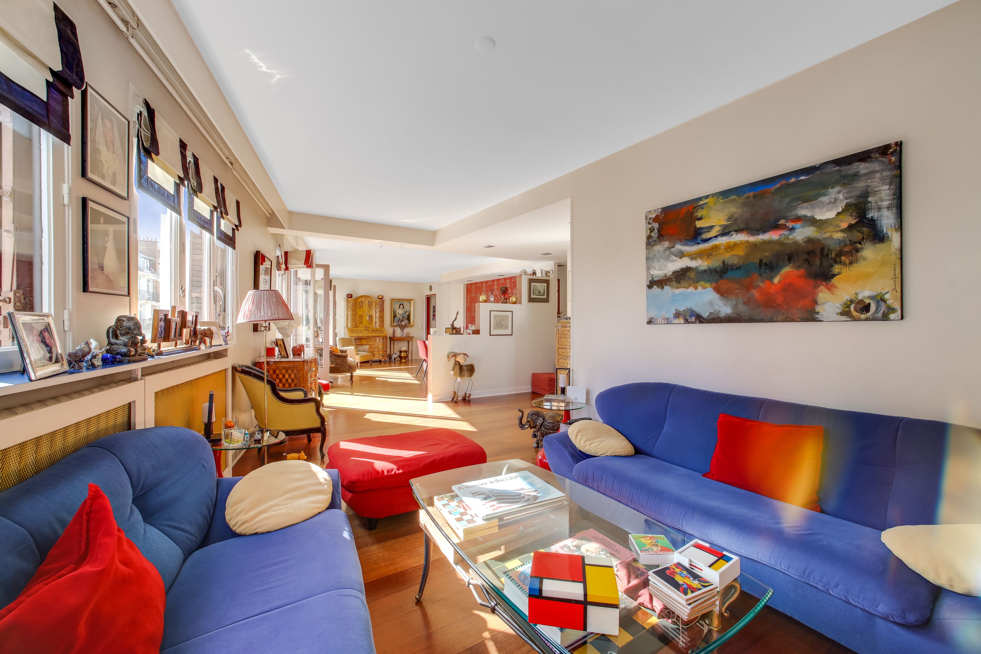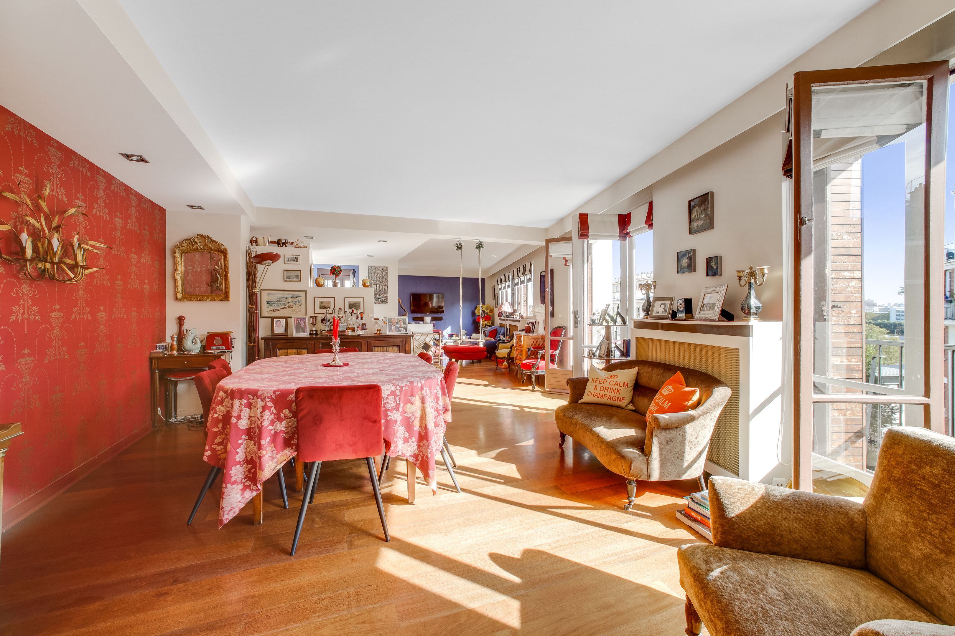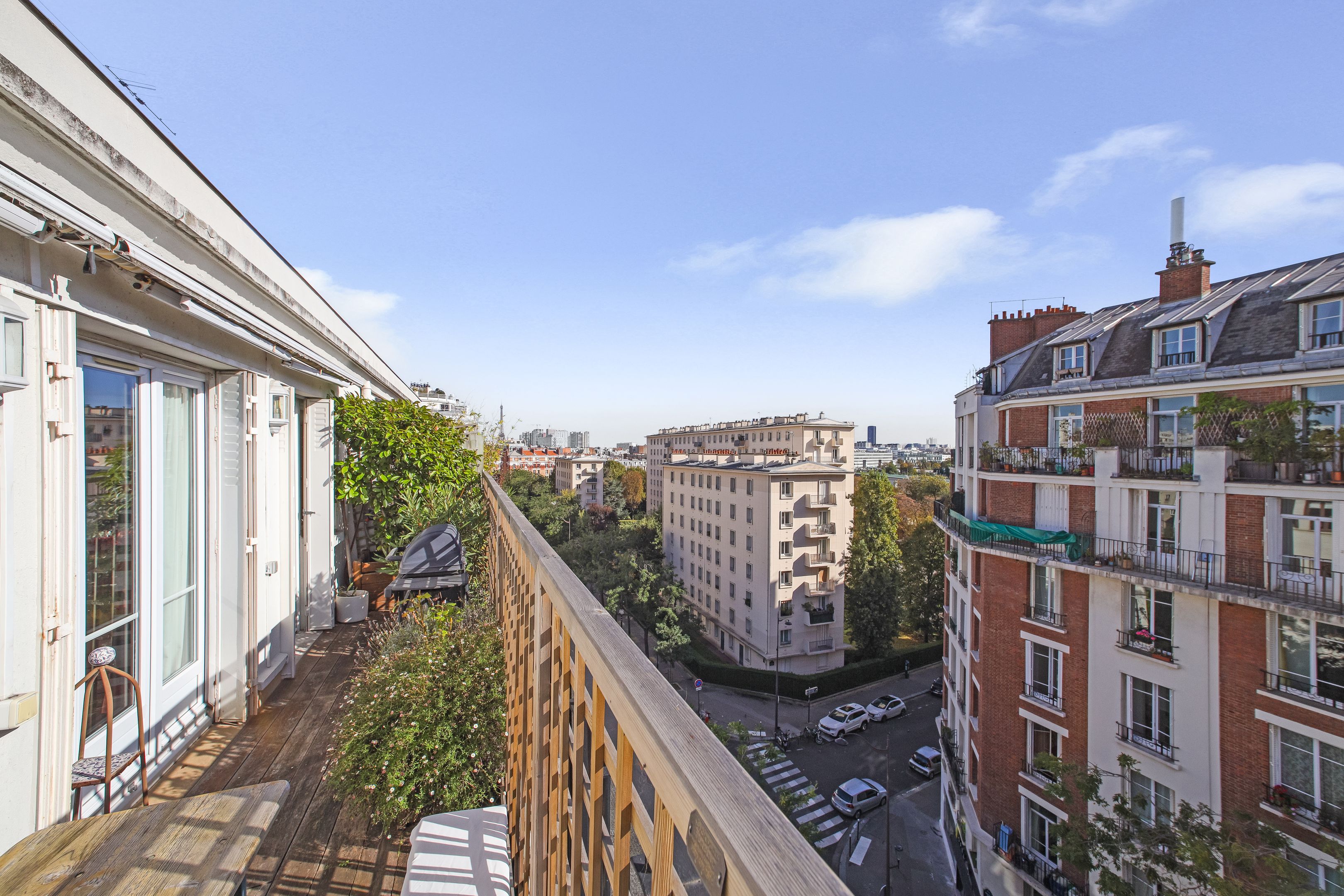 Auteuil sud. Immeuble récent de bon standing situé à proximité immédiate de toutes les commodités. Aux 6ème et 7ème étages, duplex familial de 207m² bénéficiant de beaux volumes et d'un bel ensoleillement grâce à ses vues dégagées et ses expositions aux sud-est et nord-ouest. Au premier niveau: entrée, vaste salon-salle à manger bordée de balcons, cuisine indépendante aménagée et équipée, 4 chambres dont 2 agrémentées de balcons et 2 d'une salle d'eau et d'une salle de bains, espace buanderie avec toilettes séparées, nombreux rangements, toilettes invités . Un bel escalier mène au second niveau : cuisine d'été aménagée et équipée dotée d'une terrasse de 15m², suite parentale, dressing, salle de bains avec baignoire, douche et toilettes. Deux caves en sous-sol. Possibilité de louer trois parking dans un immeuble voisin.