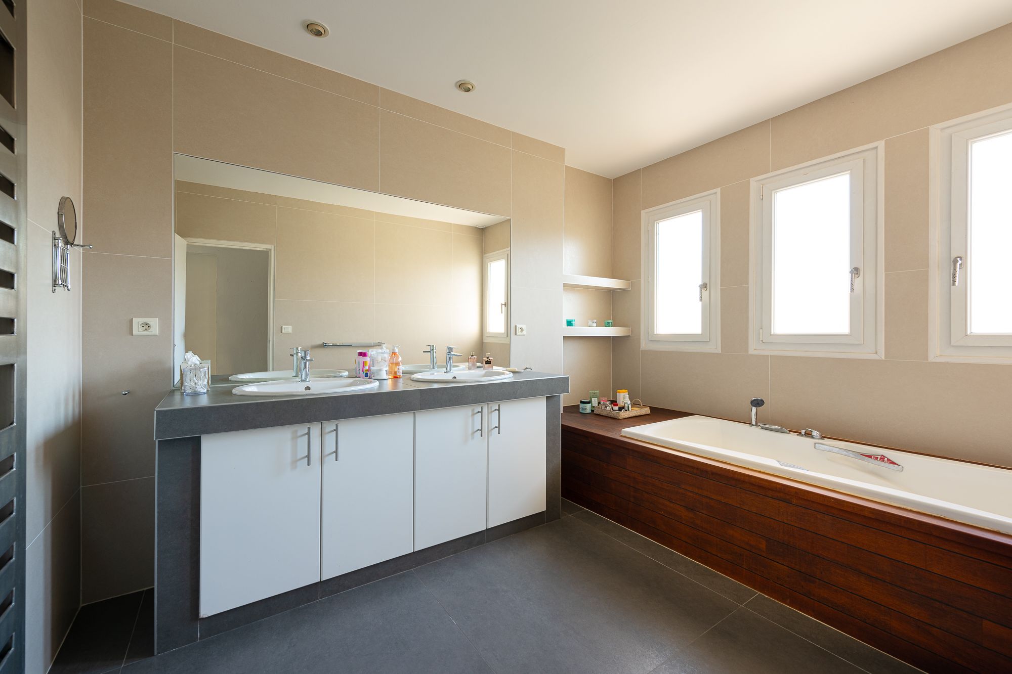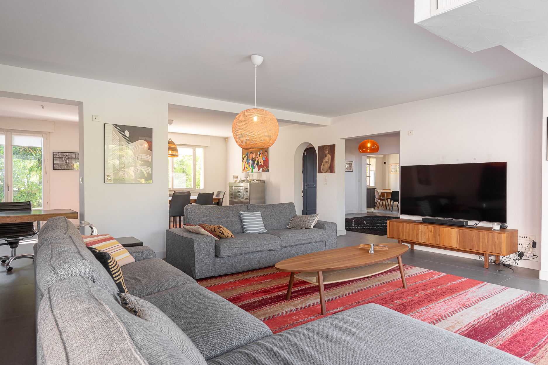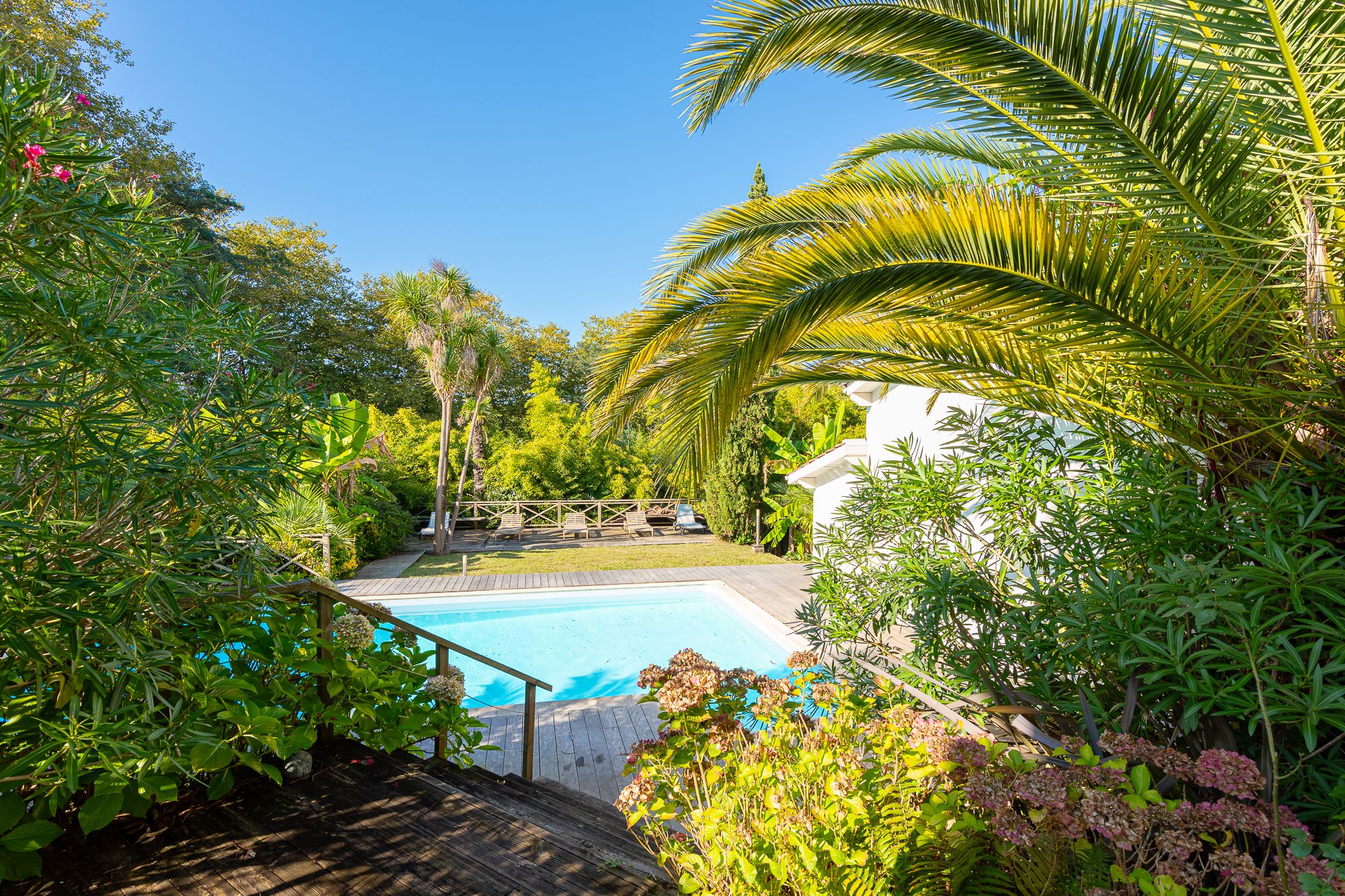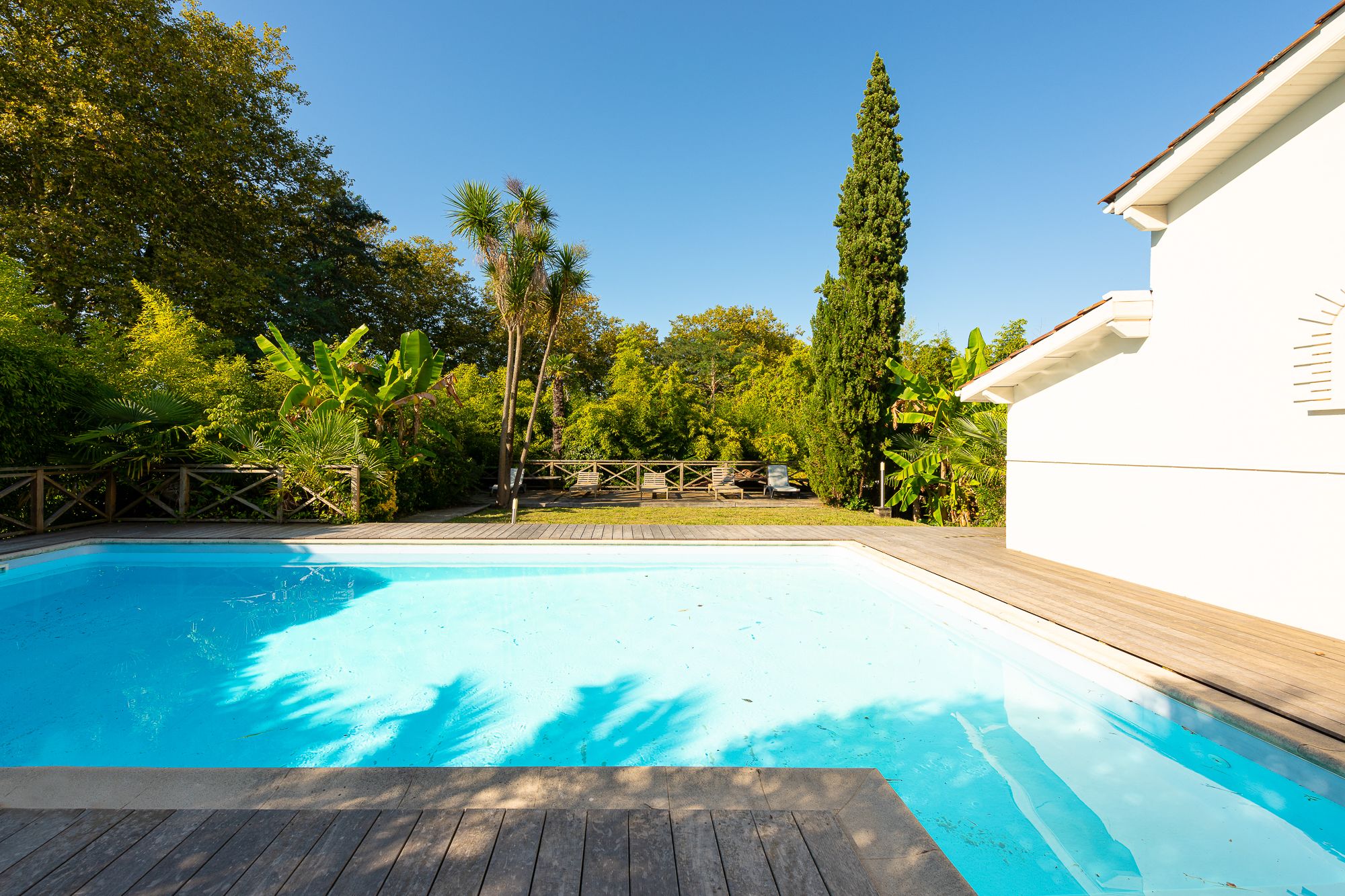 Nichée dans un quartier résidentiel, sur une parcelle de +1000 m² au sein d'un environnement verdoyant, à l'abri des regards, tout en étant à proximité des transports, spacieuse et lumineuse villa de 280 m² disposant d'une grande piscine. Belle entrée, séjour double offrant une vue surplombant la piscine et le jardin grâce à son bow window, grande cuisine équipée, suite parentale en rez de jardin avec sauna, salle de bains et dressing attenants. A l'étage : 4 chambres dont une seconde suite parentale (salle d'eau et dressing), 2 chambres avec salle d'eau et salle de bains. Cuisine d'été, buanderie, cave à vin, garage double fermé et parking extérieur pour plusieurs voitures.