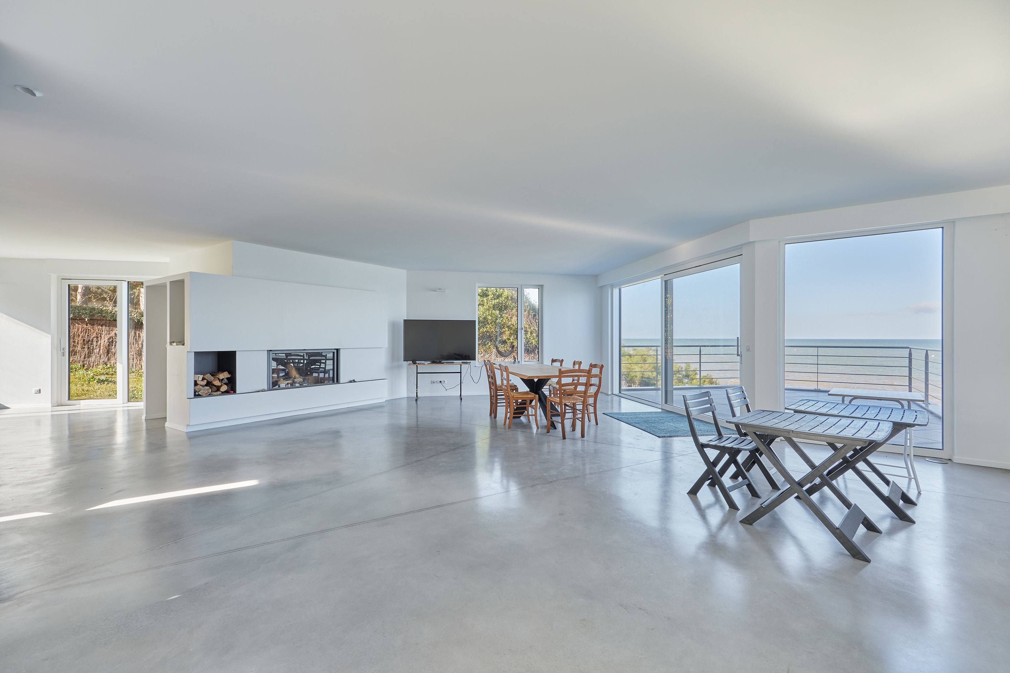 Emplacement exceptionnel en 1re ligne avec accès direct plage, à 400m des commerces de Blonville-sur-Mer, magnifique propriété contemporaine. Au rez-de-chaussée : spacieuse pièce à vivre avec insert ouverte sur une terrasse face mer, toilettes invités. Au 1er étage : une chambre avec vue mer, salle d'eau et toilettes. En souplex : large suite parentale avec balcon vue mer, dressing, salle de bains et toilettes, deux chambres, salle de bains, toilettes séparées.