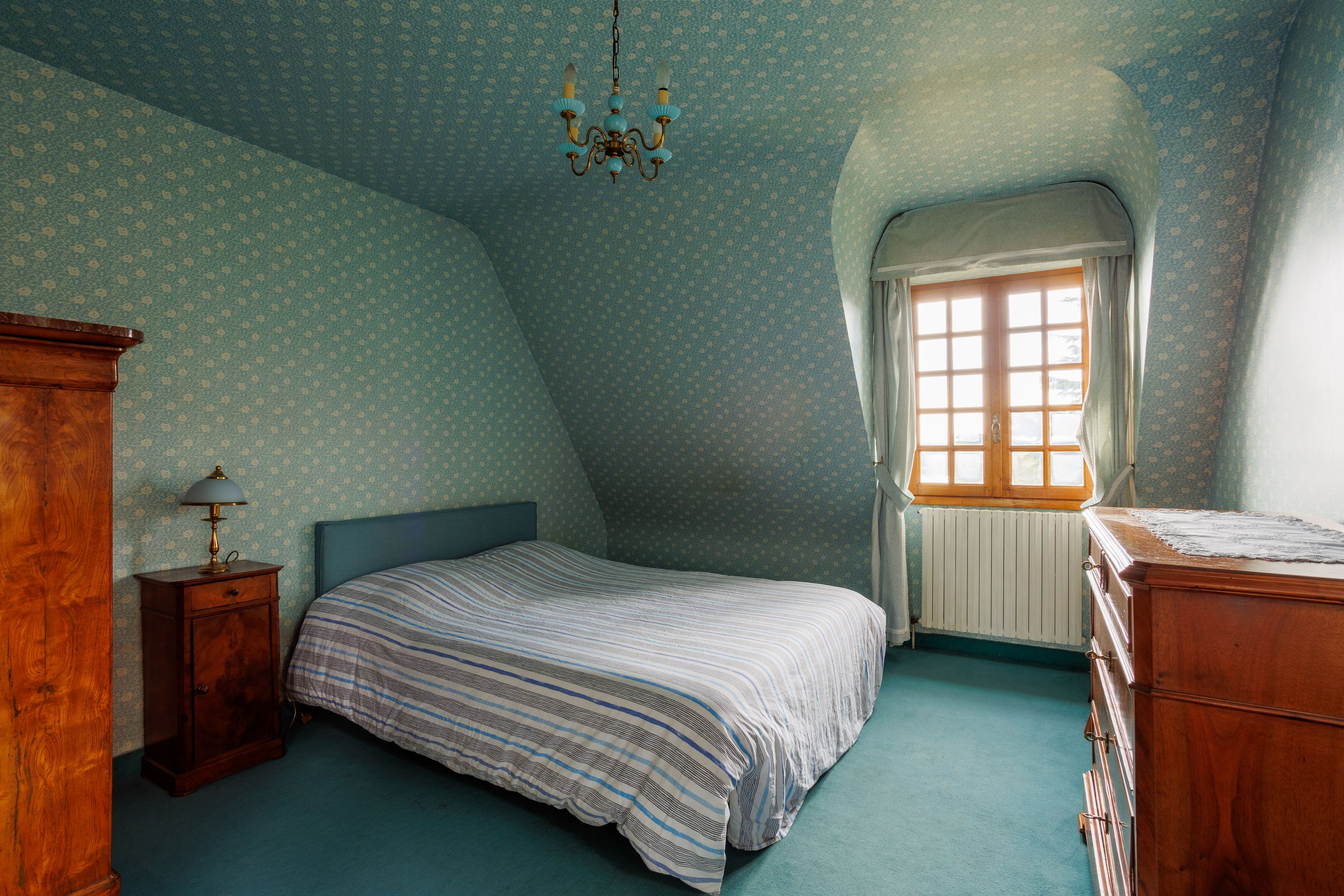 À l'étage : trois chambres de belle taille, bureau, salle de bains et toilettes séparées.