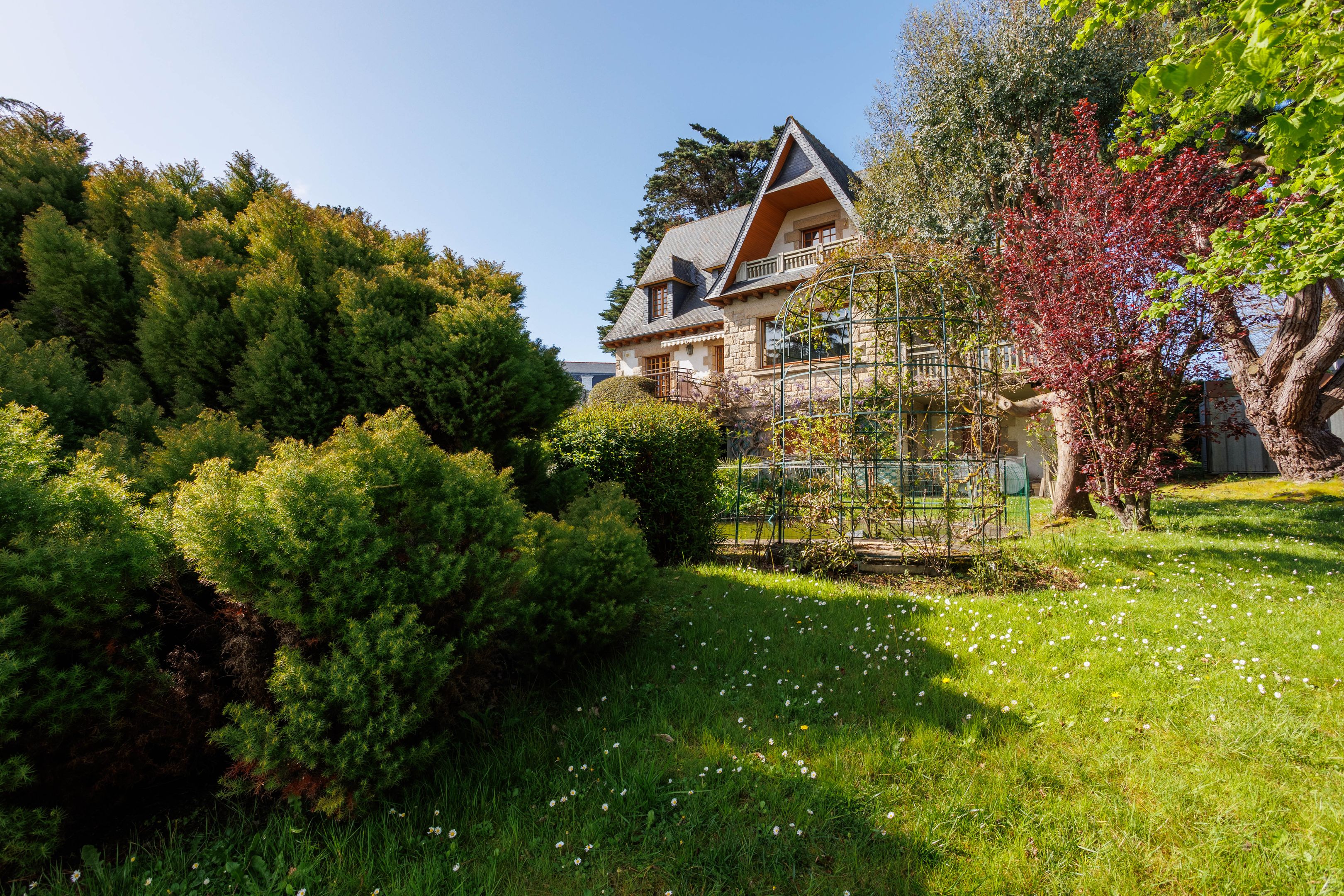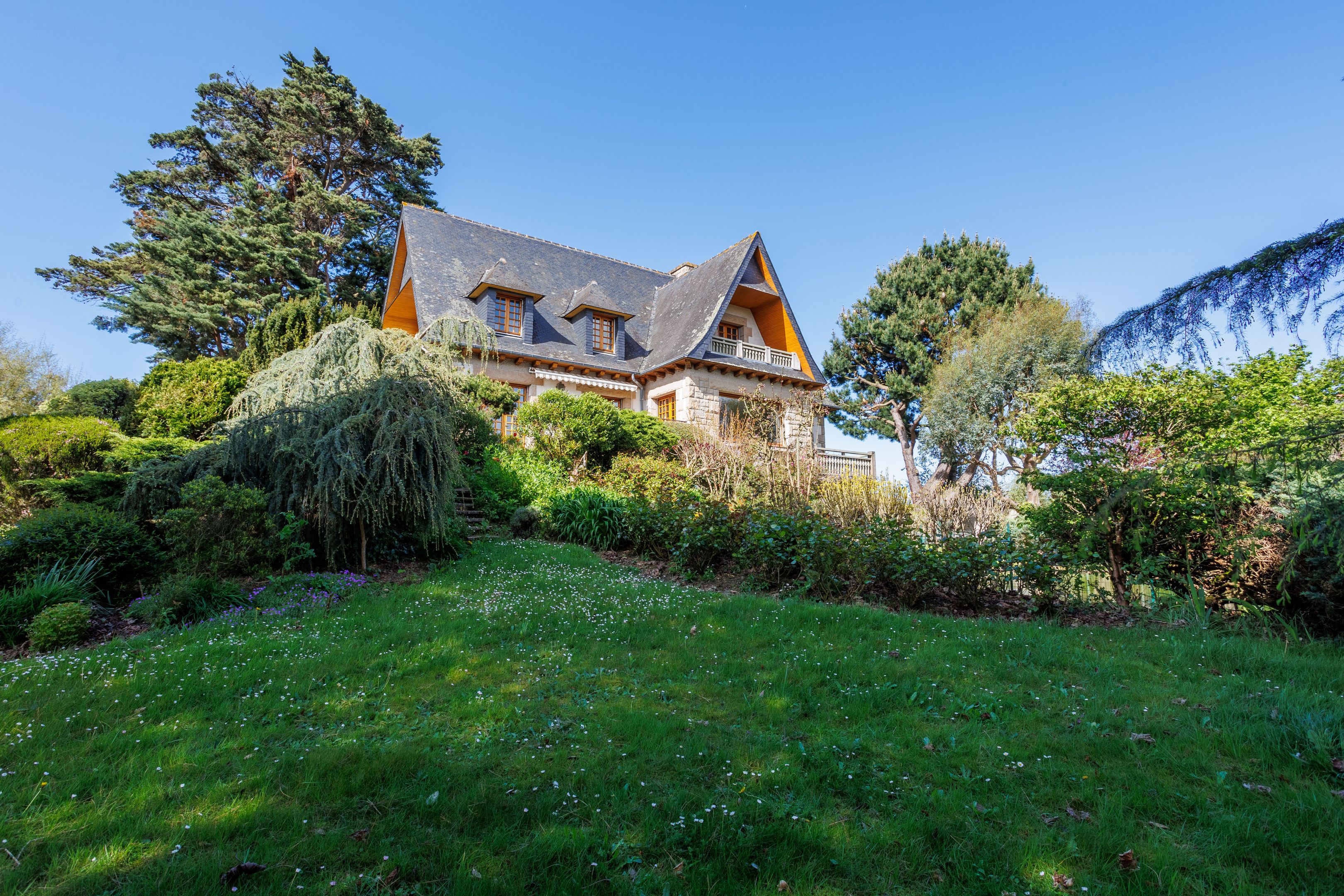 Belle propriété située à l'entrée de Dinard, orientée sud et ouvrant sur la Rance et sur un magnifique jardin clos et arboré de 2600m².