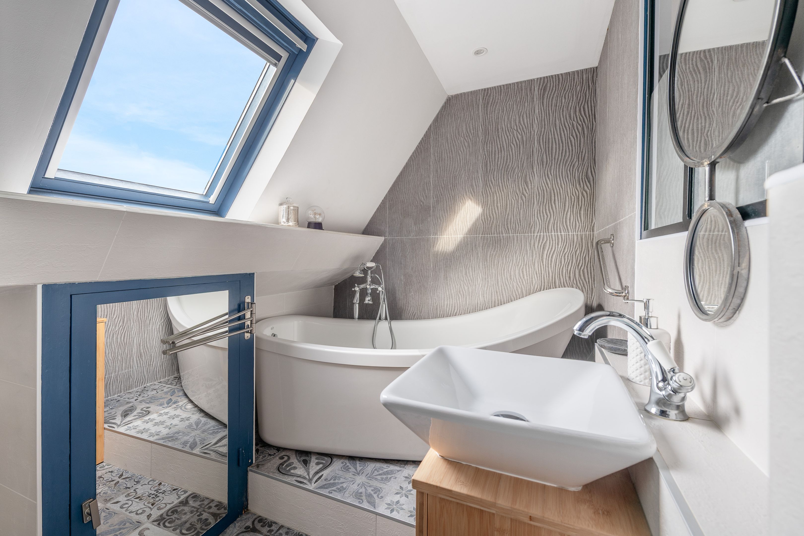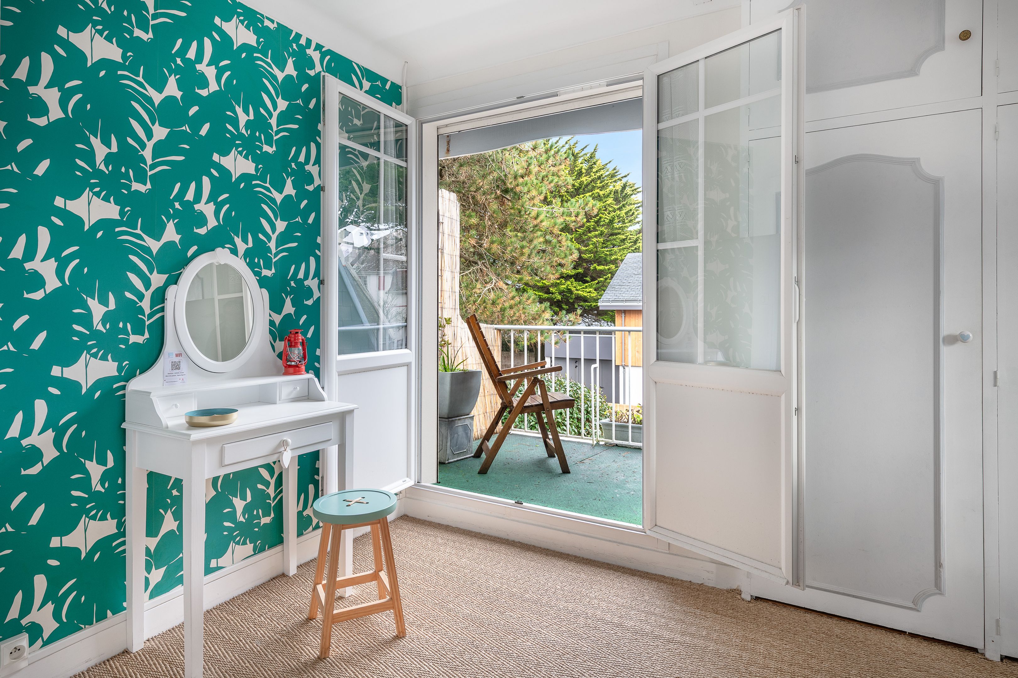 À l’étage, l’espace nuit se compose de deux belles chambres avec balcons offrant une vue mer, chacune bénéficiant de placards. La première dispose d’une salle de bains et de toilettes, la seconde d’une salle d’eau et de toilettes.