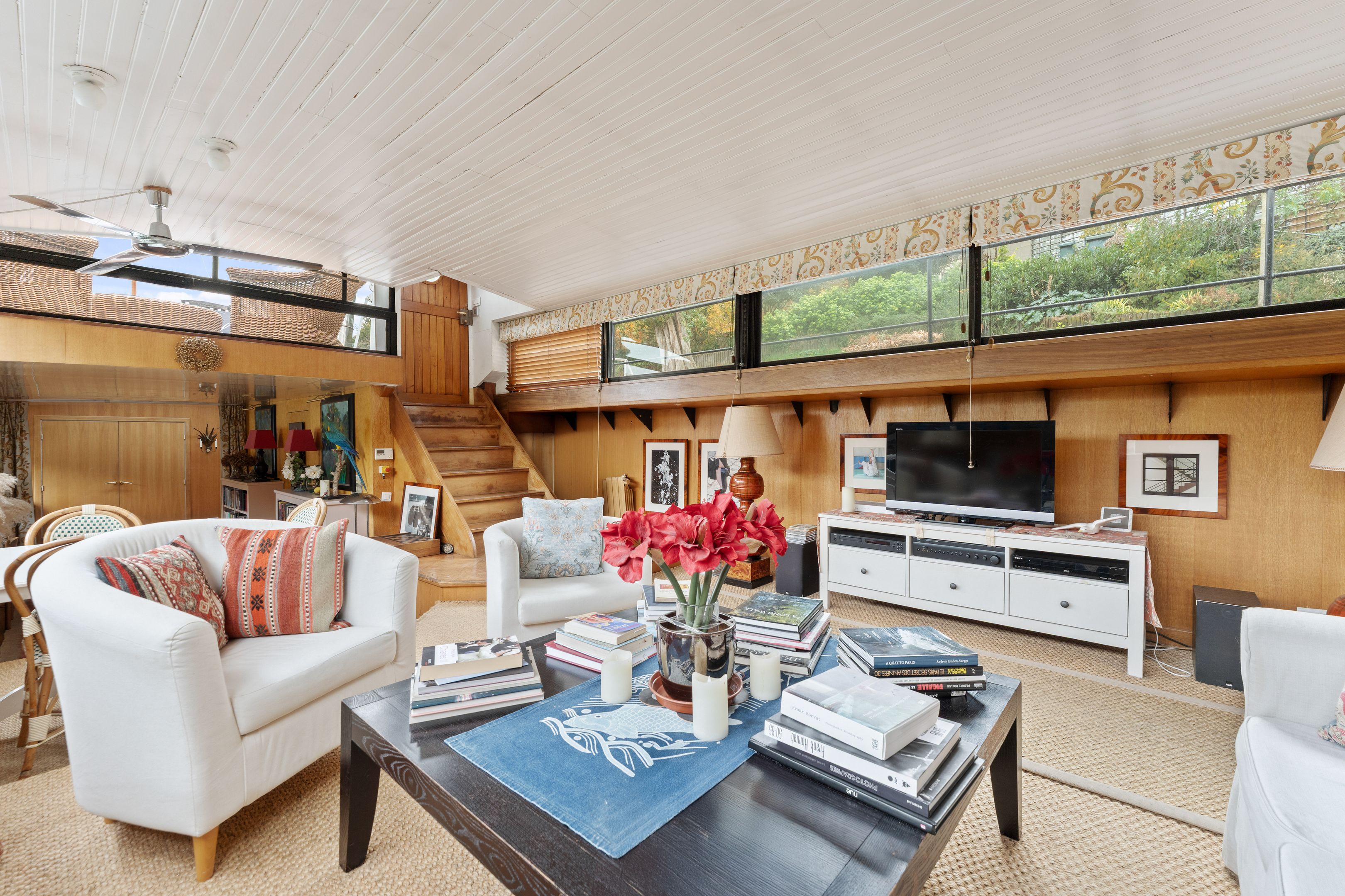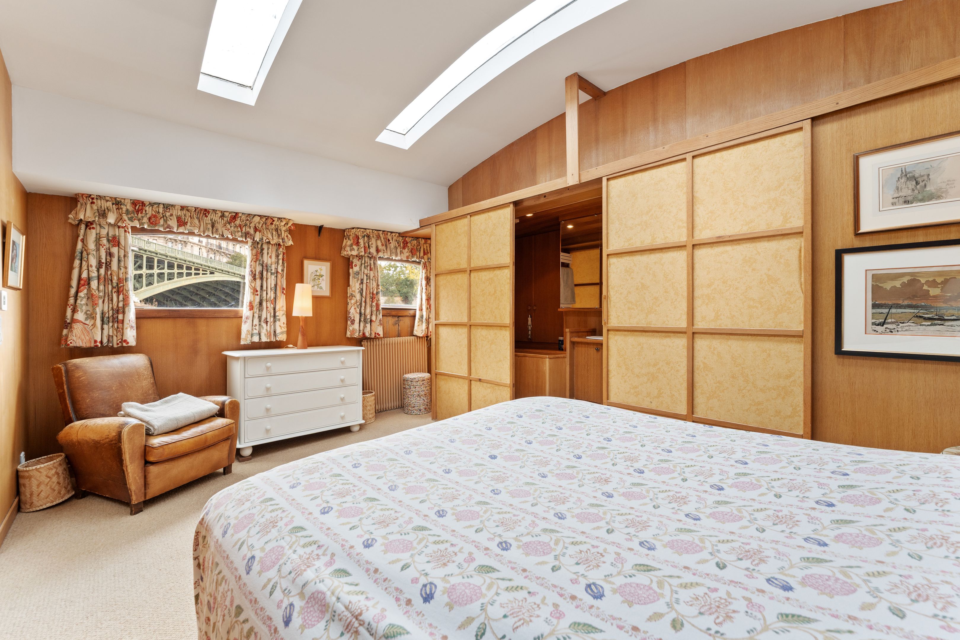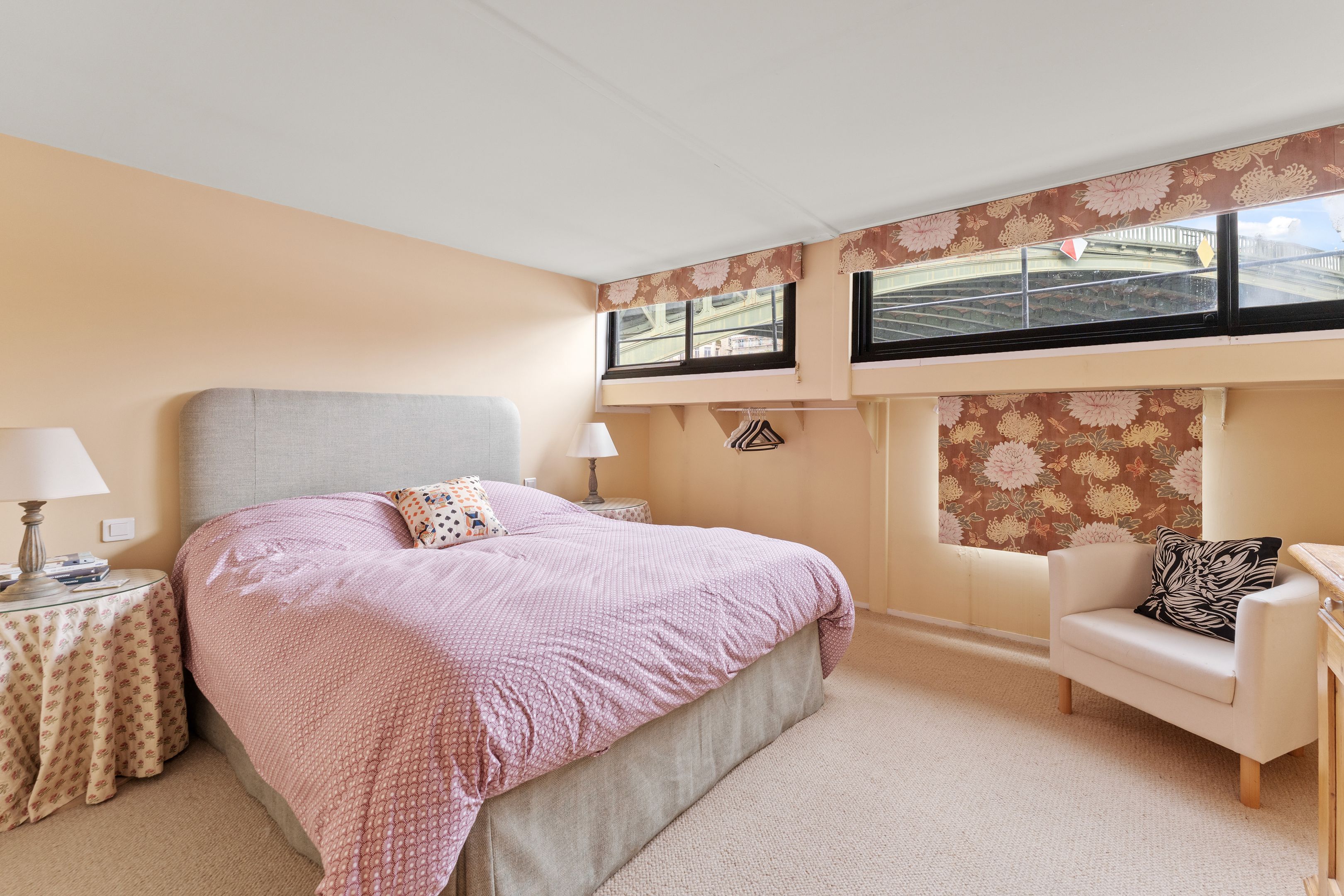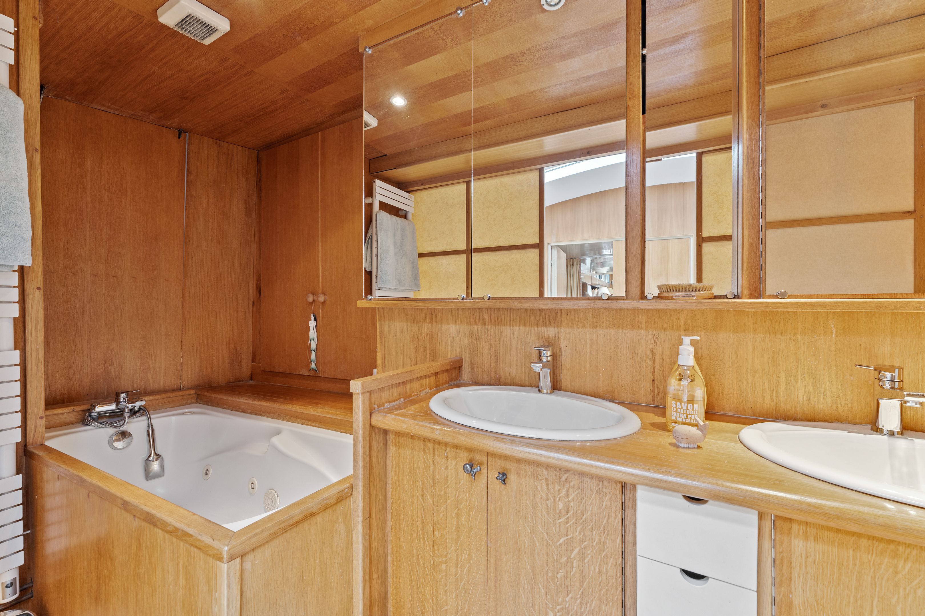 Magnifique péniche (Freycinet) d'une surface de 210m2, une terrasse de 40m2, ouverte sur la seine avec des vues sur l'île de la Cité et l'île Saint Louis : grande pièce de vie spacieuse, traversante, avec un coin salon, salle à manger, espace bureau, cuisine toute aménagée, suite parentale avec salle de bains et dressing, 2 chambres avec chacune sa salle de bains et toilettes, sauna, une 4ème chambre, cabine de pilotage pouvant être aménagé en studio totalement indépendant (sur 2 niveaux).