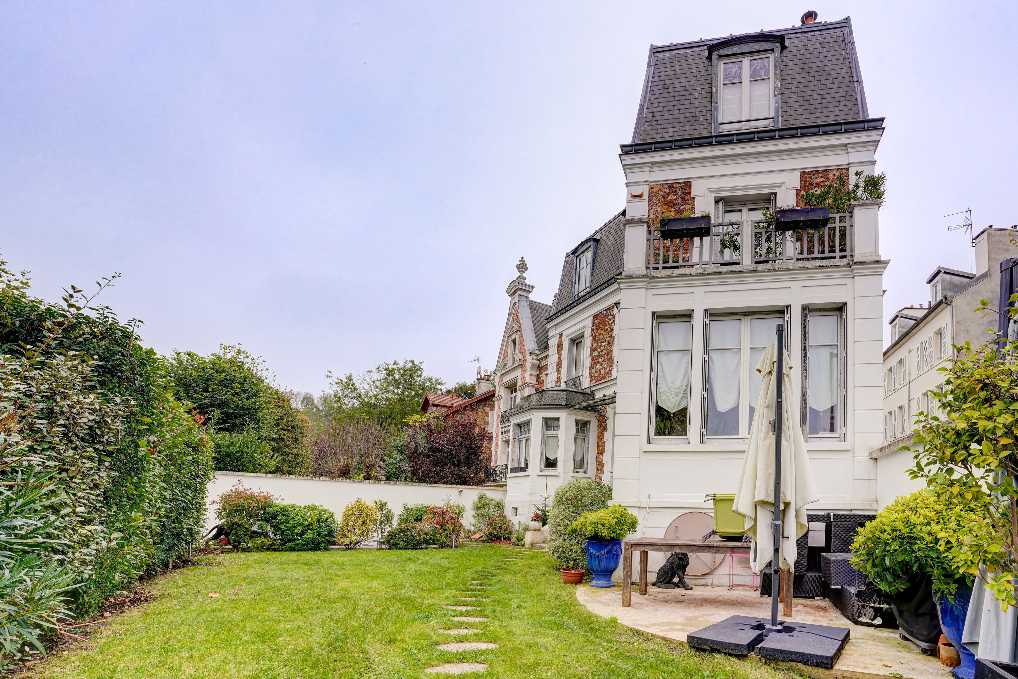 À proximité du parc de Saint-Cloud, de la manufacture de Sèvres et de Boulogne, élégante maison Mansard de la fin du XIXe siècle, non mitoyenne et entièrement rénovée, avec terrasse et jardin à l’abri des regards, dans un environnement calme et résidentiel, aux vues dégagées. D'une surface habitable de 185 m² (247 m² au sol), elle se déploie : au rez-de-chaussée, un espace de réception de 80 m² avec cuisine équipée ouverte donnant sur une terrasse.