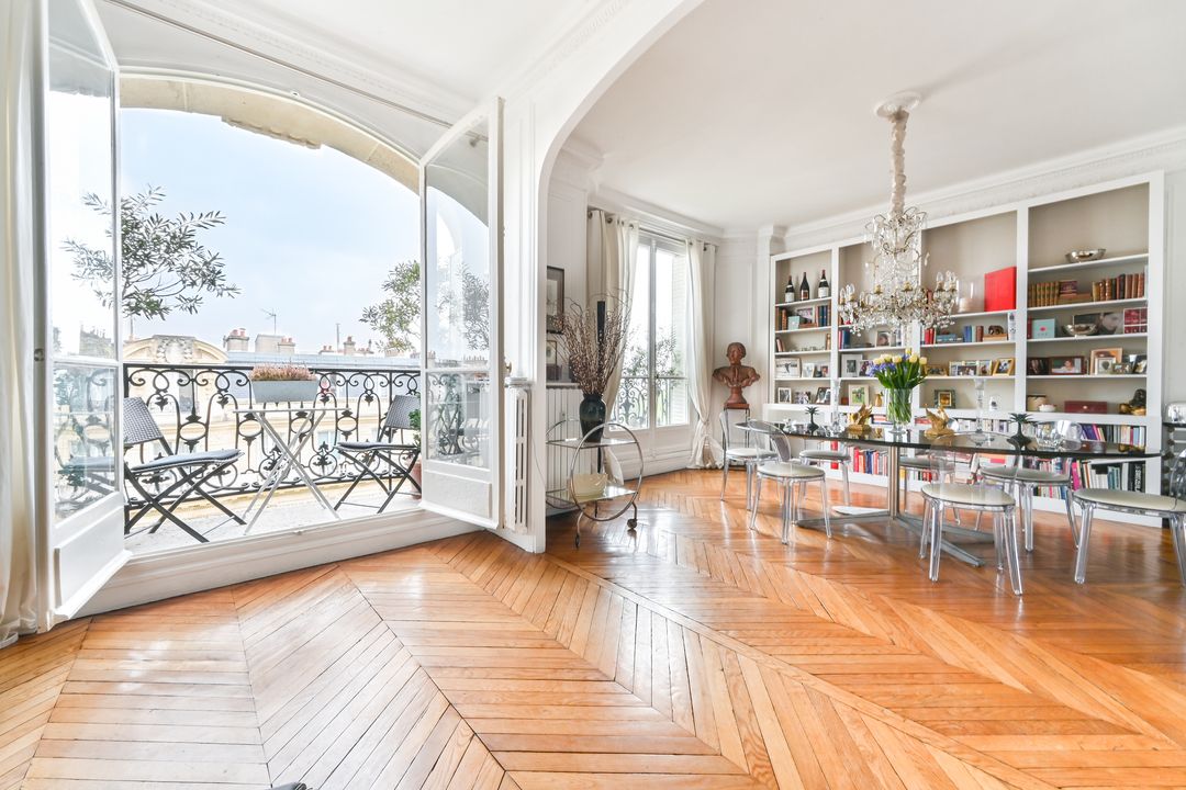 Immeuble en pierre de taille avec ascenseur et gardien, appartement non meublé de 260 m² au 1er étage.