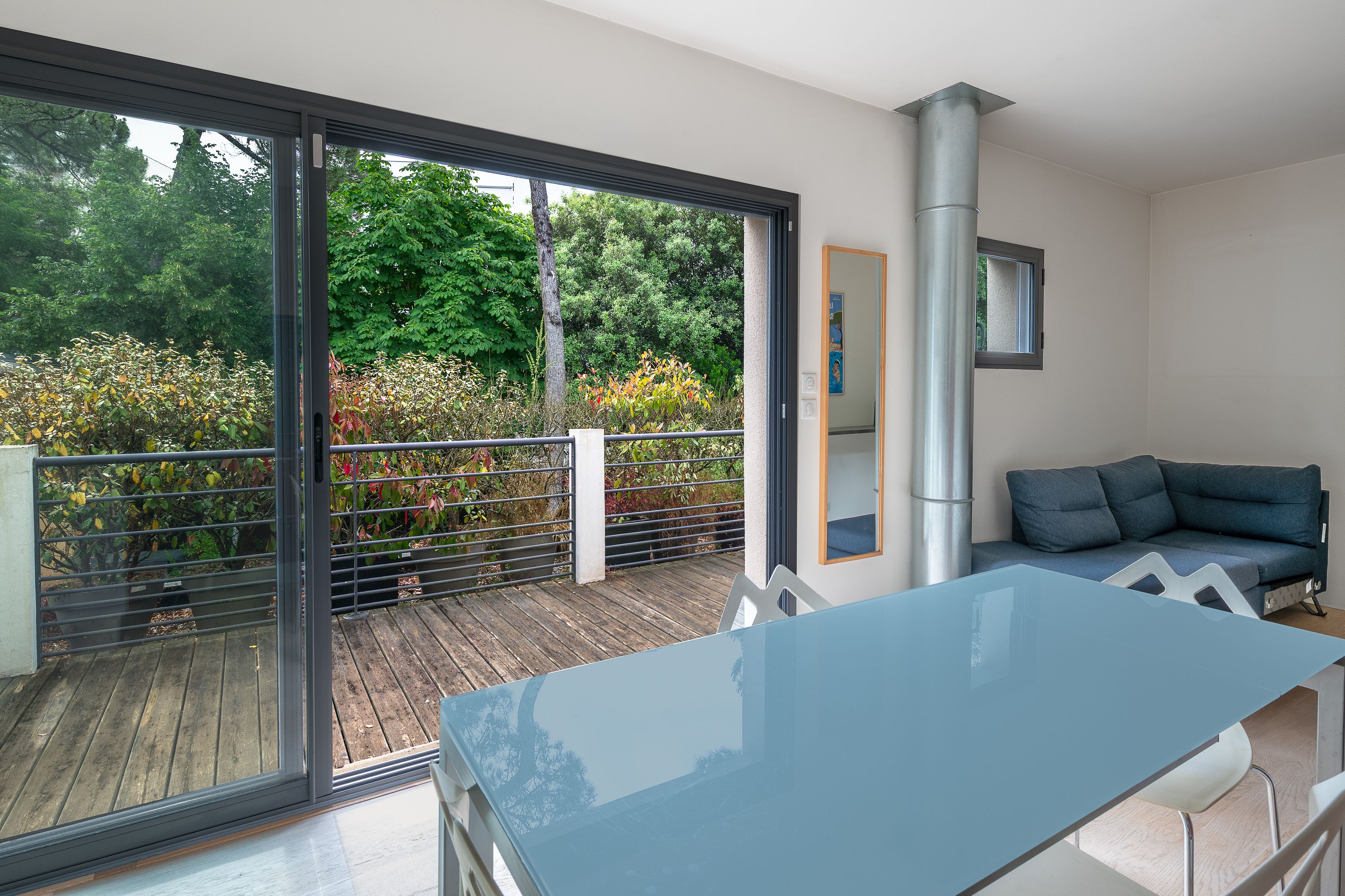 À proximité immédiate de l'avenue Lajarrige et à quelques minutes à pied de la plage, belle villa contemporaine de 2011 au calme édifiée sur une parcelle de 680m² (piscine envisageable). Au rez de chaussée : entrée, salon doté d'une cheminée donnant sur deux terrasses dotées de pergolas bioclimatiques,