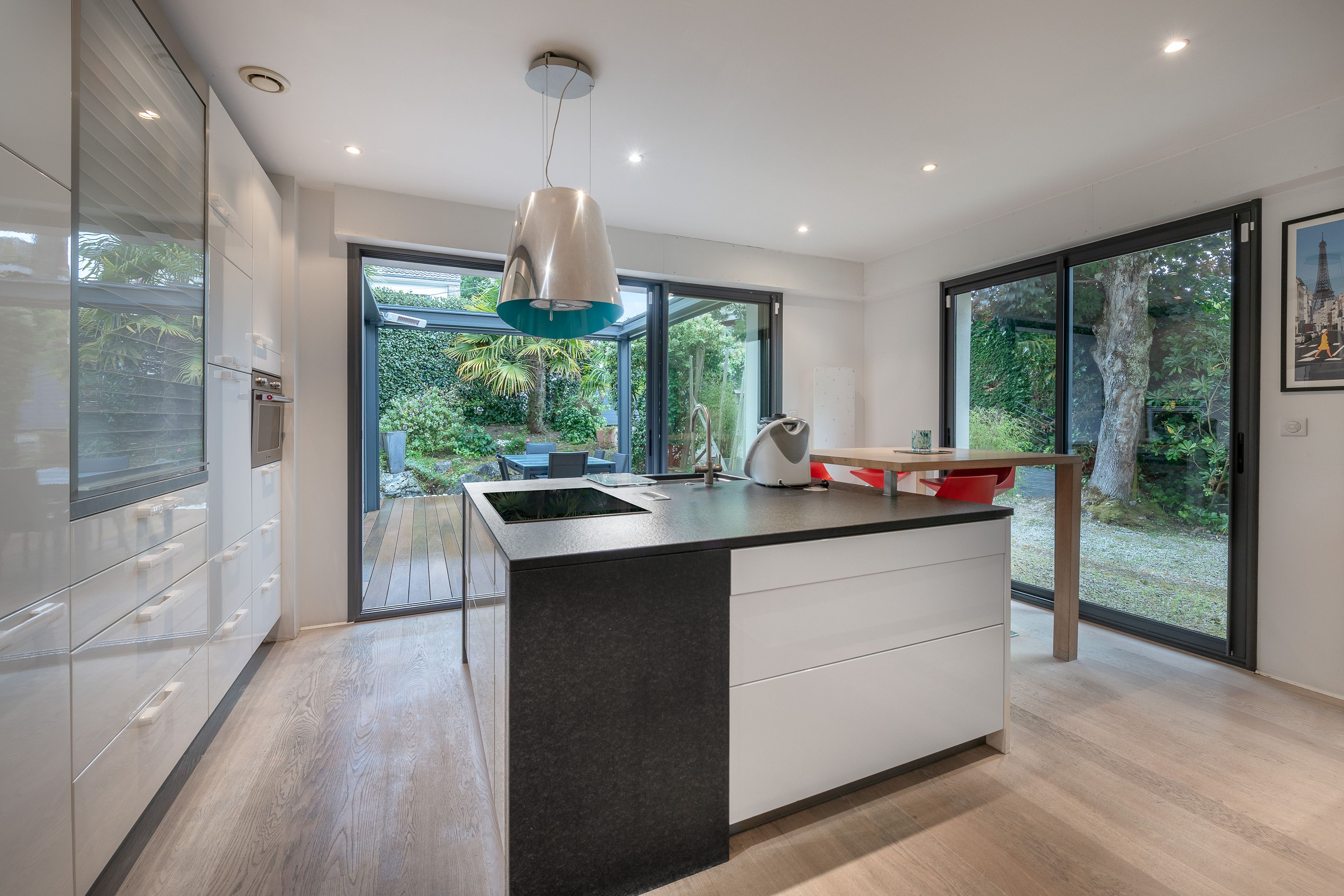 vaste cuisine dinatoire, arrière cuisine, suite parentale, bureau, toilettes À l'étage : trois chambres avec placards, salle de bains, espace cuisine ouvrant sur une terrasse, lingerie, toilettes séparées. Garage.