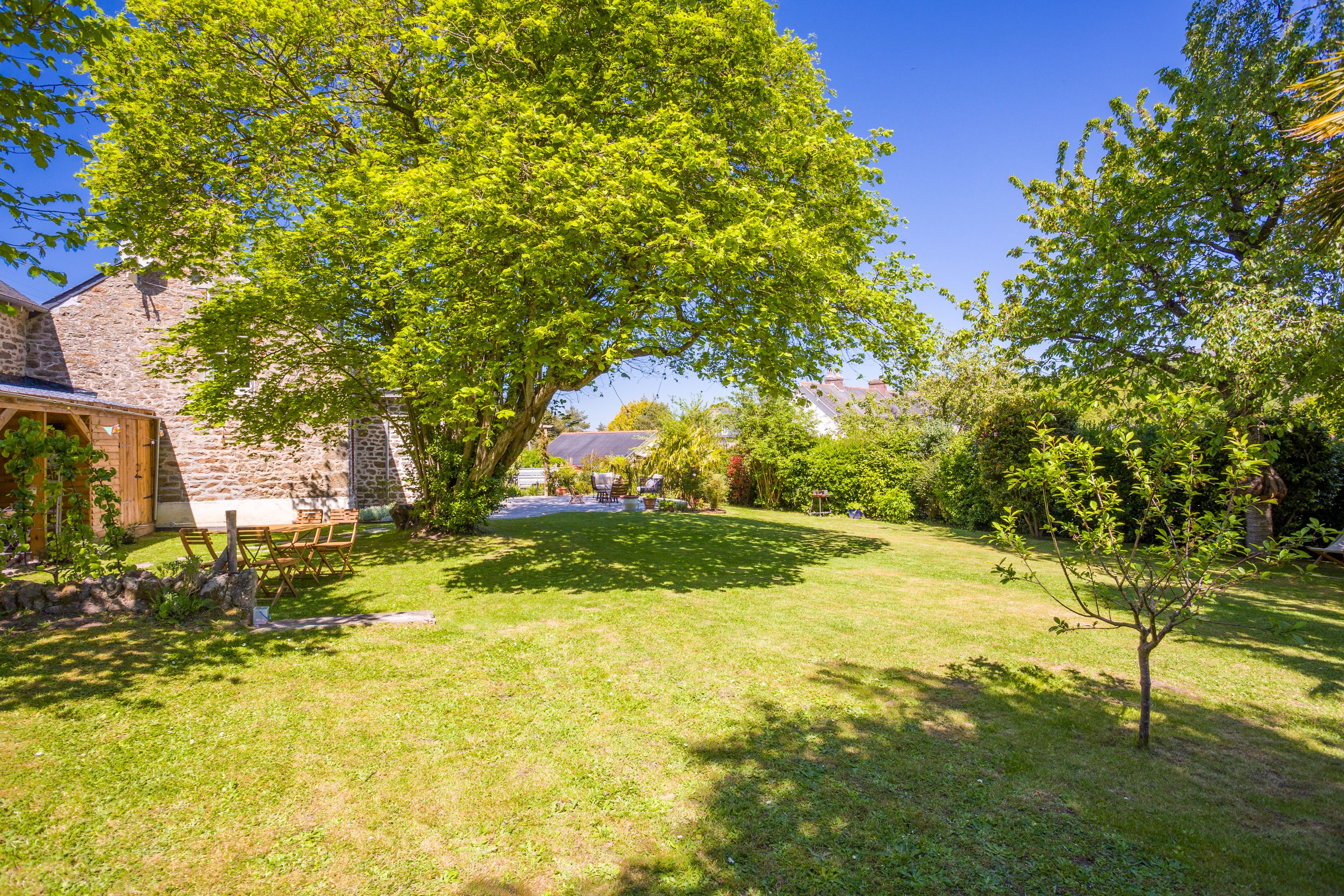 À proximité immédiate de la plage du Prieuré dans un environnement calme et résidentiel non loin du centre de Dinard et de ses commerces. Charmante maison ancienne de 191m² entièrement rénovée par architecte dans un esprit Cottage avec des matériaux et prestations de très grande qualité. Ce bien lumineux, traversant et en parfait état offre de très beaux volumes et un agréable jardin de 1200m². Entrée, splendide pièce de réception avec séjour - salle à manger et poêle suédois traditionnel en faïence, cuisine ouverte équipée, bibliothèque et buanderie. À l'étage : 4 chambres, salle d'eau et salle de bains. Dépendance avec atelier, garage et spacieuse pièce de vie à l'étage.