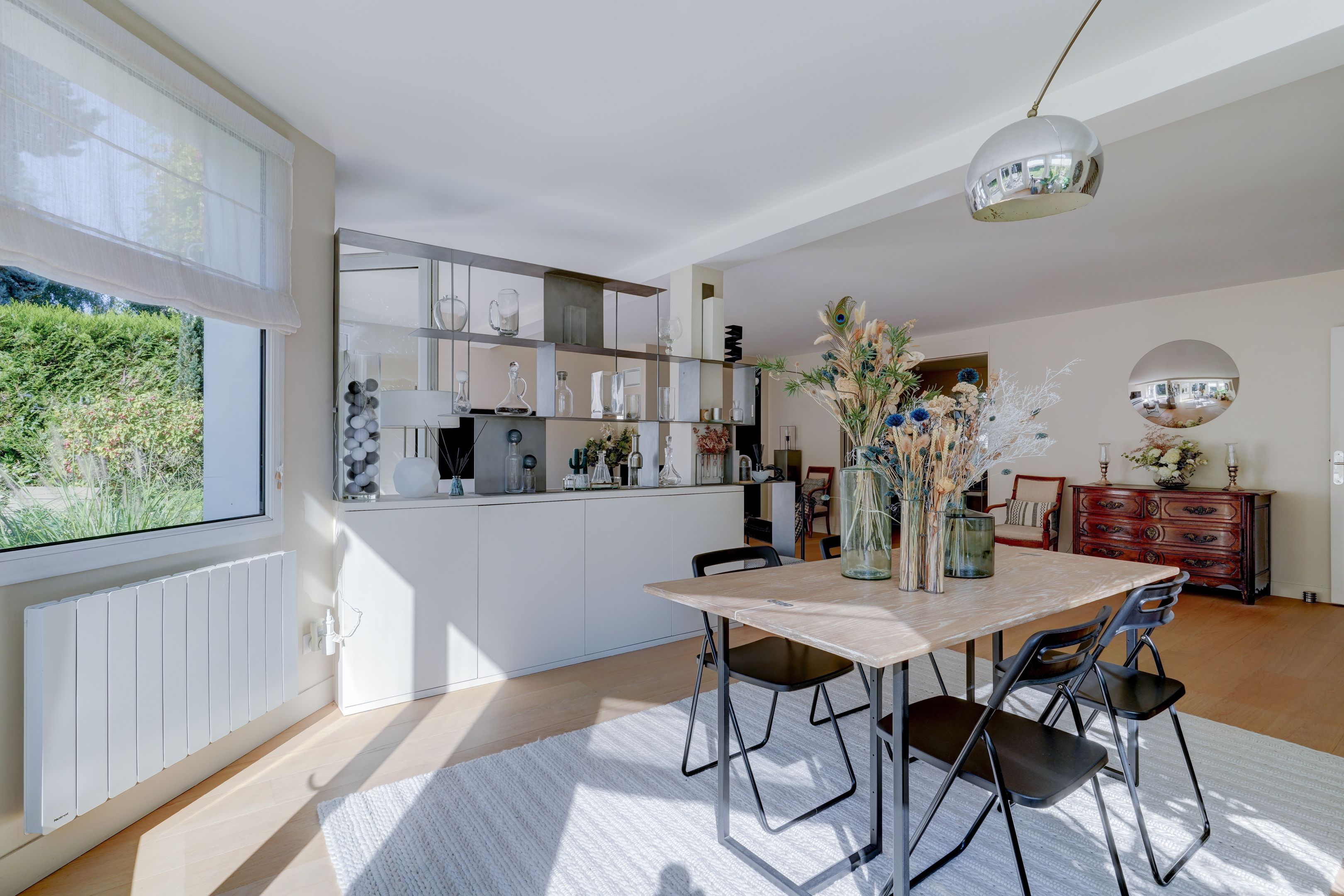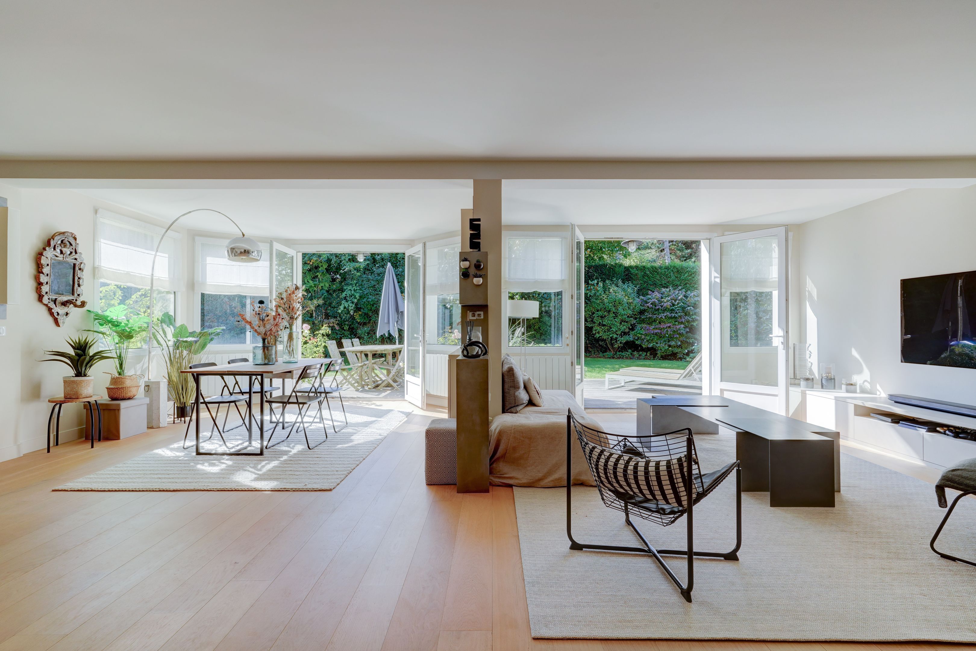À proximité immédiate de Saint-Cloud, ecoles Danielou et Passy Buzenval à proximité, superbe maison contemporaine de 270 m², nichée au cœur d’un jardin arboré de 800 m², conçue pour offrir lumière et volumes généreux. Au rez-de-chaussée : entrée, vaste pièce de réception composée d’un salon avec cheminée et d’une salle à manger, baignée de lumière grâce aux larges baies vitrées ouvrant de plain-pied sur une terrasse et un jardin plein sud, cuisine dinatoire entièrement équipée, arrière-cuisine, suite parentale avec salle de bains et douche donnant sur le jardin. À l’étage : cinq chambres, salle d'eau et salle de bains avec douche. Au sous-sol : salle de sport, garage et des espaces de rangement.