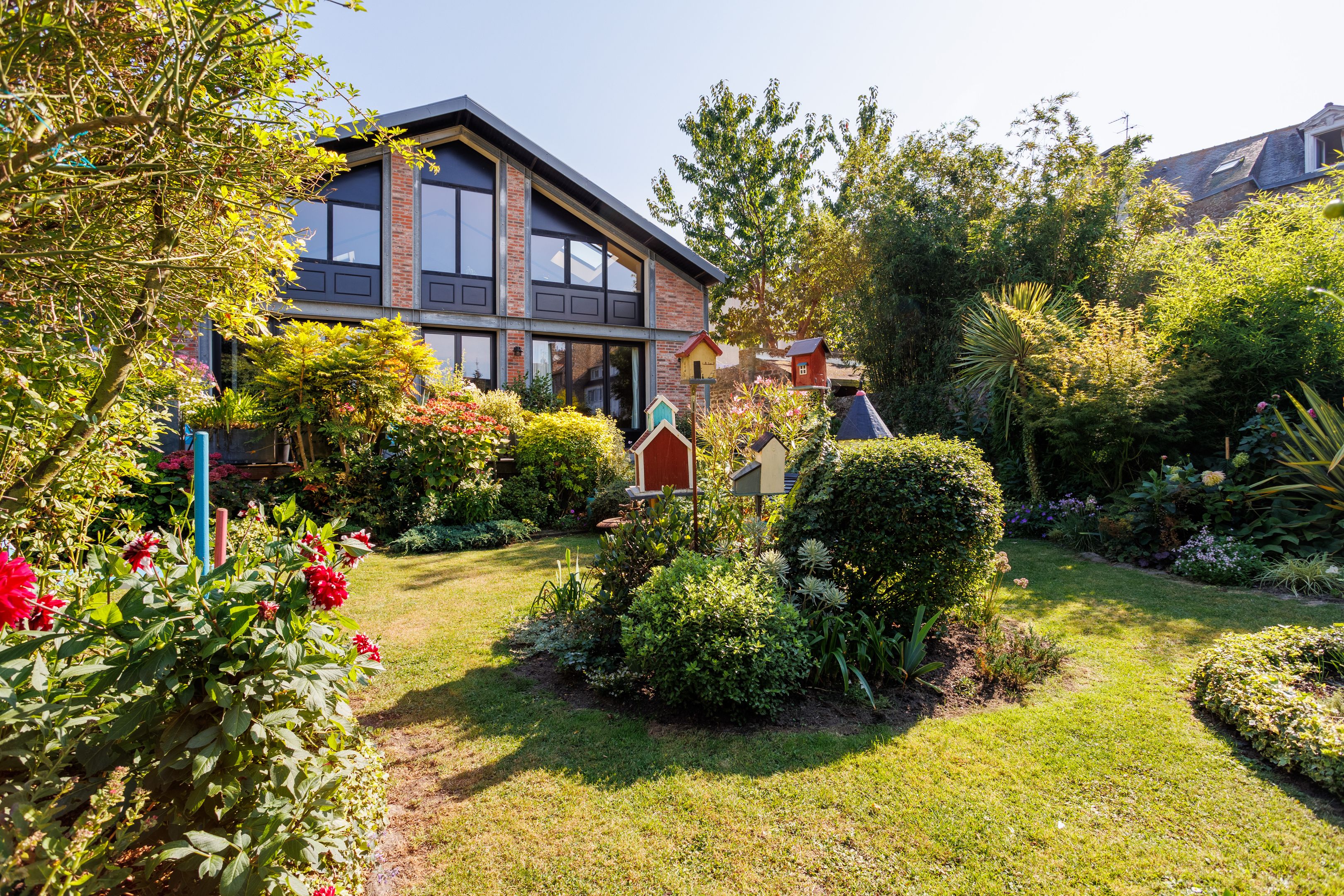 Idéalement située en plein cœur de Saint-Servan, dans un quartier privilégié et très recherché à proximité immédiate des écoles et de tous les commerces. Élégante maison d'architecte de 245m² bénéficiant d’un excellent plan avec de beaux volumes, d'une agréable luminosité grâce à son exposition et d'un jardin arboré et clos. Entrée, vaste pièce de vie style loft avec séjour - salle à manger et cheminée le tout ouvrant sur une terrasse en bois, cuisine semi-indépendante aménagée et équipée, arrière-cuisine, buanderie et toilettes séparées. Une suite parentale avec salle d’eau, ainsi qu’une seconde chambre complètent les prestations de ce niveau. Au 1er étage : vaste mezzanine, 2 chambres de belle taille, bureau ou 3eme chambre, salle de bains et toilettes séparées. Enfin place de stationnement sous alcôve privatif.