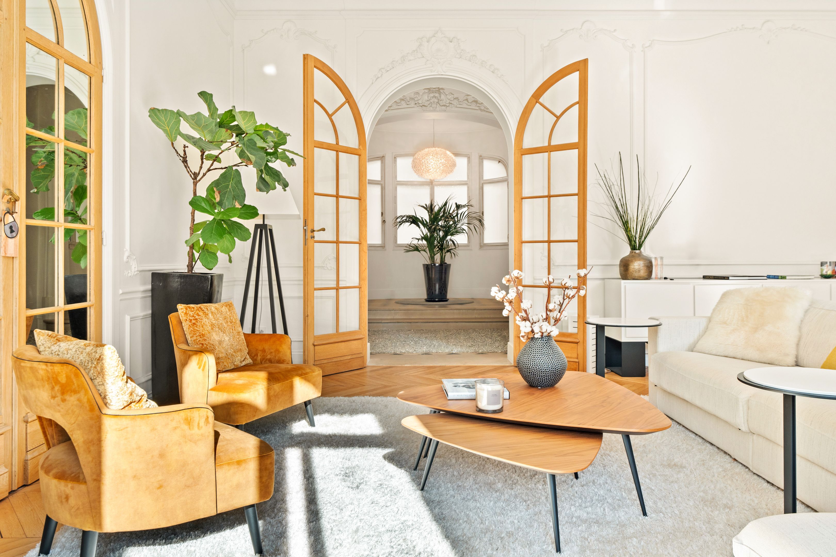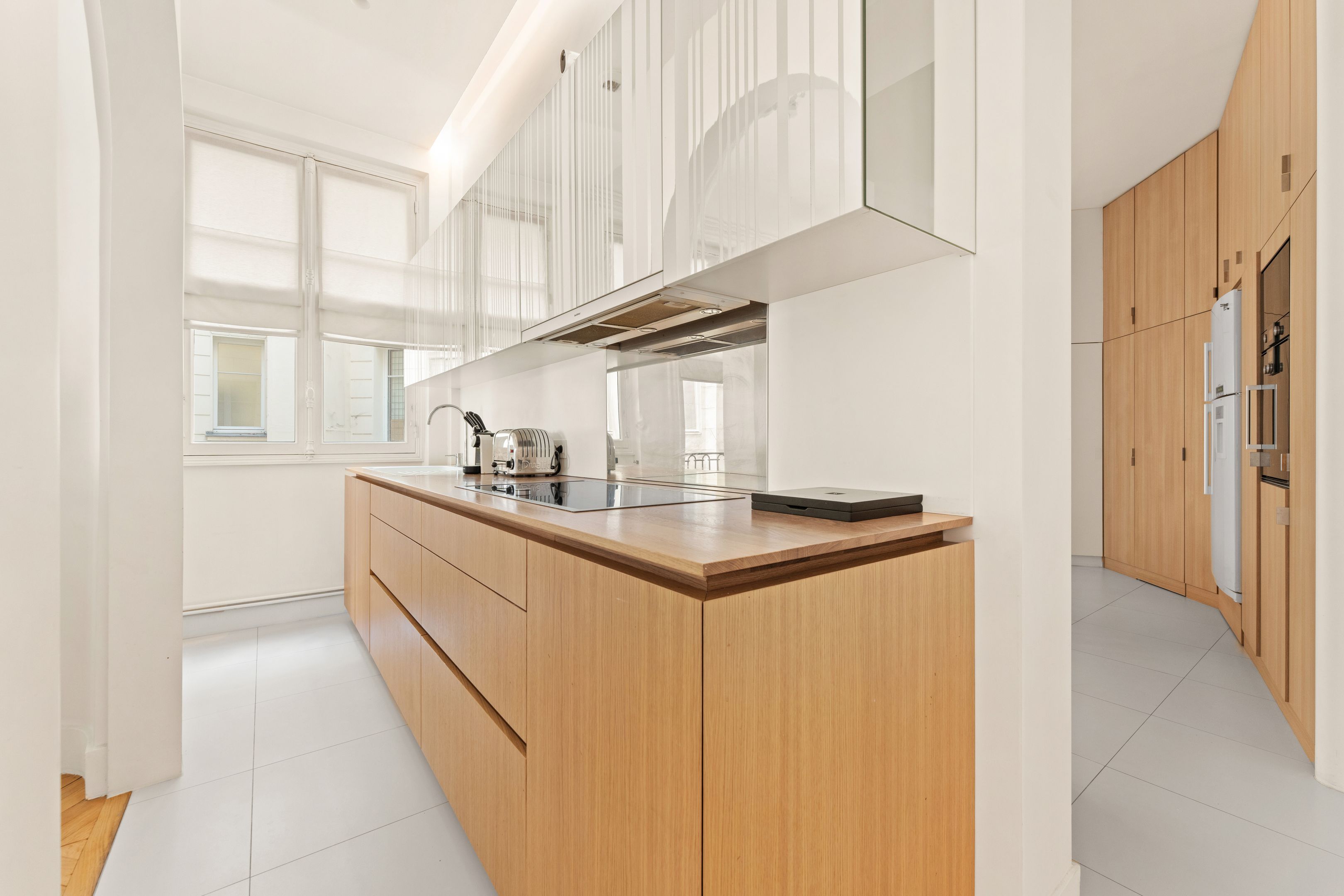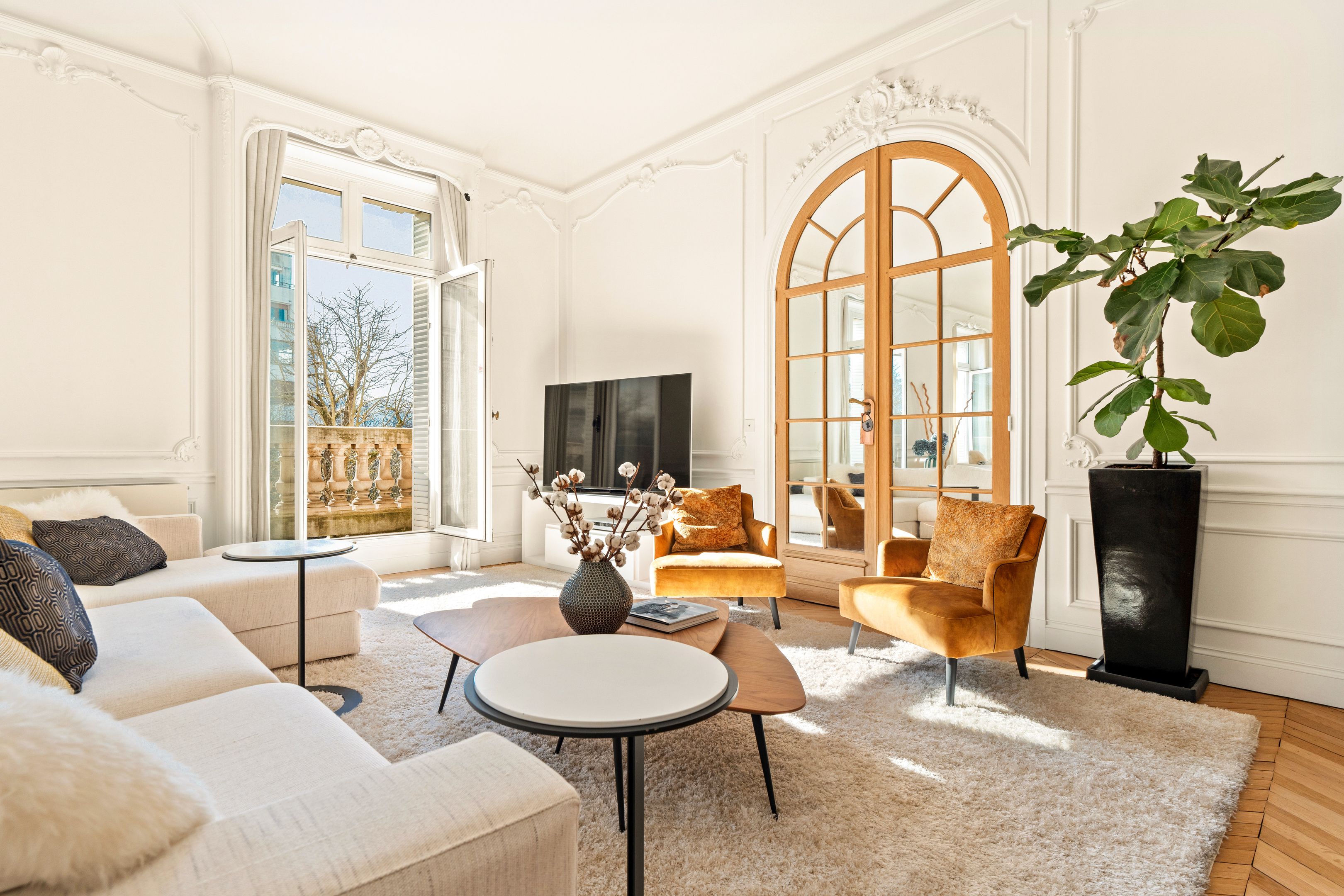 Au sein d'une superbe copropriété aux très élégantes parties communes, appartement familial et de réception de 305m² seul à l'étage, traversant, sans vis-à-vis et baigné de lumière, rénové par une architecte de renom ayant gardé tous les éléments d'origine (parquets, moulures et cheminées), très beaux volumes (hauteur sous plafond de 3,60m). À l'étage noble desservi par ascenseur, bénéficiant d'un excellent plan : galerie d'entrée, vaste salon avec balcon en pierre offrant une vue dégagée, salle à manger disposant d'une cuisine ouverte, seconde cuisine, chambre parentale avec dressing, salle d'eau dotée d'un sauna, 3 autres chambres, bureau, salle d'eau, toilettes d'invités.Cave. Chambre de service rénovée.