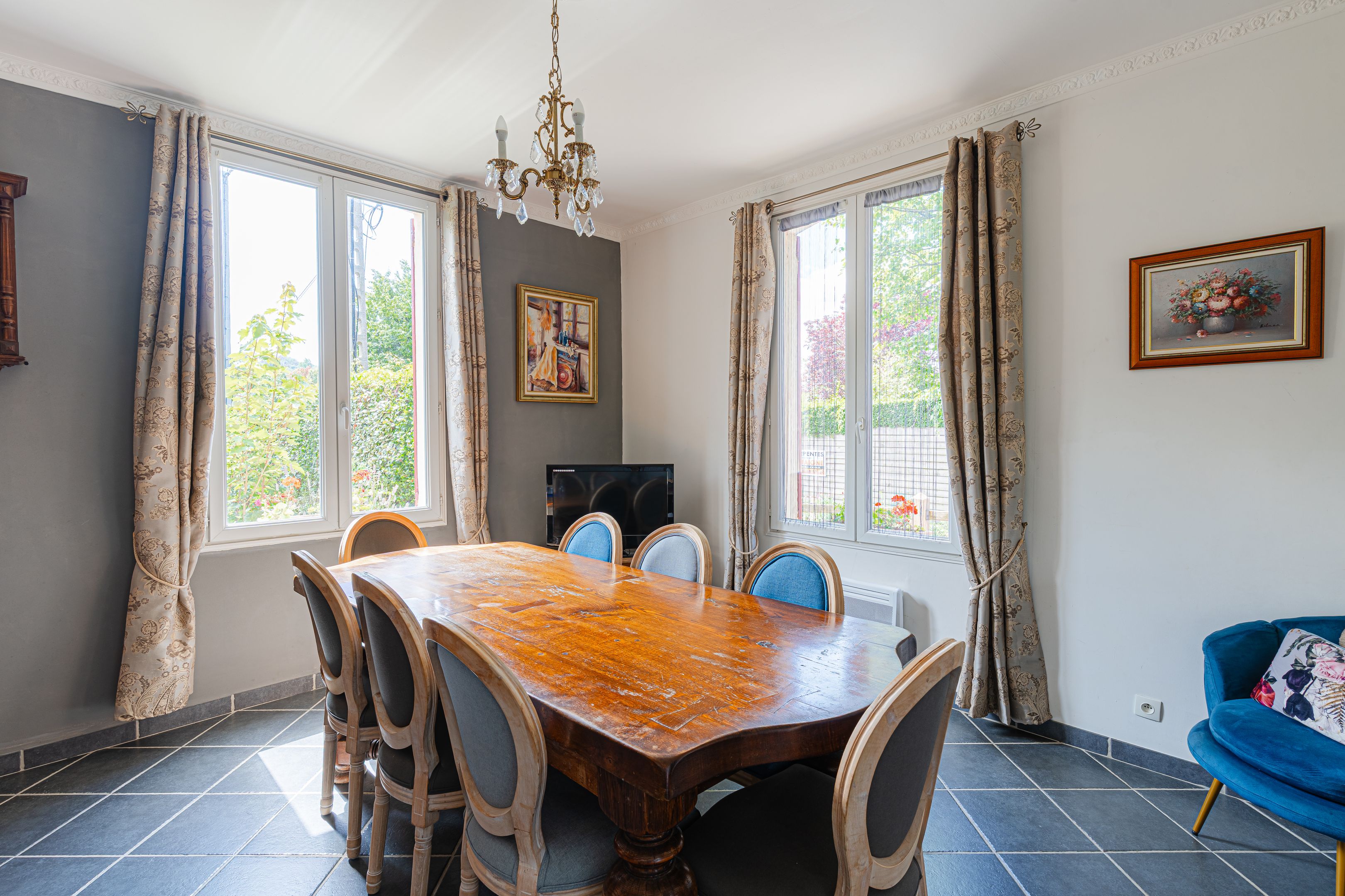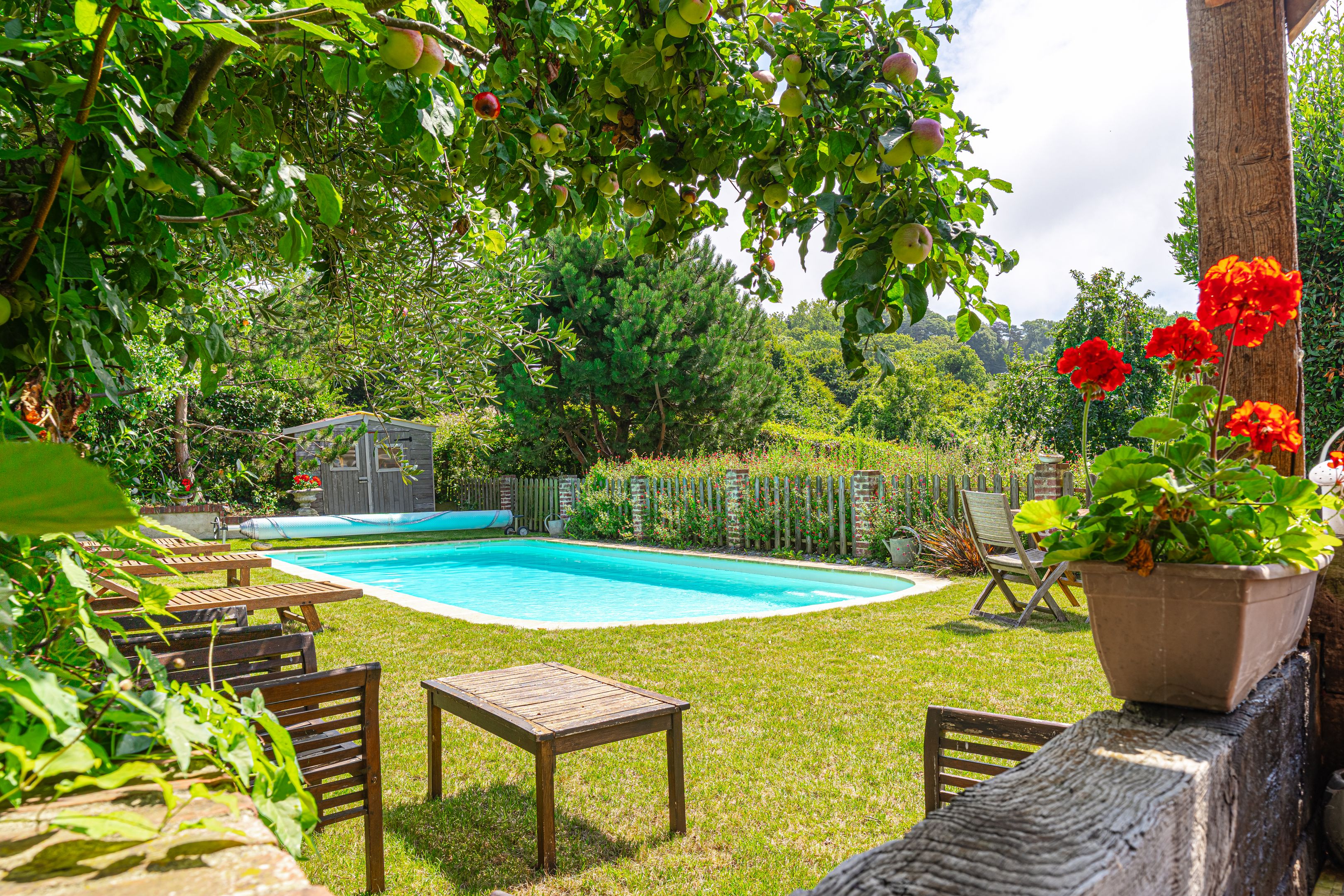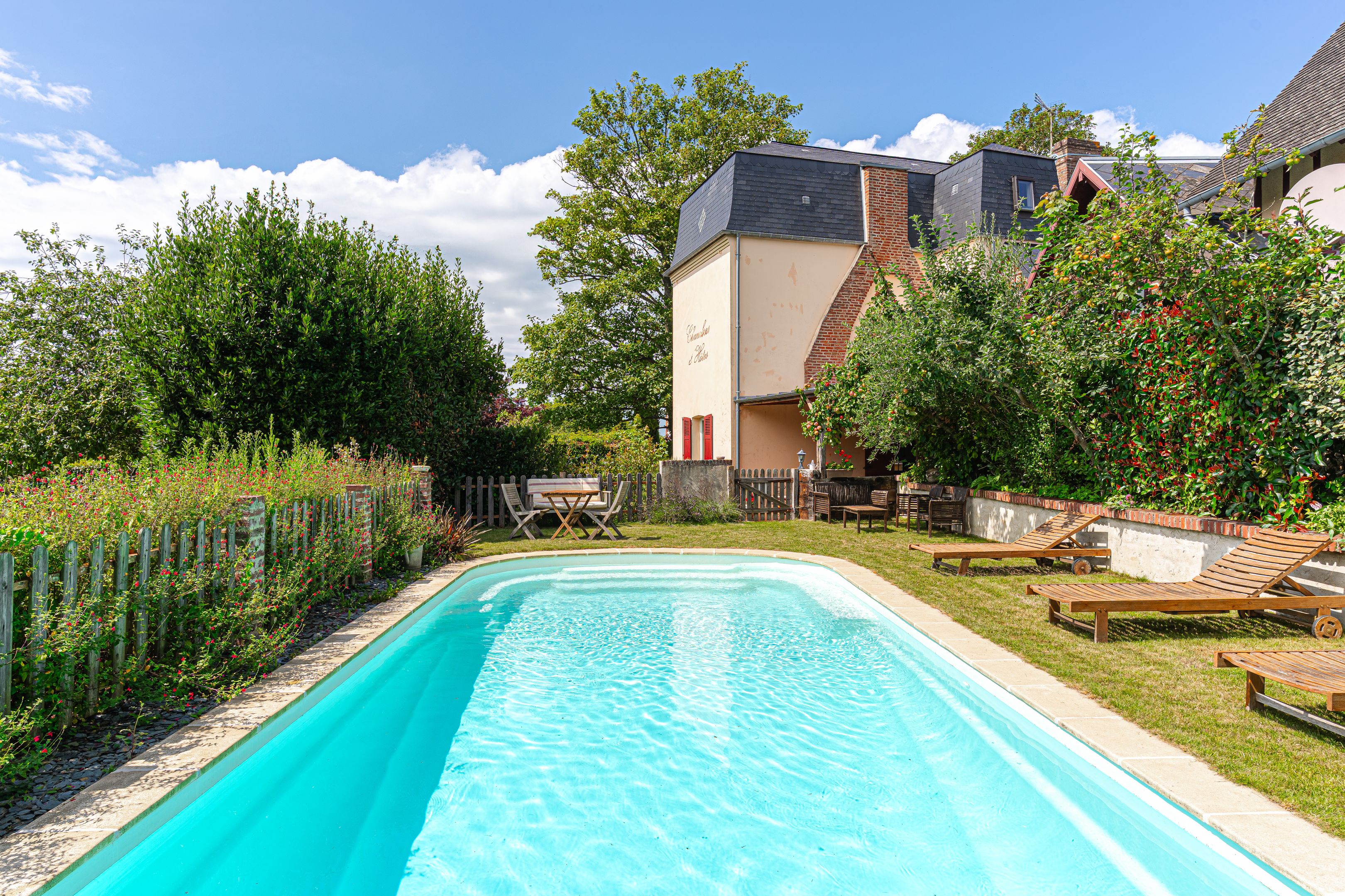 Sur les hauteurs de Trouville, à 200m de la plage, maison de 180m2 habitable sur 3 niveaux édifiée sur un terrain de 815m2 clos avec piscine chauffée. Au rez-de-chaussée : entrée, salon, cuisine semi-ouverte équipée ouverte sur une loggia, salle-à-manger, toilettes indépendants, accessible par l'extérieur une suite avec salle de bains et toilettes. Au 1er étage : trois chambres en suite avec leurs salles d'eau et toilettes. Au 2ème étage : deux chambres en suite avec leurs salles d'eau et toilettes. Rafraichissement à prévoir. Parking pour 3 véhicules. Peut se prêter à une activité de chambres d'hôtes.