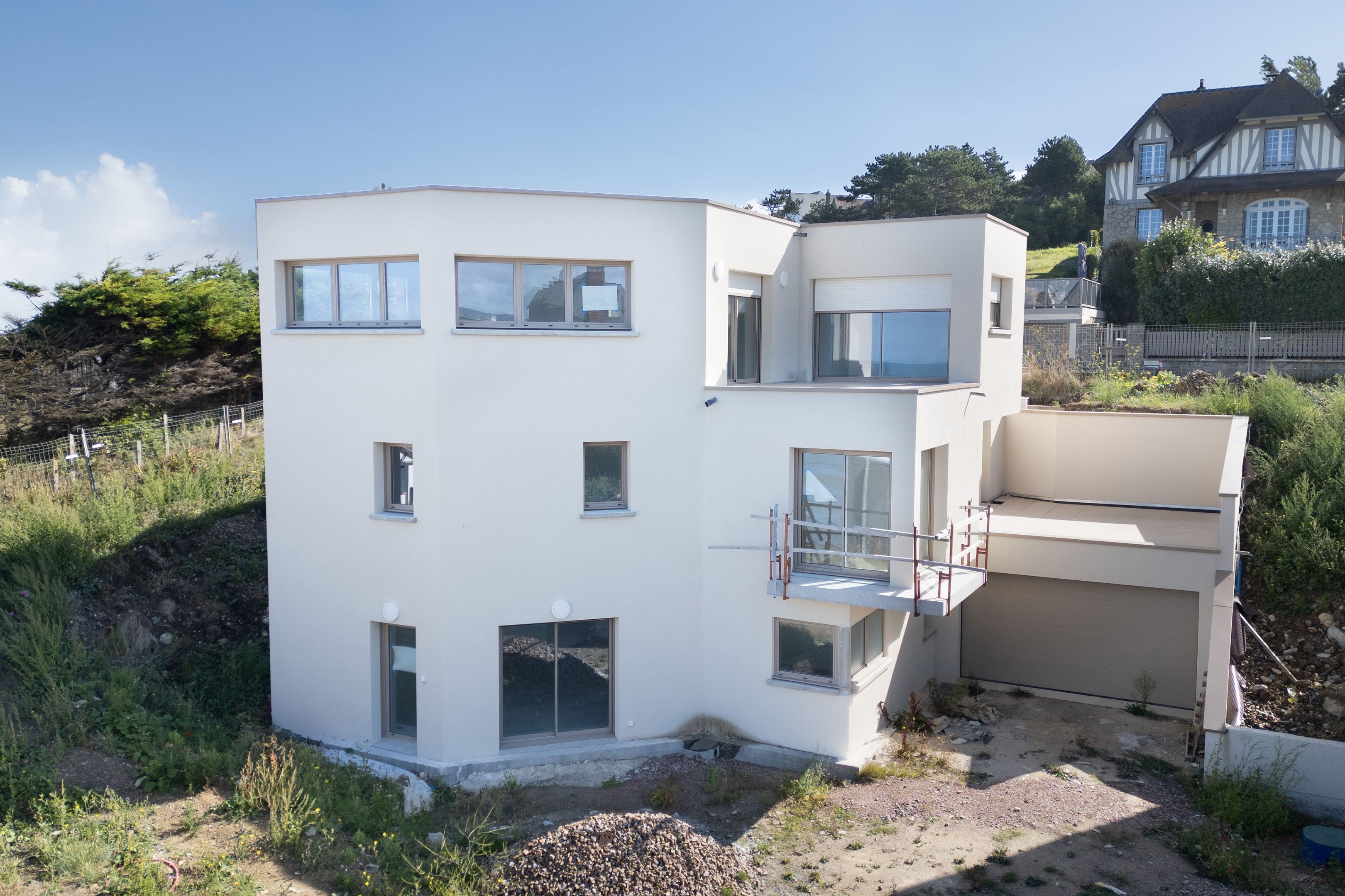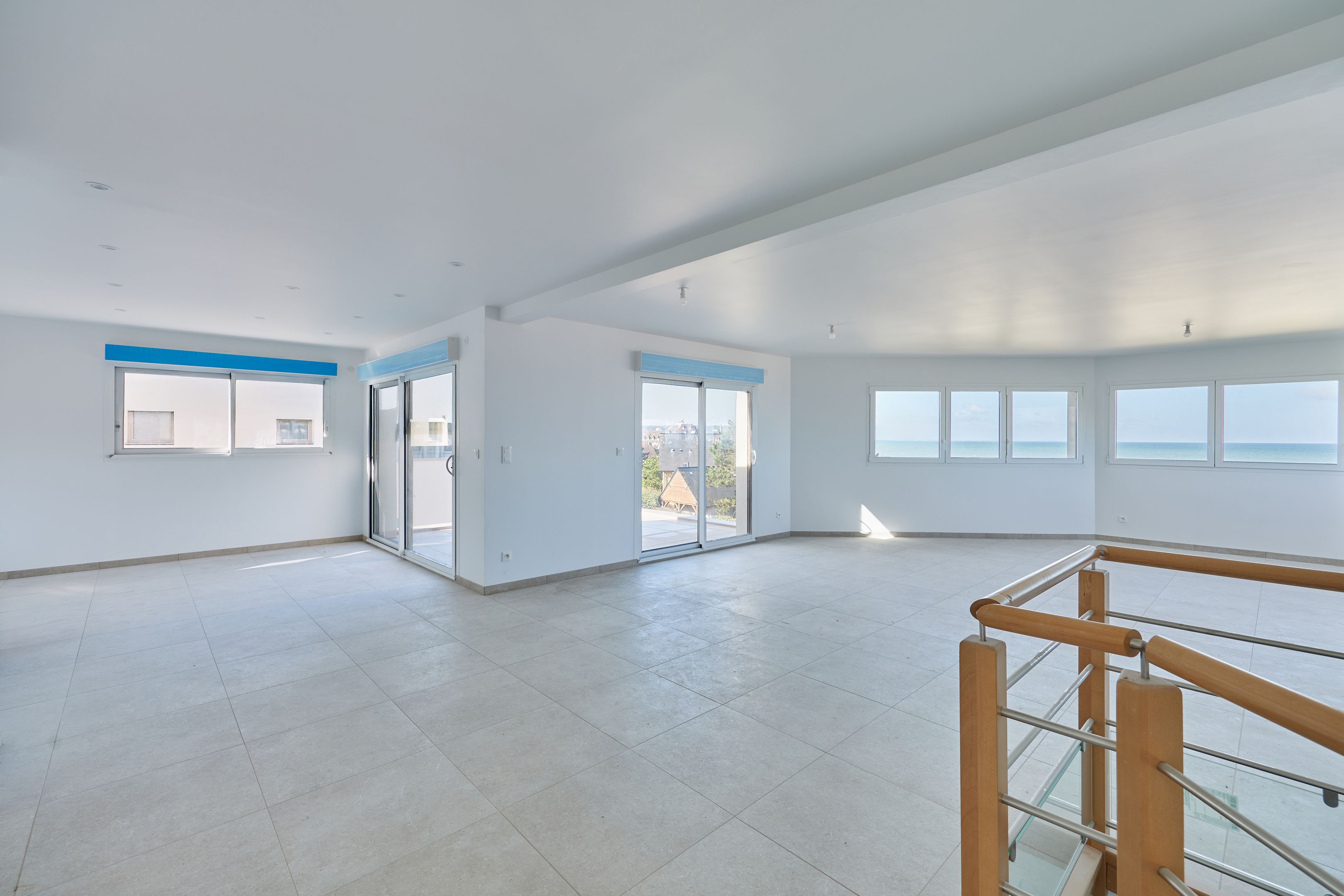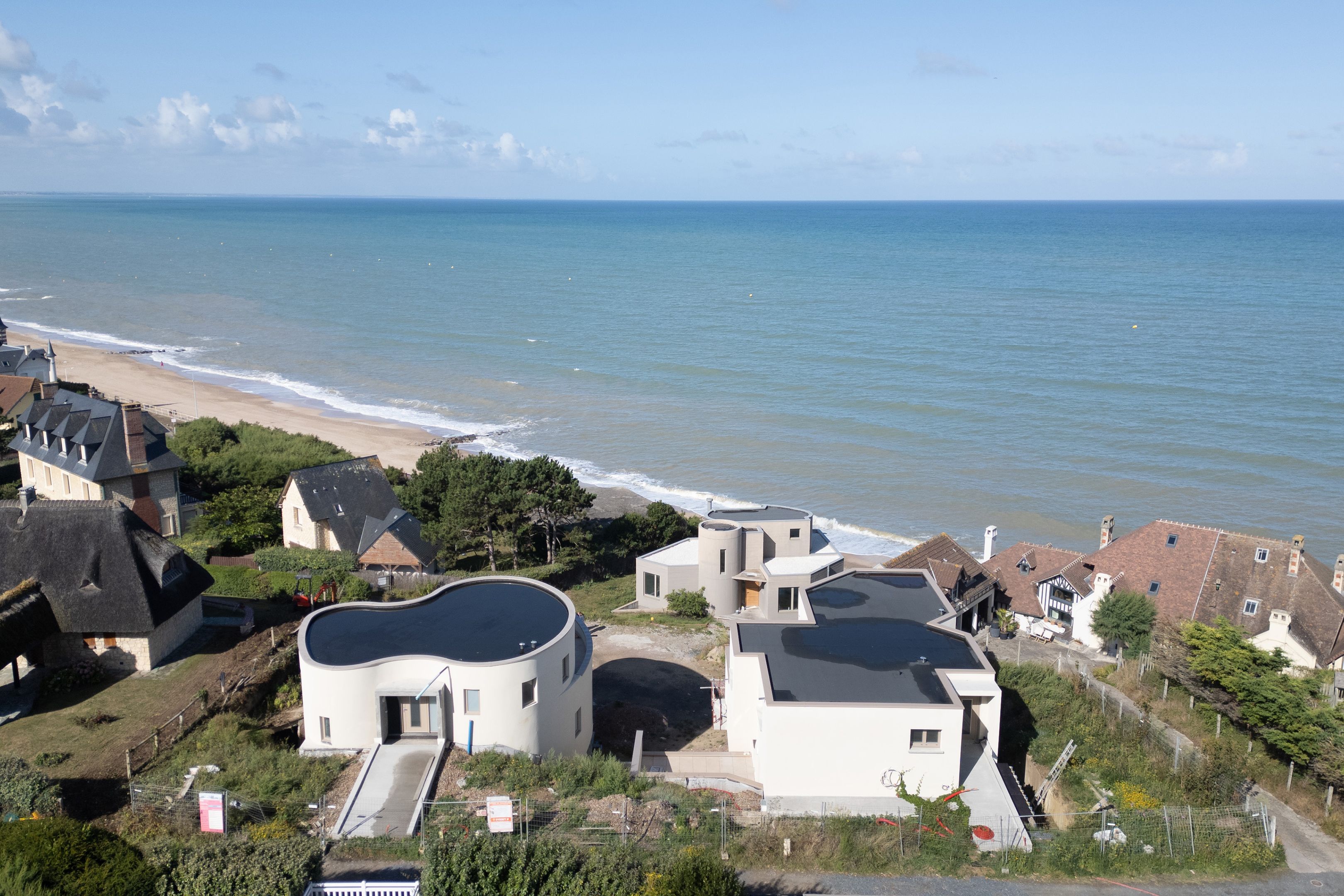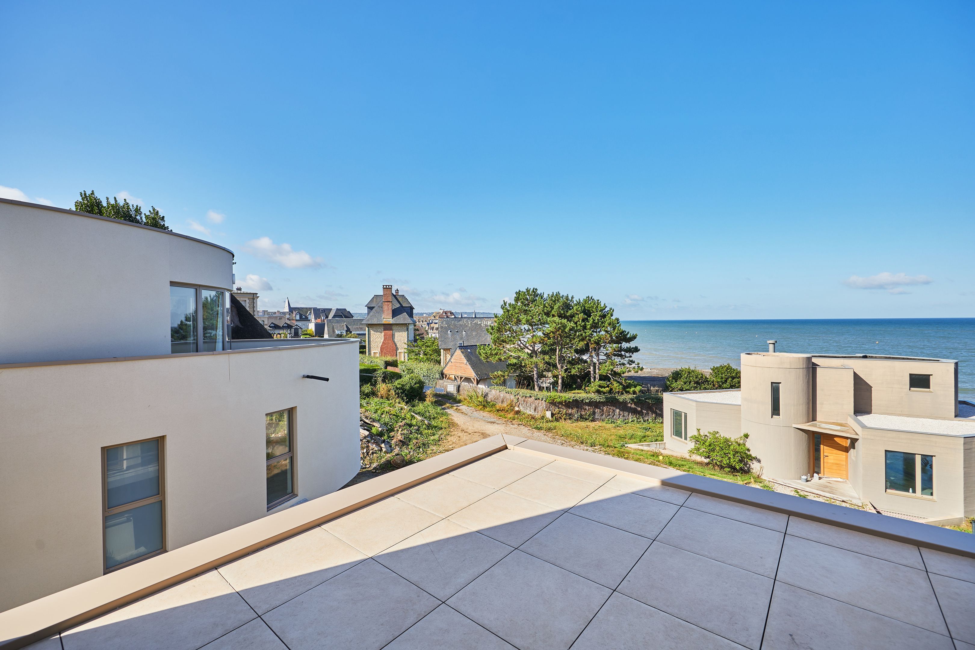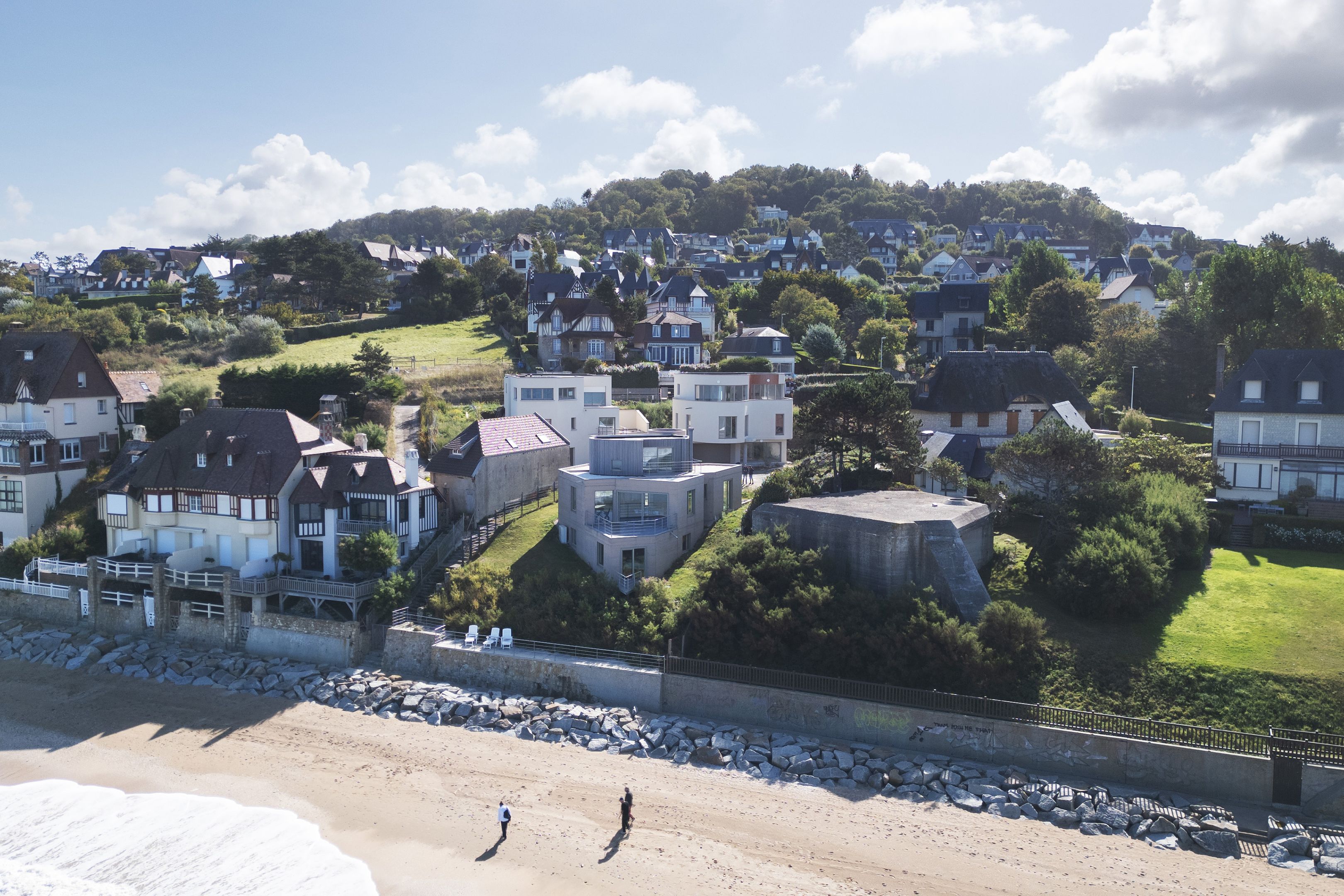 Emplacement exceptionnel avec accès direct plage, à 400m des commerces de Blonville-sur-Mer, magnifique propriété contemporaine. Pensée pour permettre l'indépendance de 2 familles, au rez-de-chaussée : entrée, pièce à vivre, cuisine ouverte, suite parentale comprenant salle de bains, toilettes, dressing ; garage. Au 1er étage : dans l'aile nord, palier desservant deux chambres avec vue mer dont une avec balcon, salle d'eau avec toilettes ; dans l'aile sud : deux chambres bénéficiant d'une terrasse partagée, buanderie, salle de bains, toilettes indépendants. Au 2ème étage, bénéficiant d'une entrée indépendante : pièce de réception de 70m2 offrant une vue panoramique sur la mer ouverte sur une terrasse exposée ouest de 14m2, cuisine ouverte, toilettes invités, suite parentale avec salle de bains. 4 places de parking privatives extérieures.