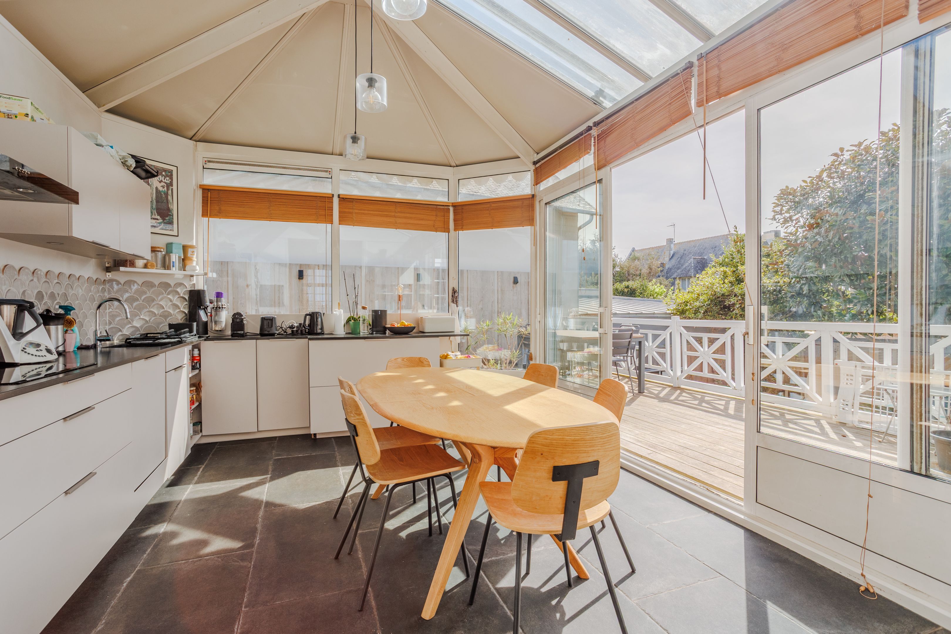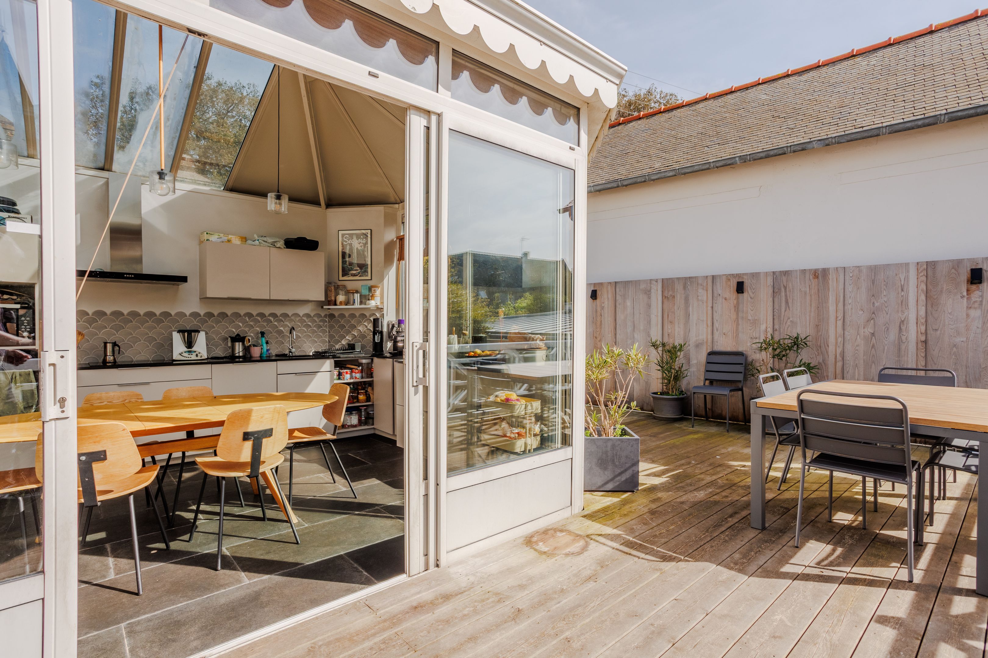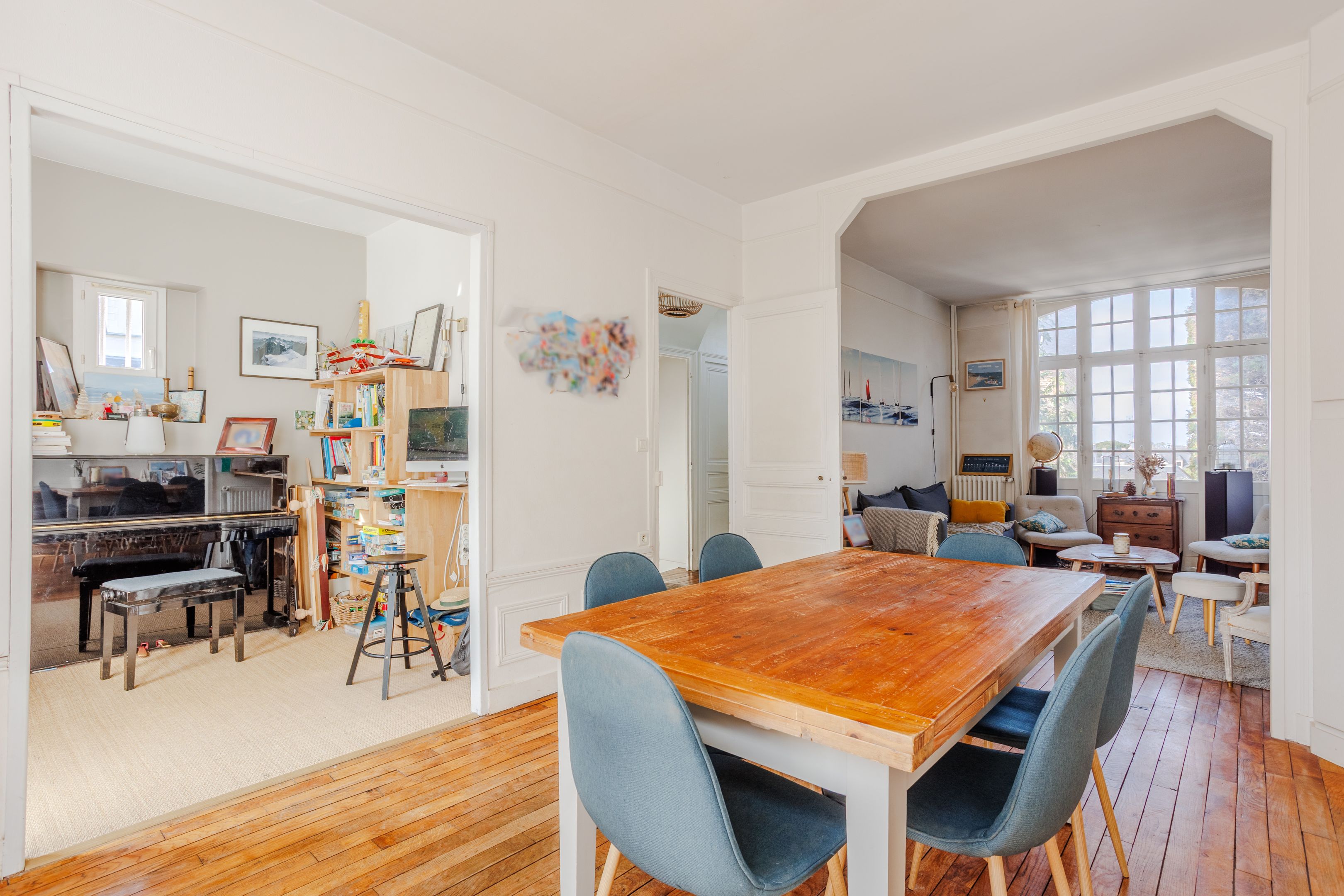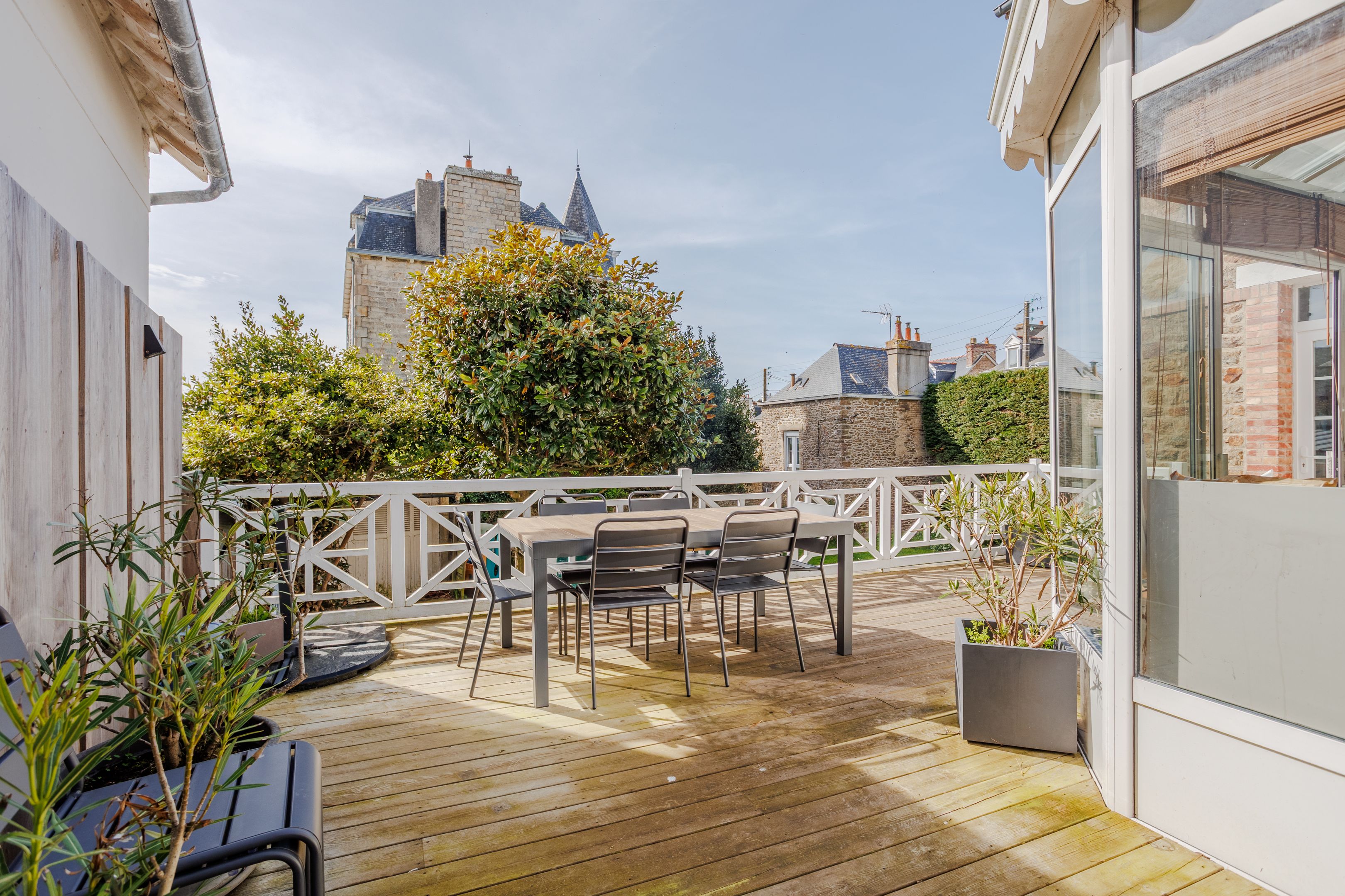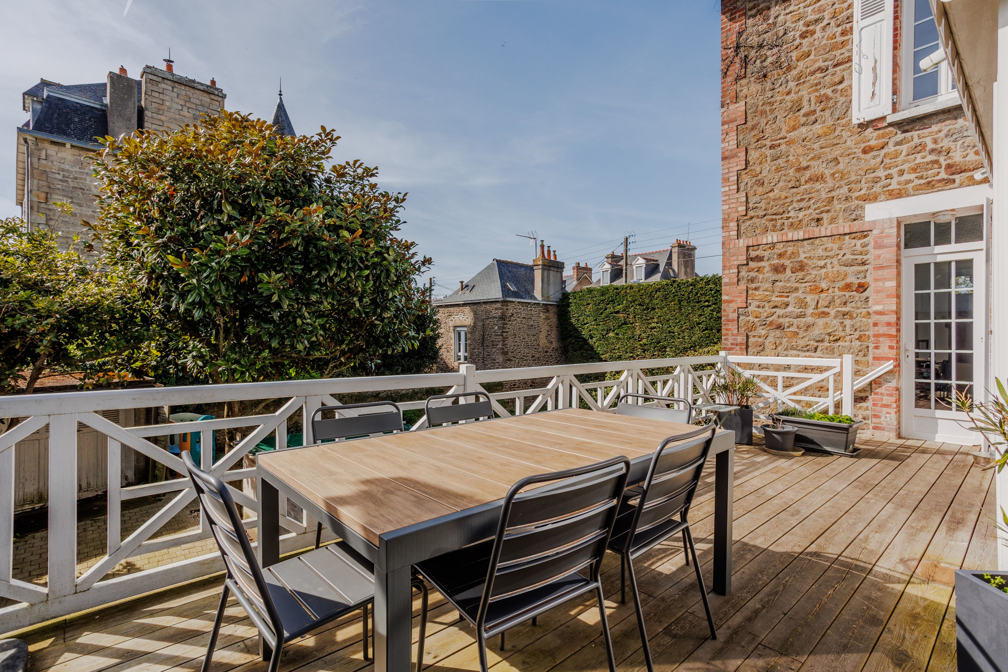 Emplacement très recherché pour cette propriété située dans le quartier prisé de Rochebonne, à proximité immédiate de la plage et des commerces. Cette charmante maison ancienne bénéficie de beaux volumes grâce à sa belle hauteur sous plafond, d’une agréable luminosité traversante et de très beaux espaces extérieurs. Entrée, vaste séjour - salle à manger avec parquet et cheminée, grande et lumineuse cuisine dinatoire ouvrant une large terrasse en bois exposée sud-ouest. Au 1er étage : deux chambres de belle taille, bureau et salle de bains. Au 2ème étage : deux grandes chambres et salle d'eau. Au rez-de-jardin : deux chambres, salle d’eau et buanderie. Garage à vélo, atelier et nombreux rangements. Enfin beau jardin arboré et ensoleillé à l’abri des regards. Possibilité d'extension de la maison.